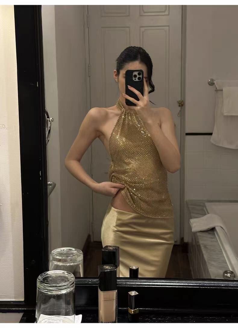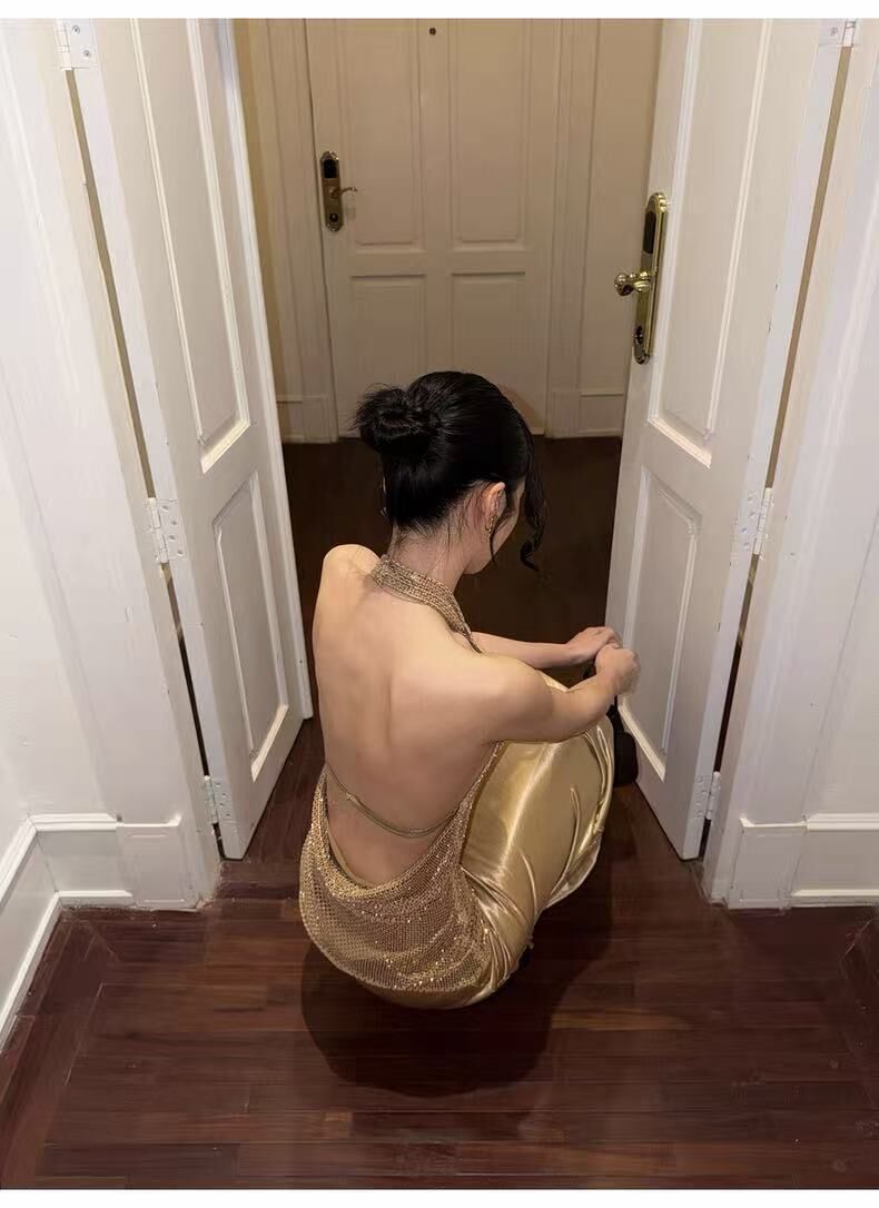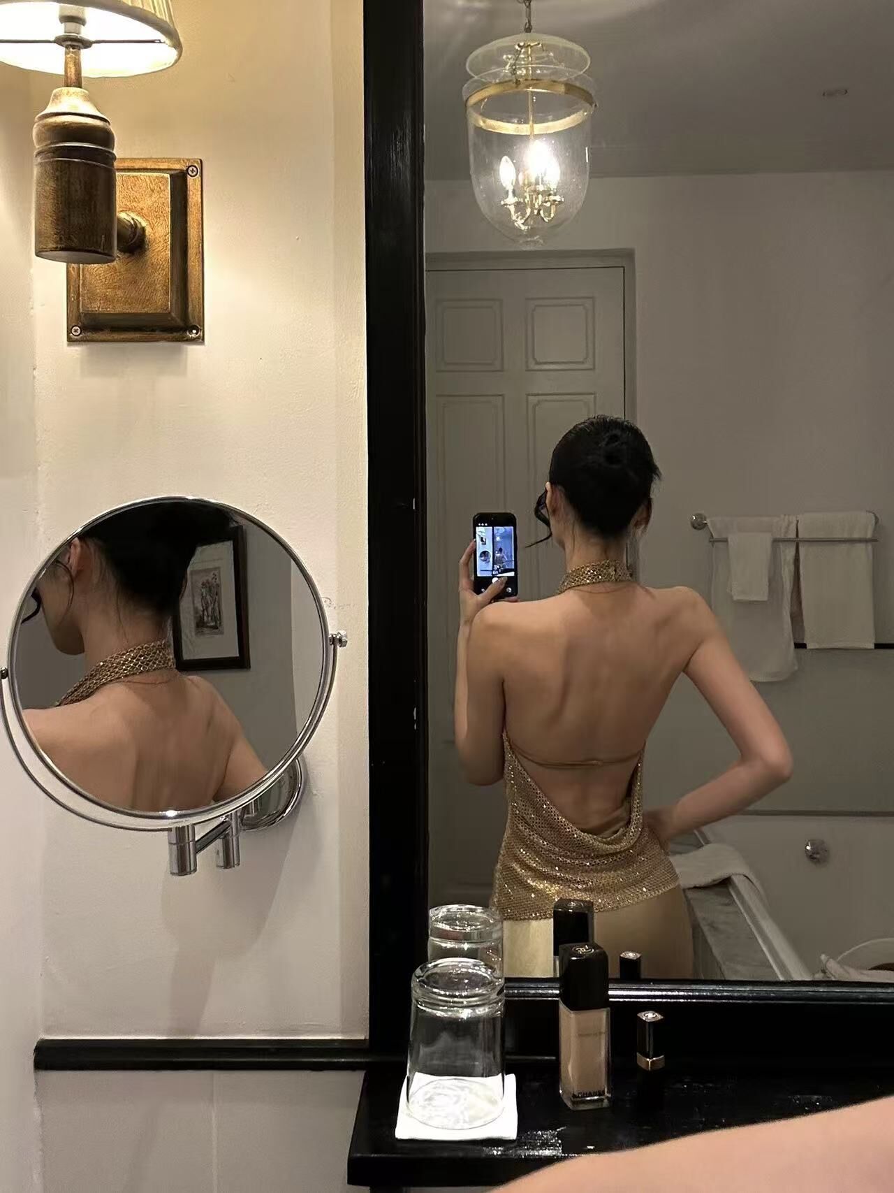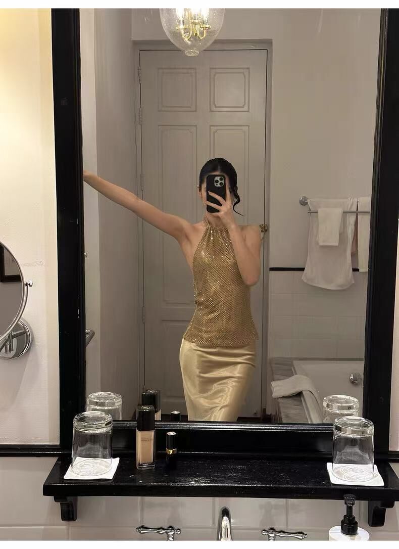 高級感辣妹 金熠熠 網狀露背上衣+魚尾裙(2件組)