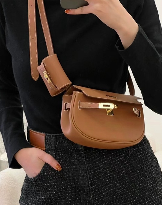 優雅簡約的外型設計 這款二合一包款融合了經典斜背包與時尚腰包的風格,展現出高雅大方的氣質。