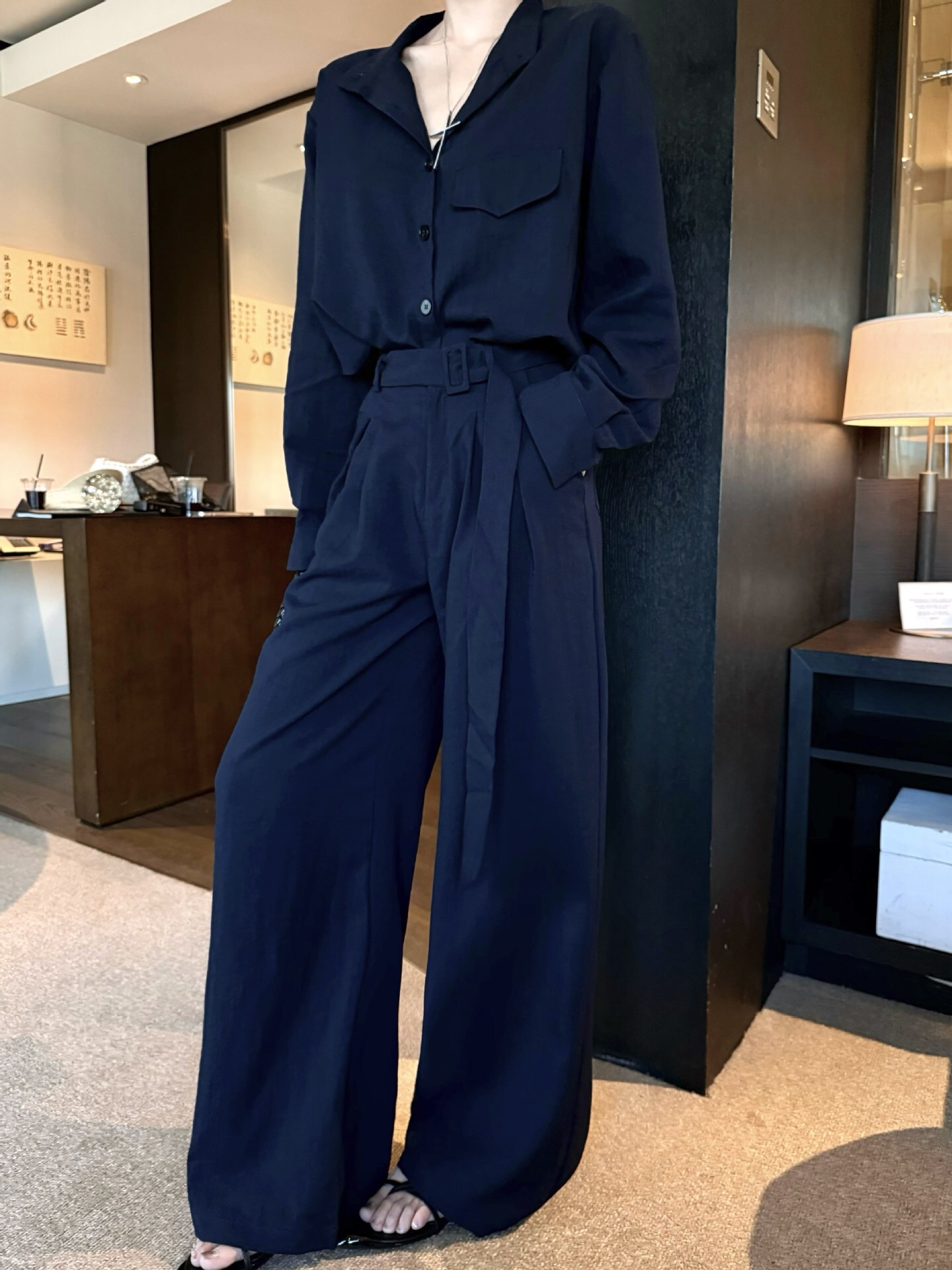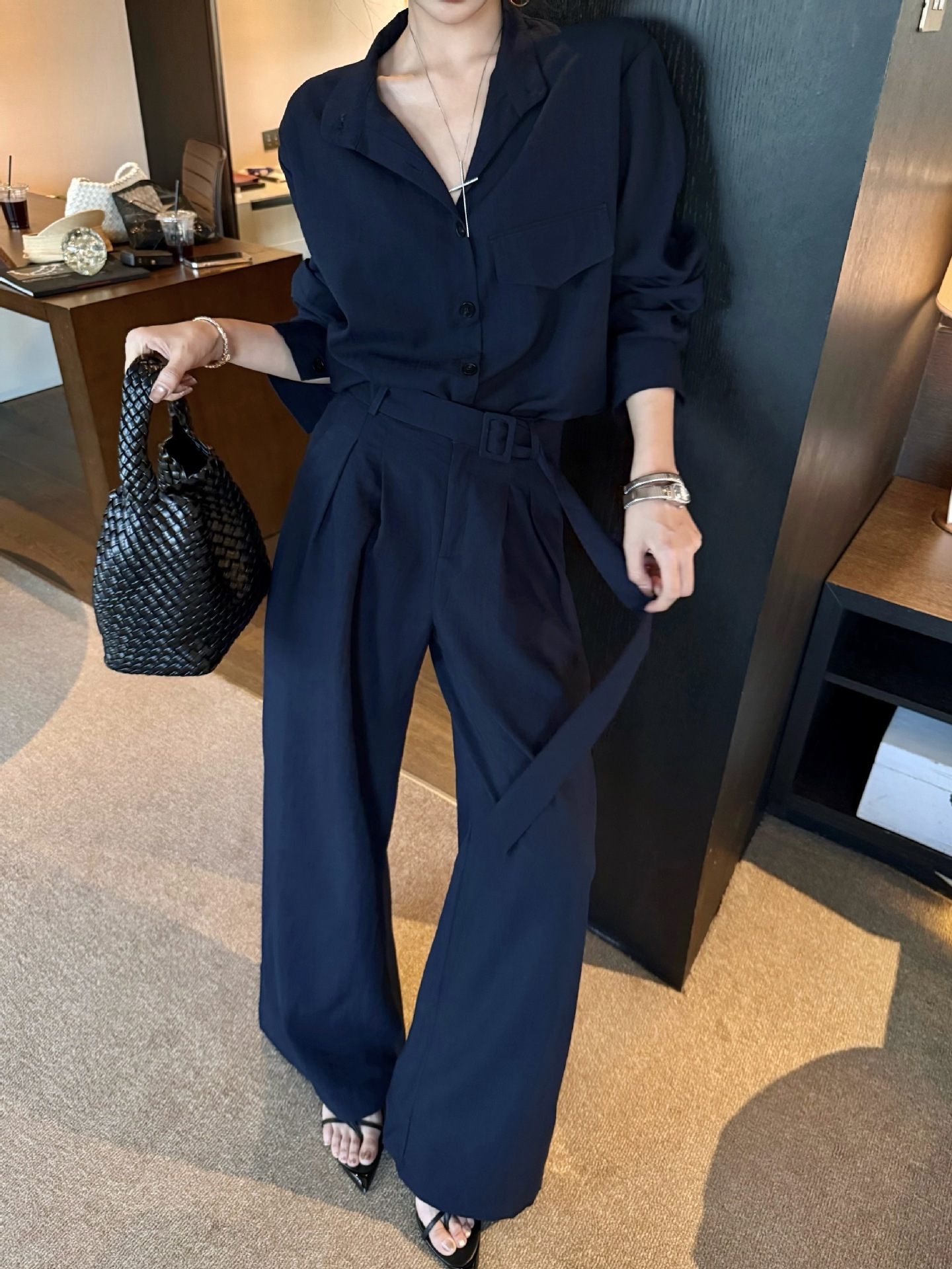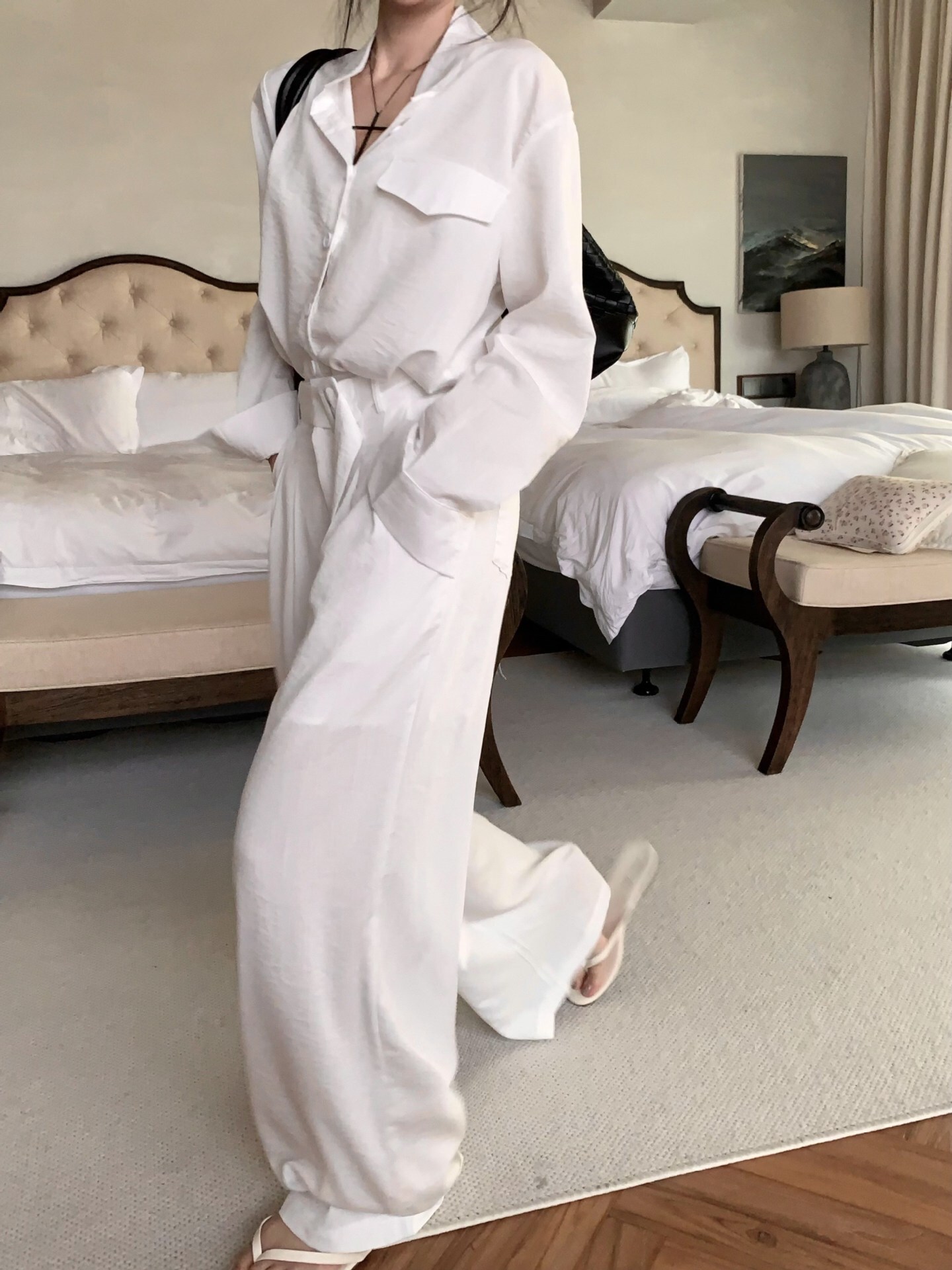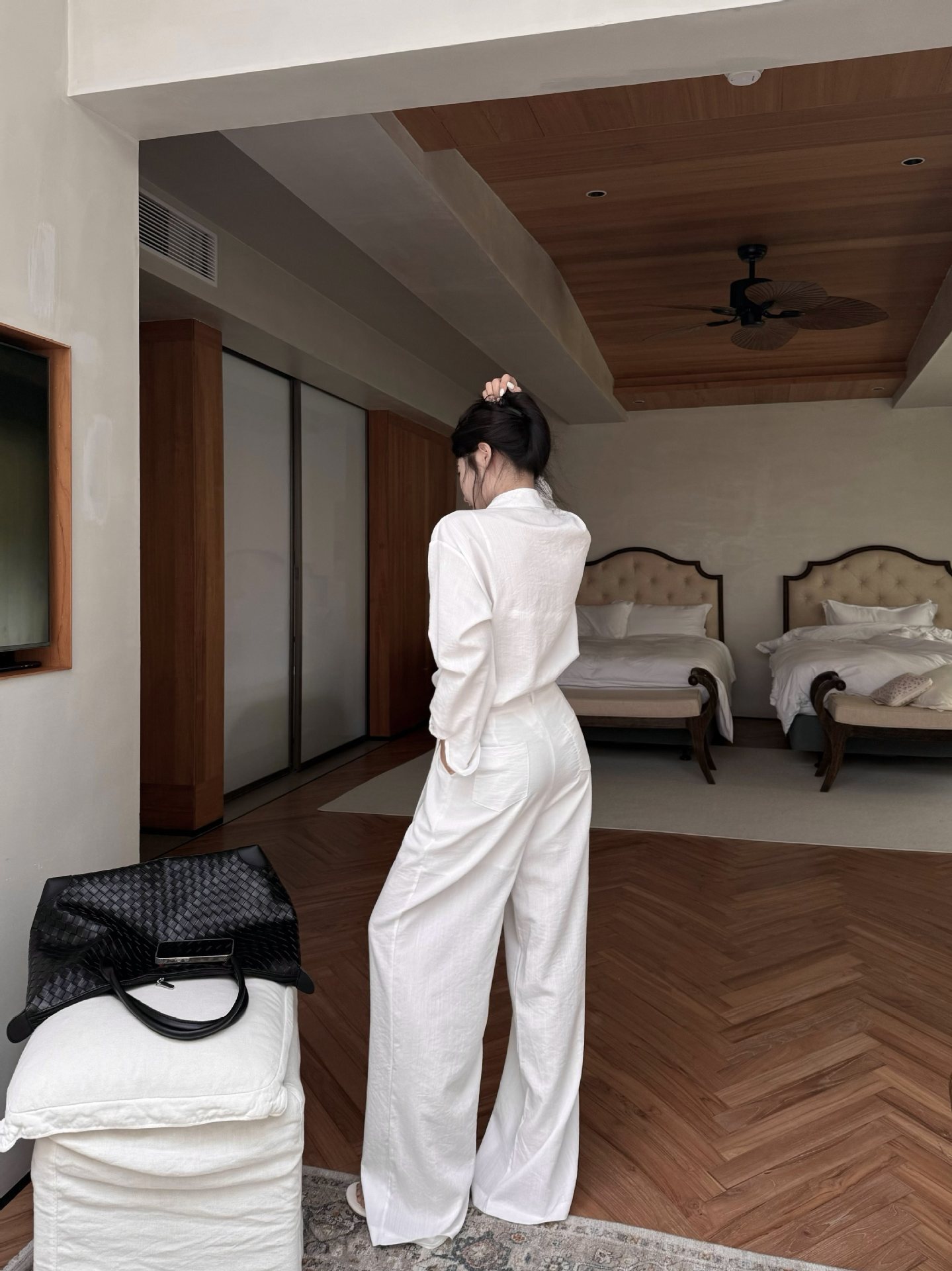 高級鬆弛感 素色襯衫長褲套裝(2件組)