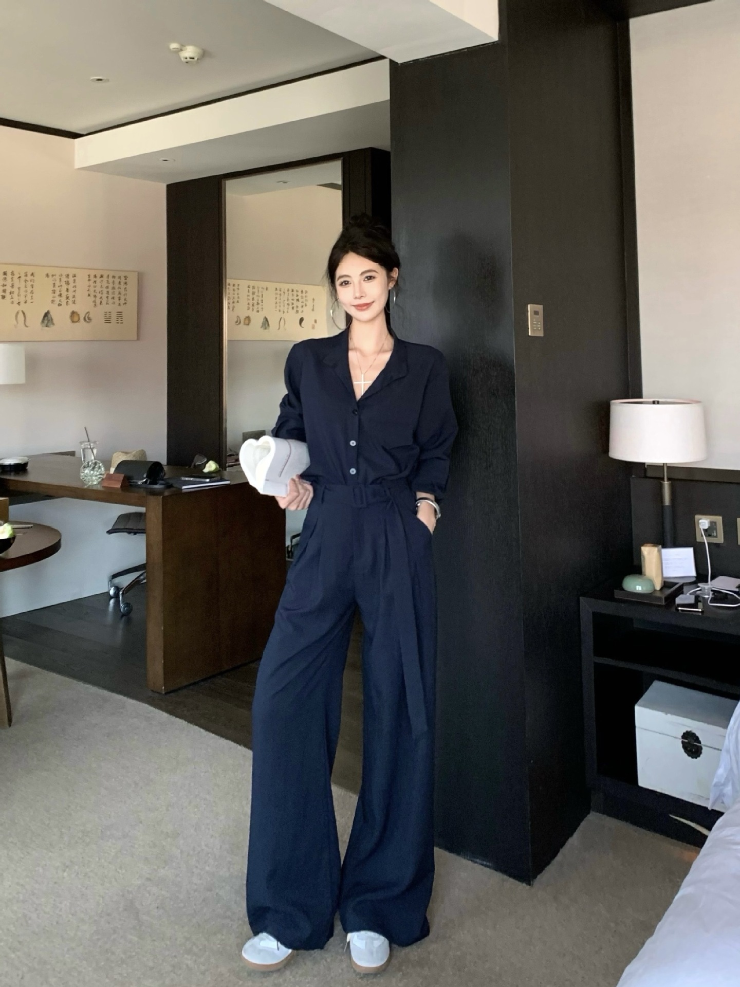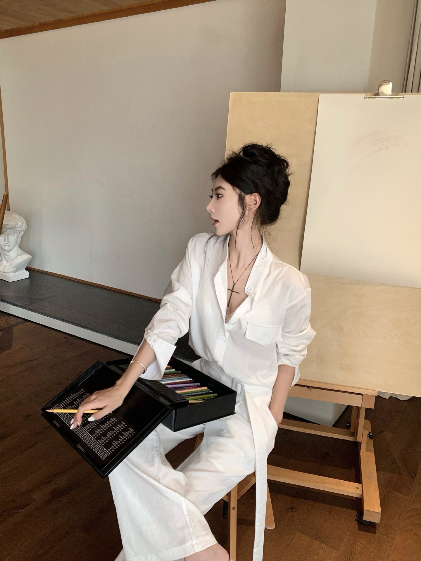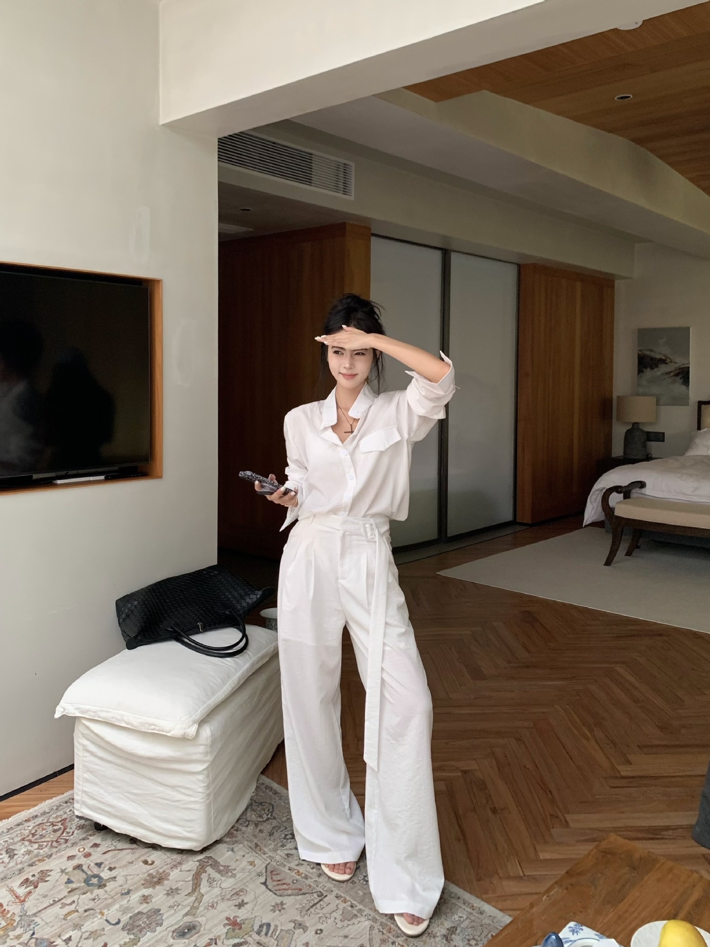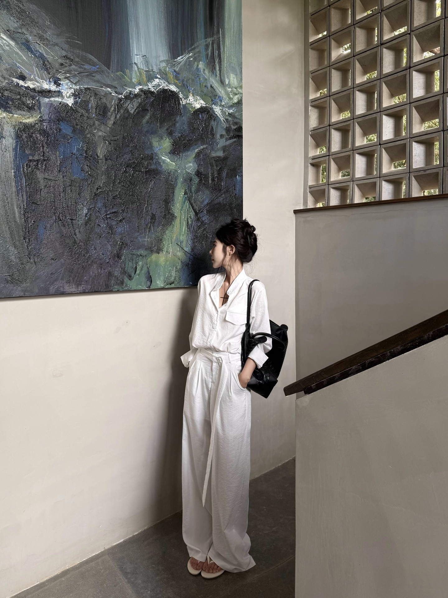 高級鬆弛感 素色襯衫長褲套裝(2件組)