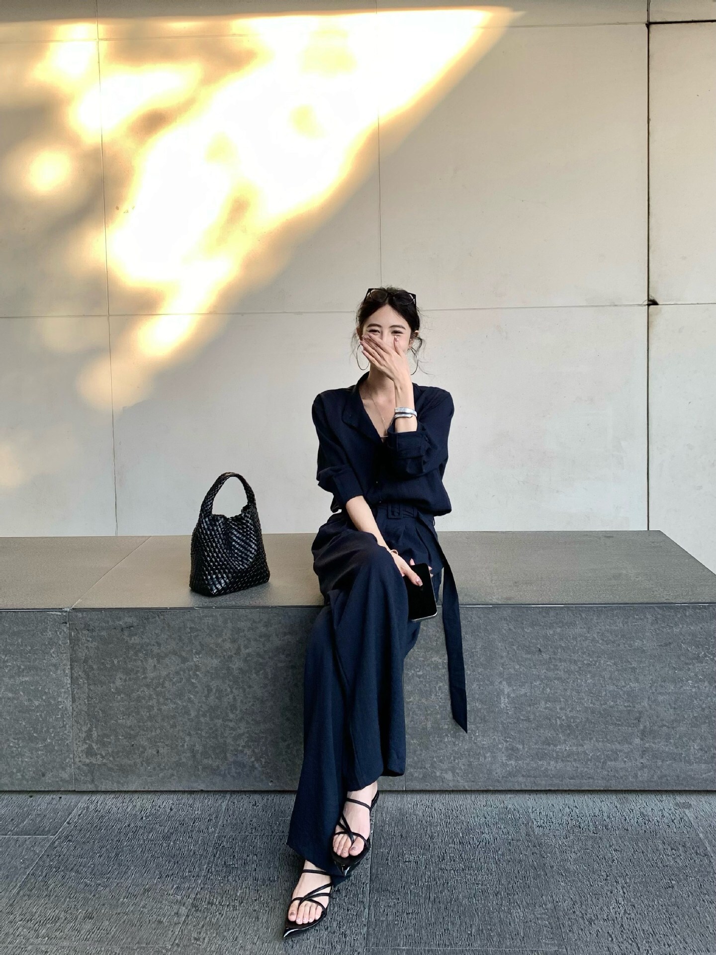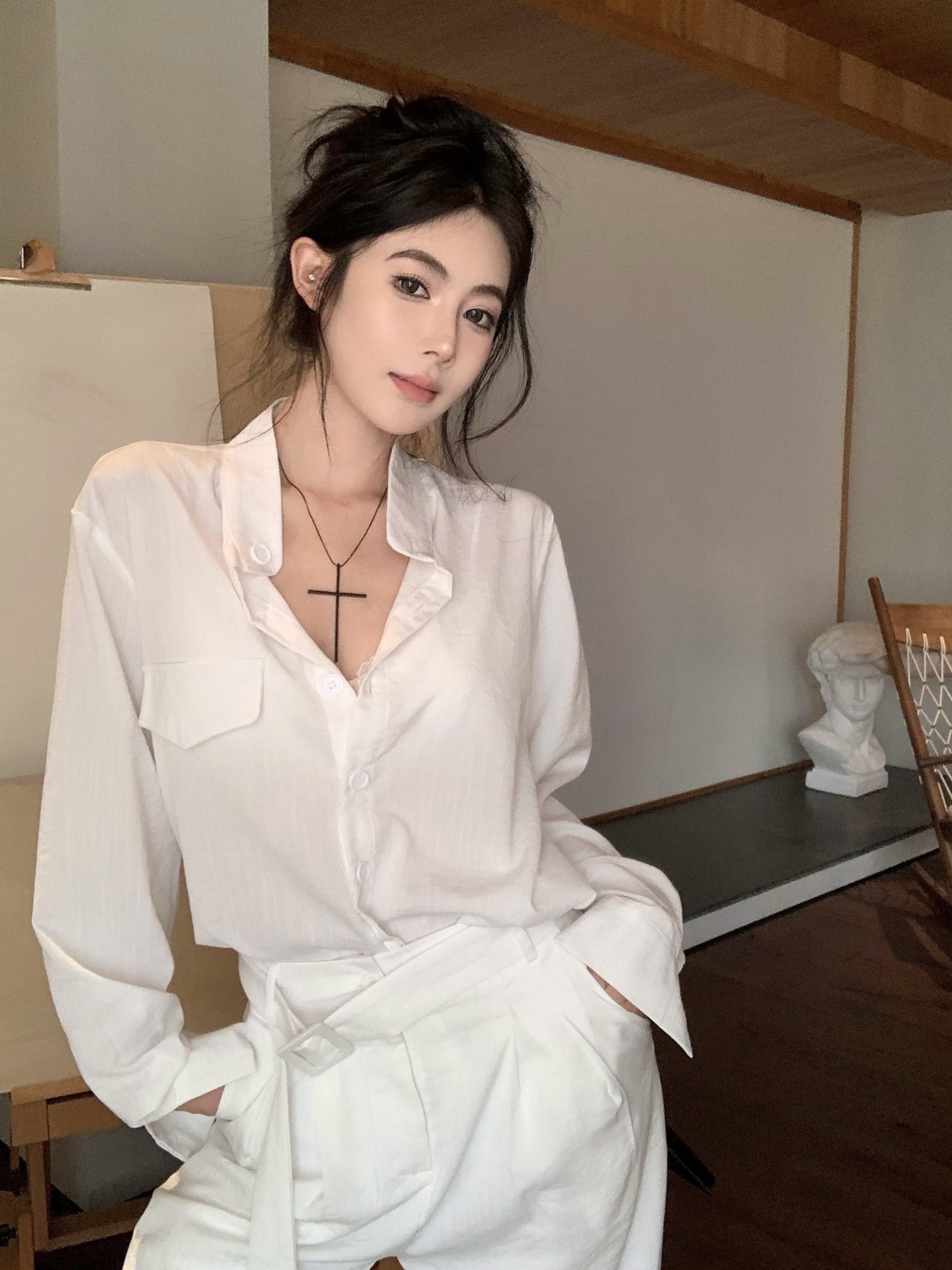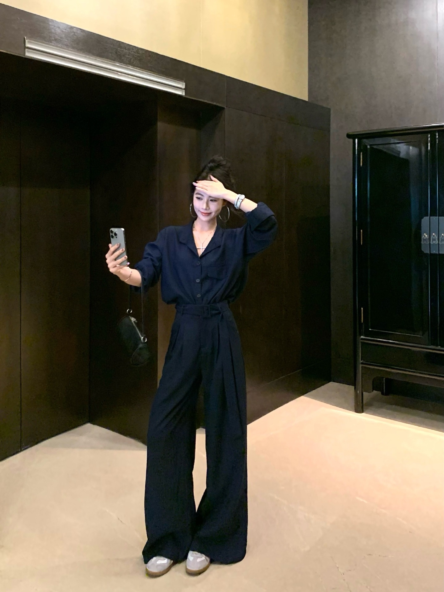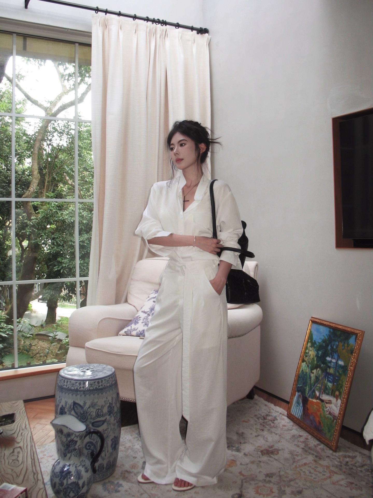 高級鬆弛感 素色襯衫長褲套裝(2件組)