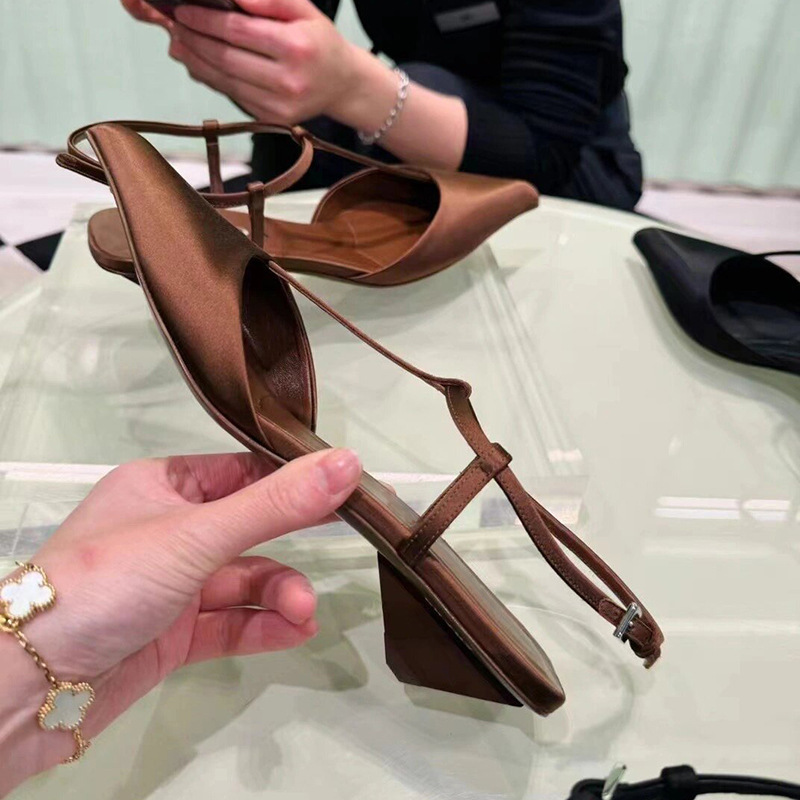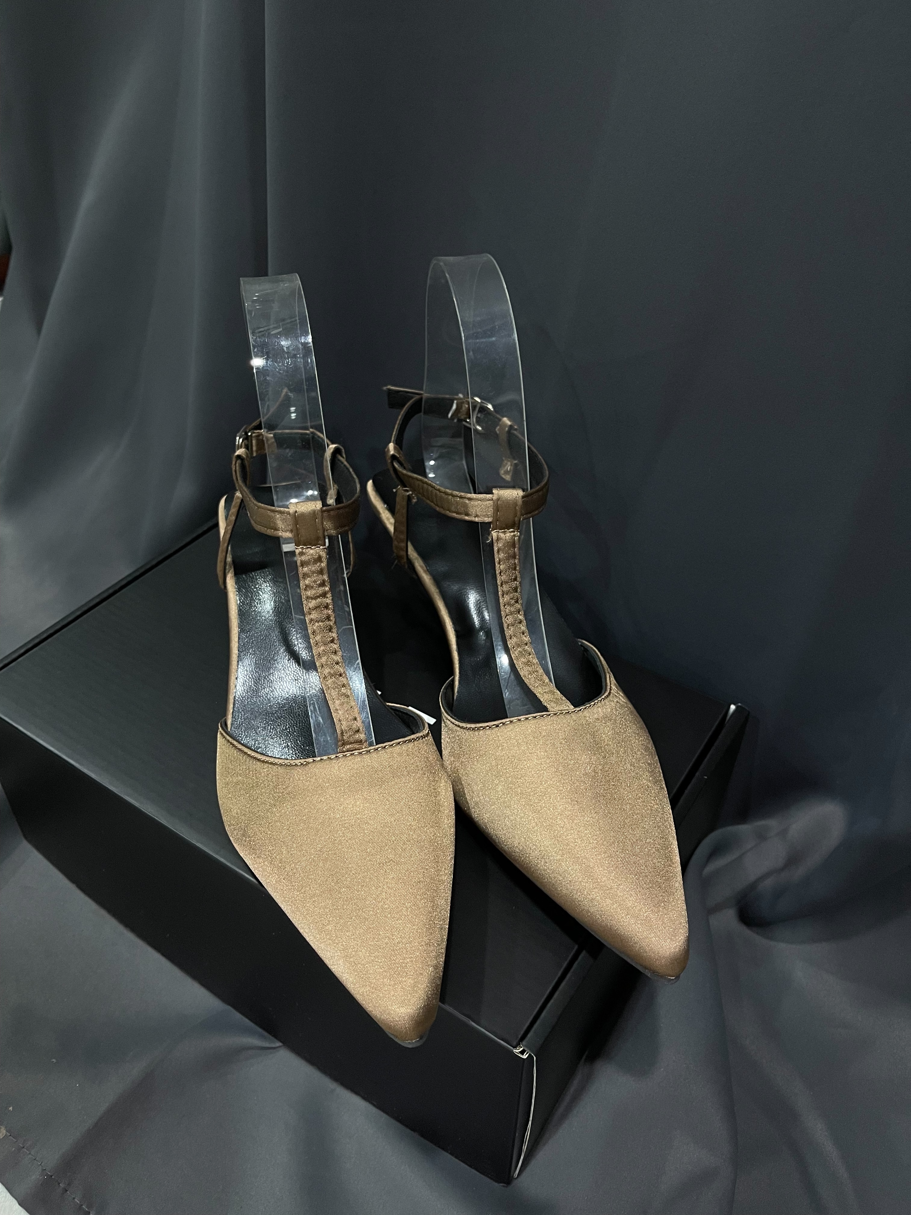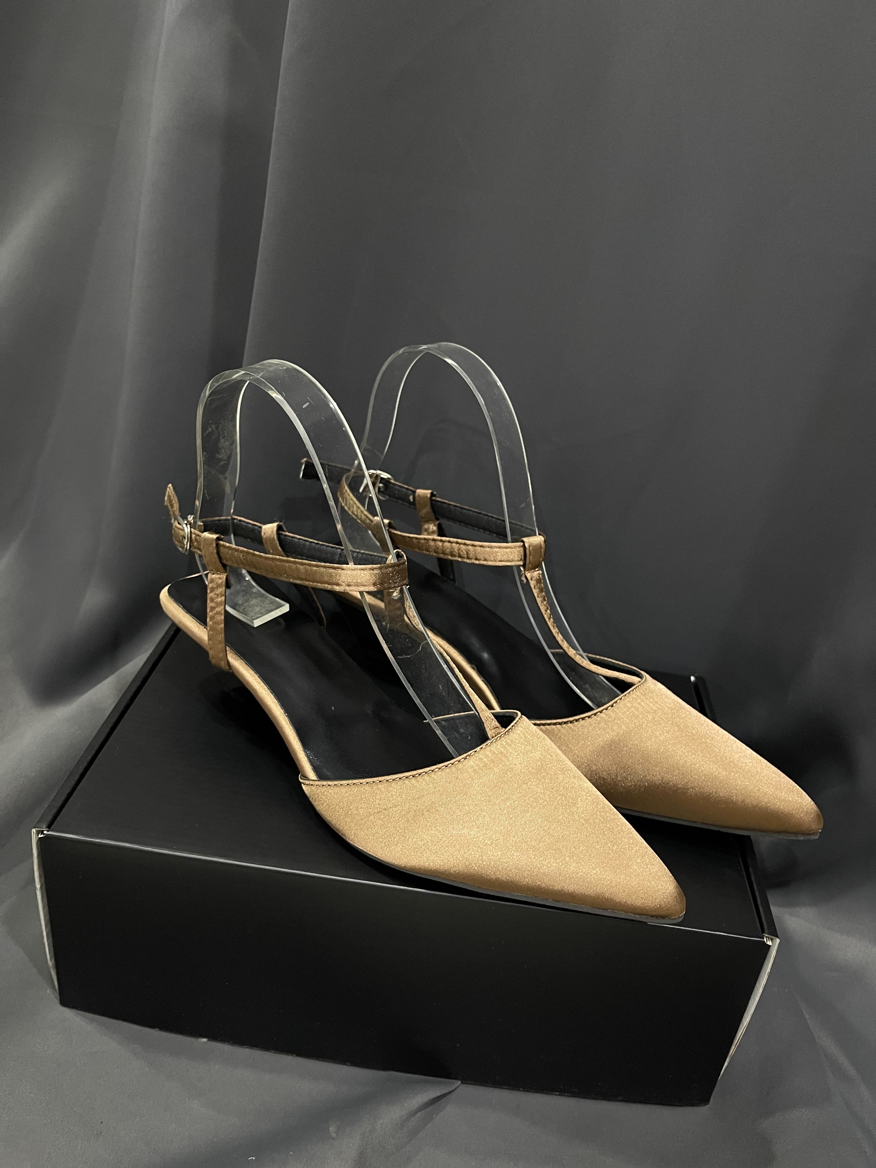 這雙黑色和咖啡色緞面跟鞋擁有簡約優雅的尖頭設計,搭配細緻精緻的T字帶,展現出時尚動人的氣質。飽滿的三角跟,不僅能提升身形,也能增添穿著舒適度。這樣的鞋款適合搭配各式正式或休閒裝,無論您是出席派對或是上班上課,都能為造型增添點睛之筆。