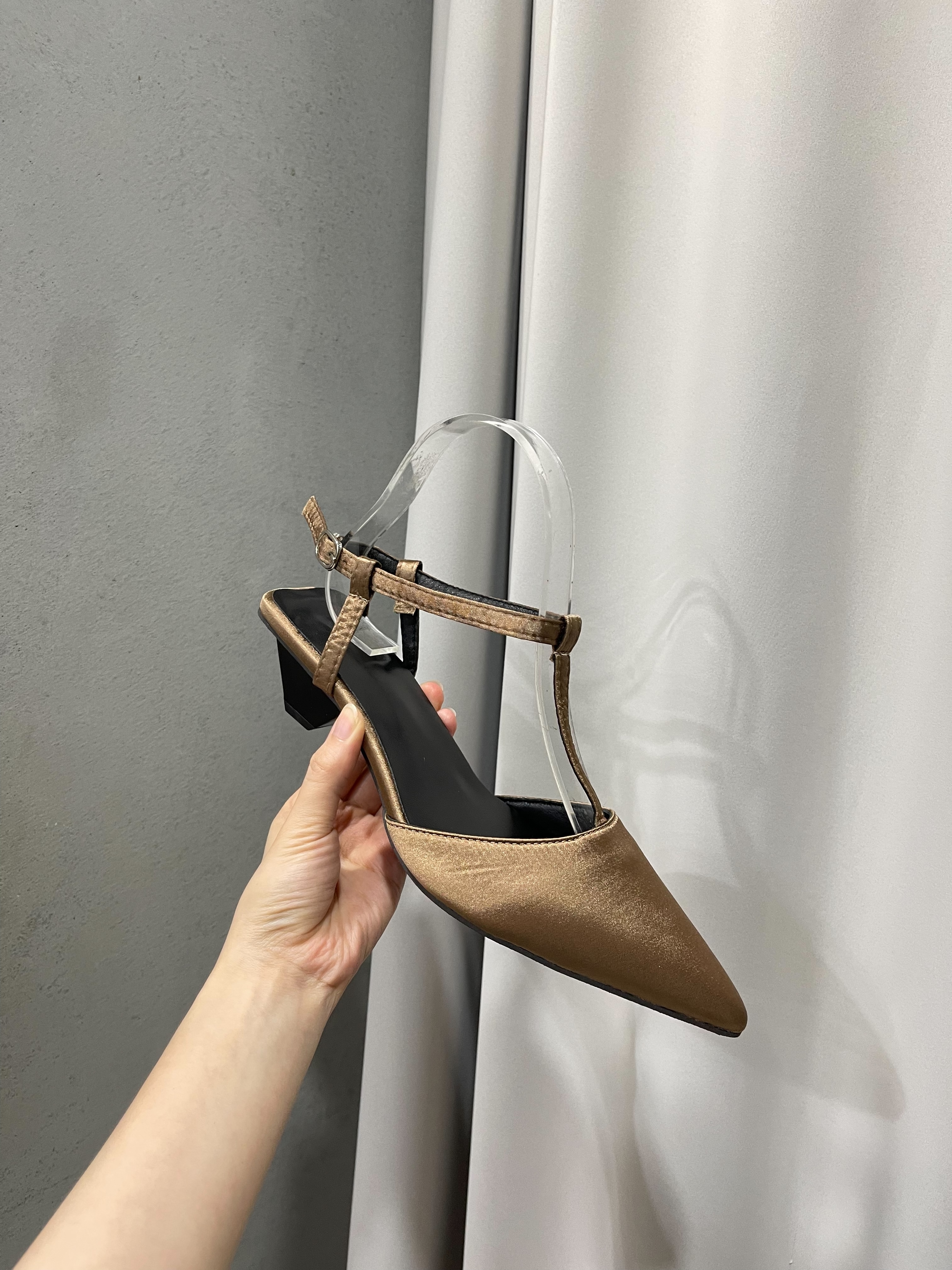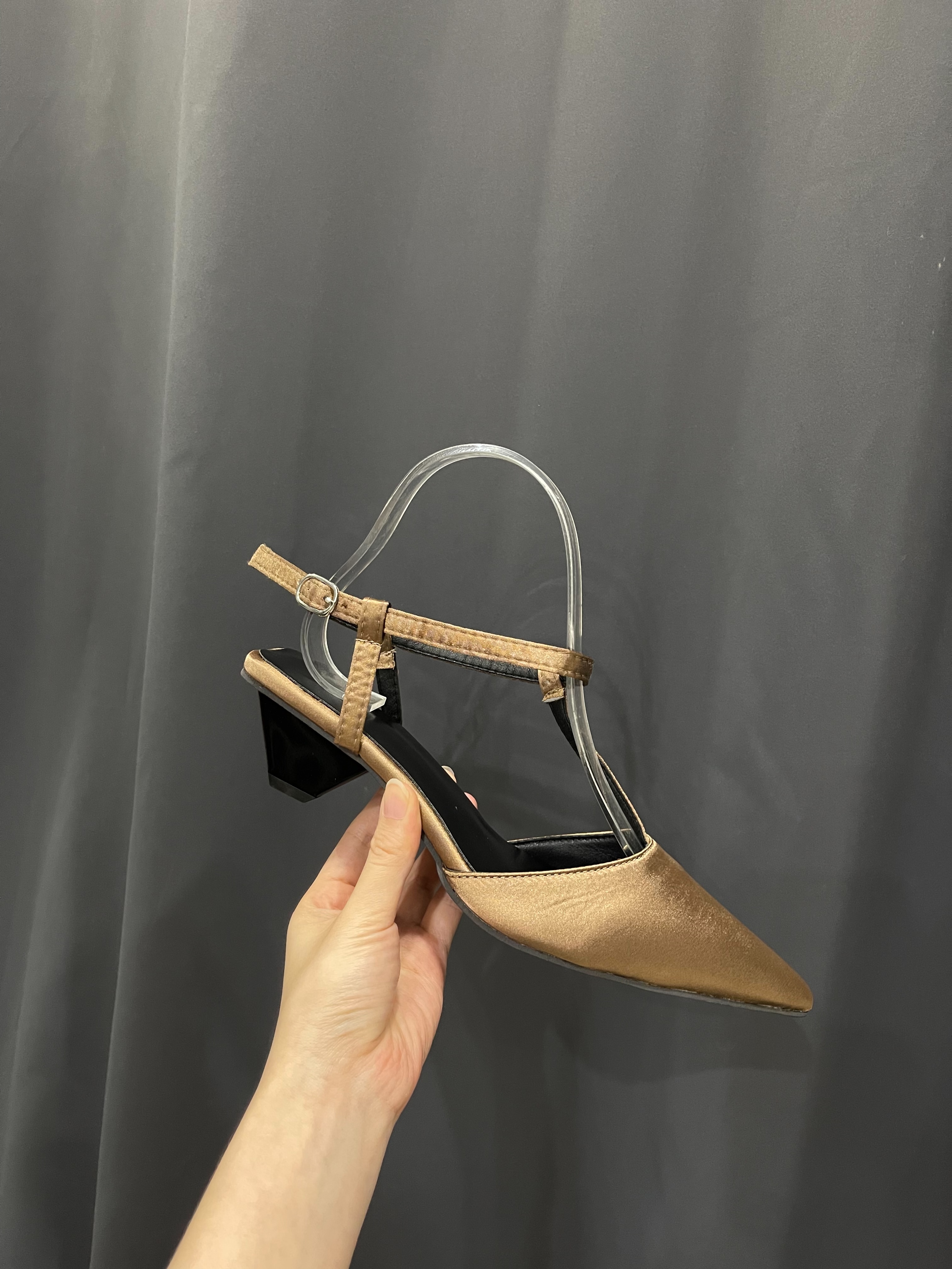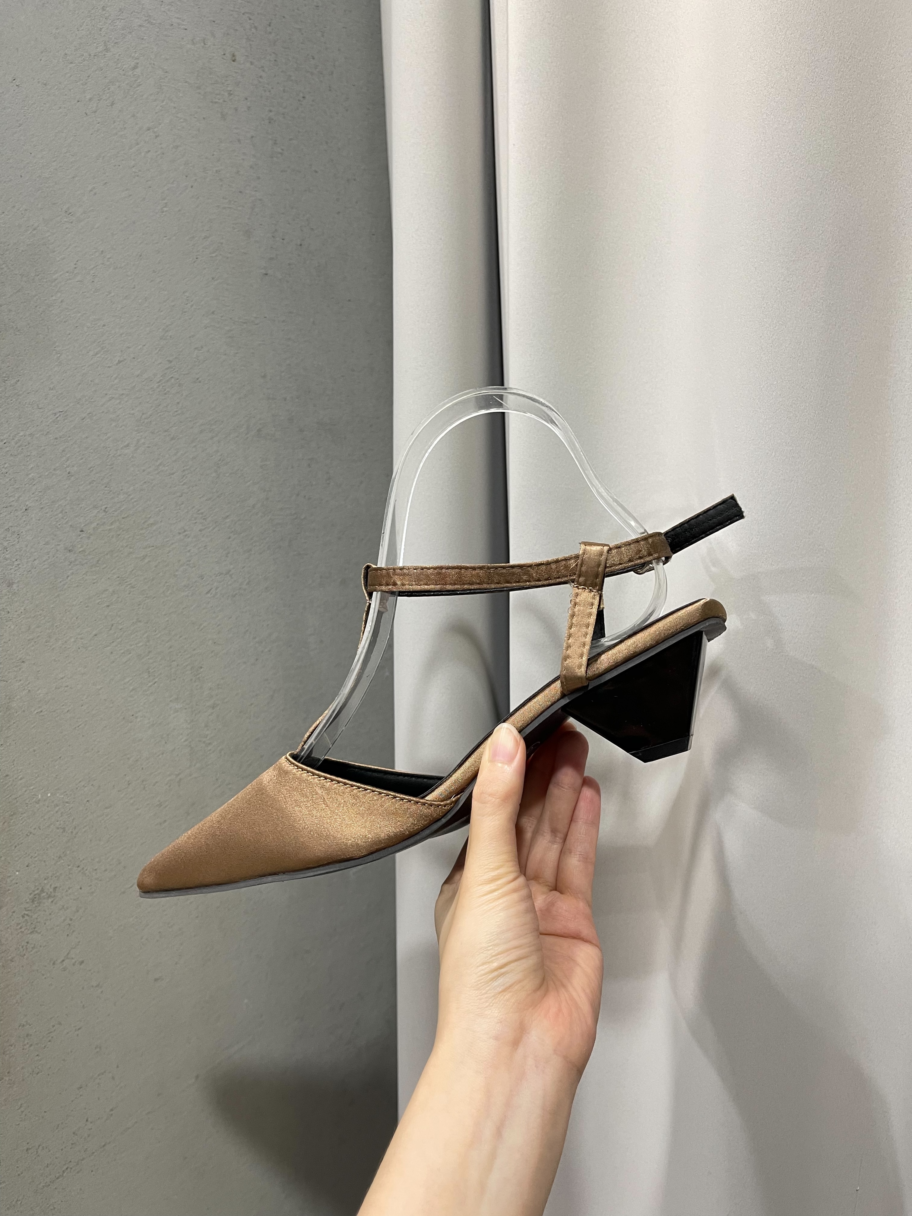 三角跟T帶緞面跟鞋(35-43)(黑/咖)