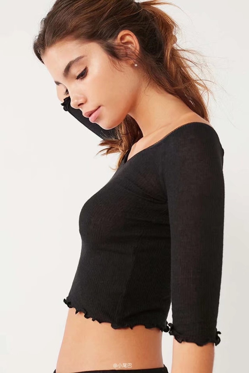 露臍剪裁,展現纖細的腰線與小性感