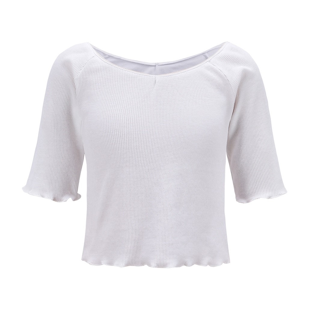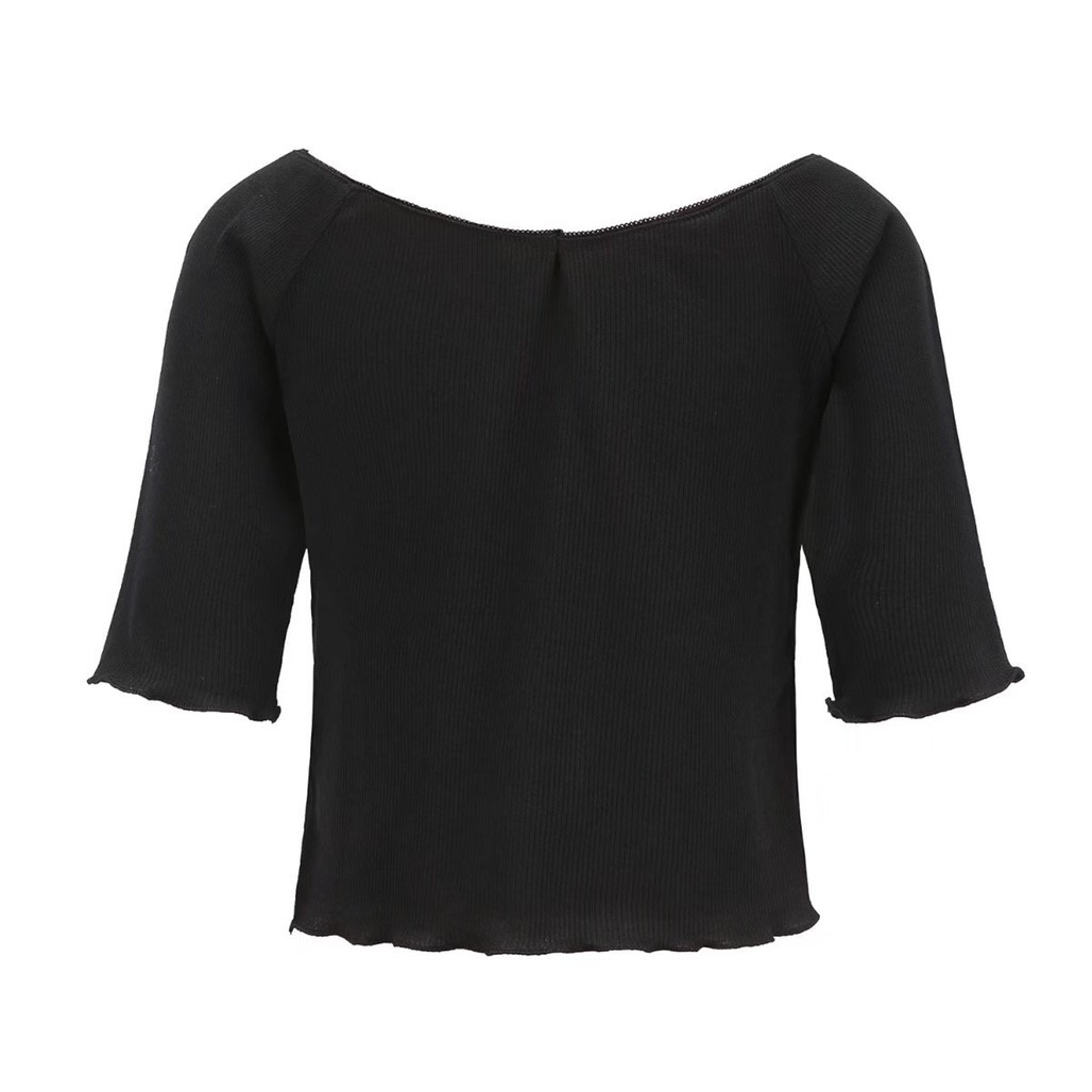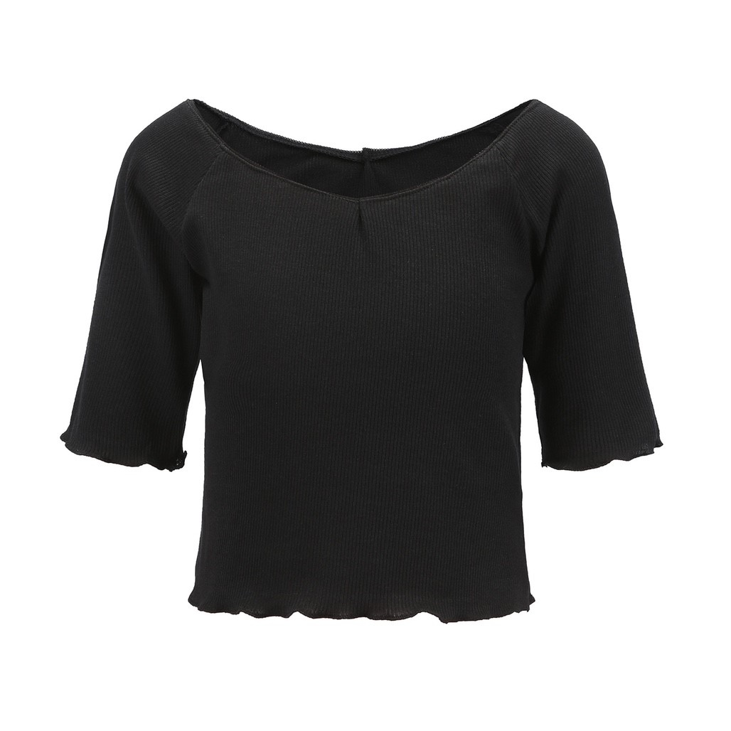 大V領花邊露臍T恤(黑/白/橘)