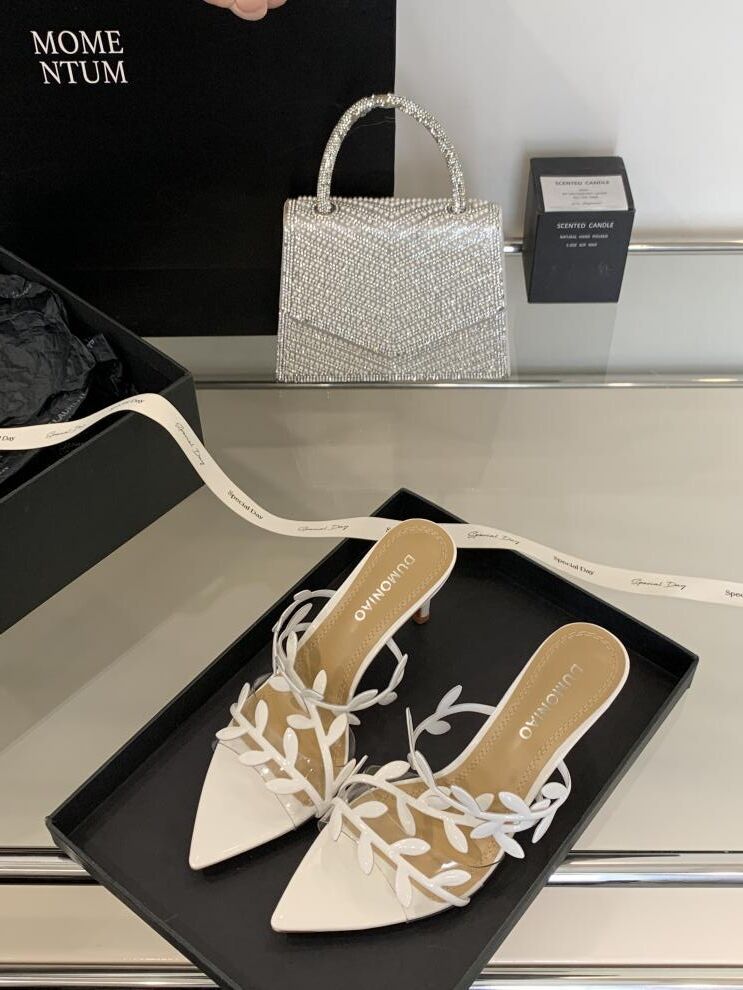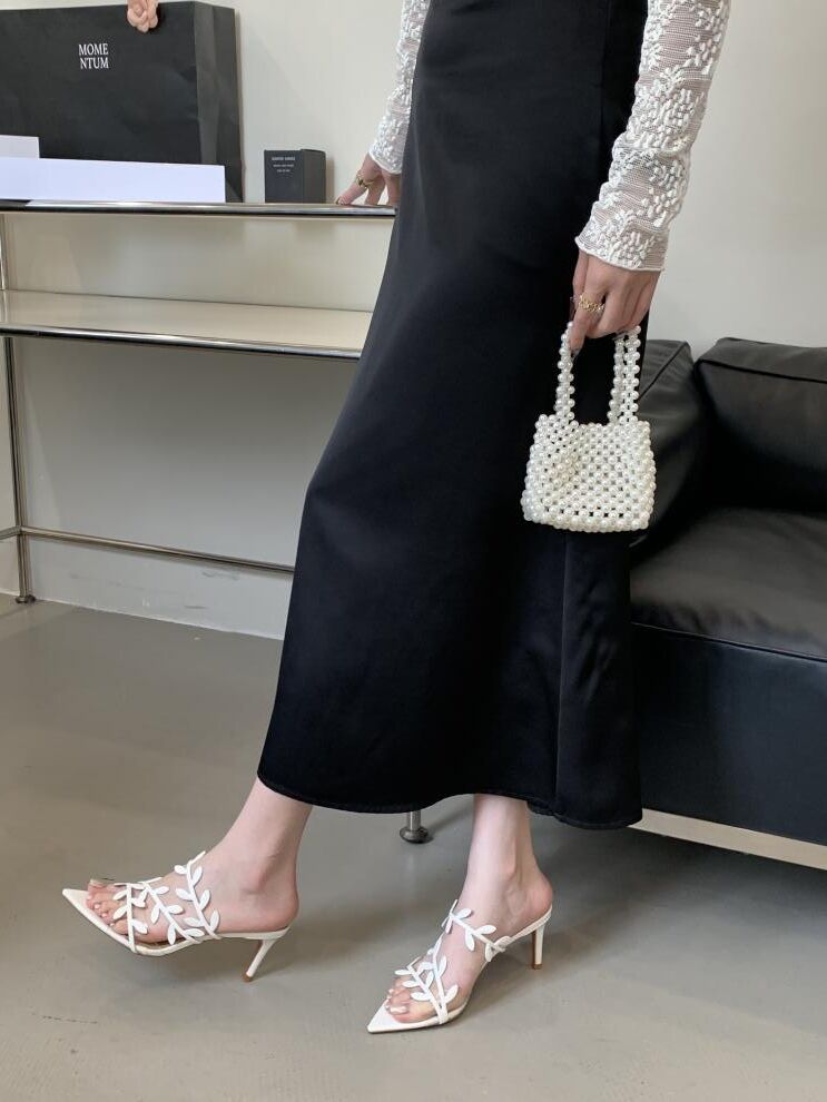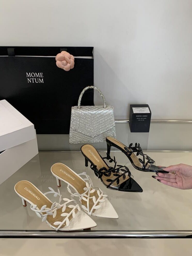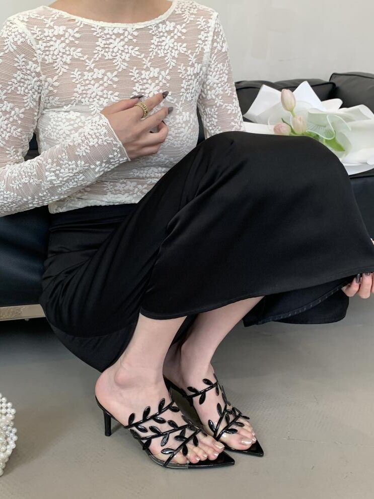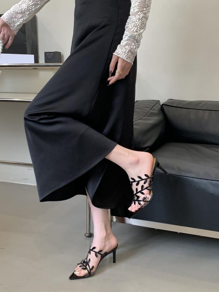 葉子藤蔓尖頭跟拖(35-40)(黑/白)
