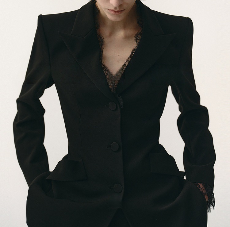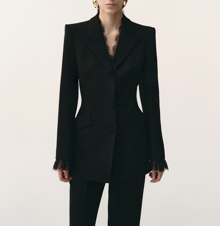 高冷女王 蕾絲拼接翻領西裝(套裝)