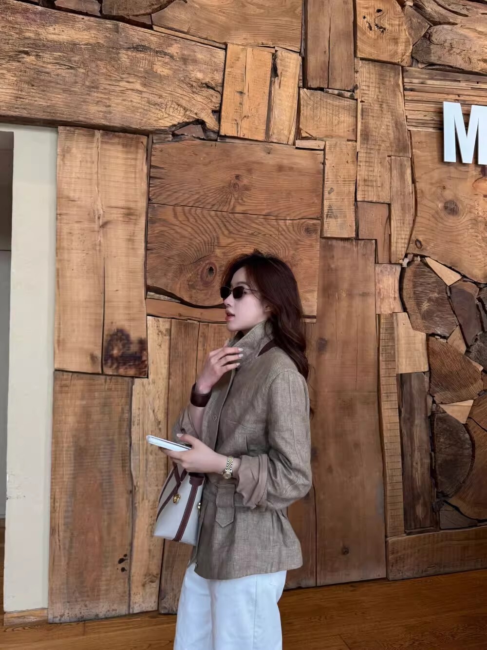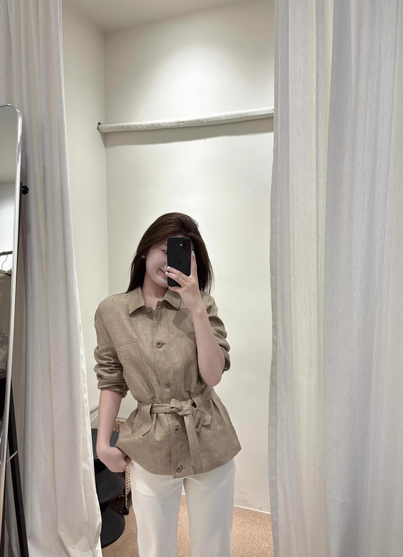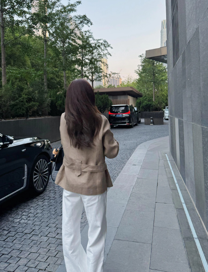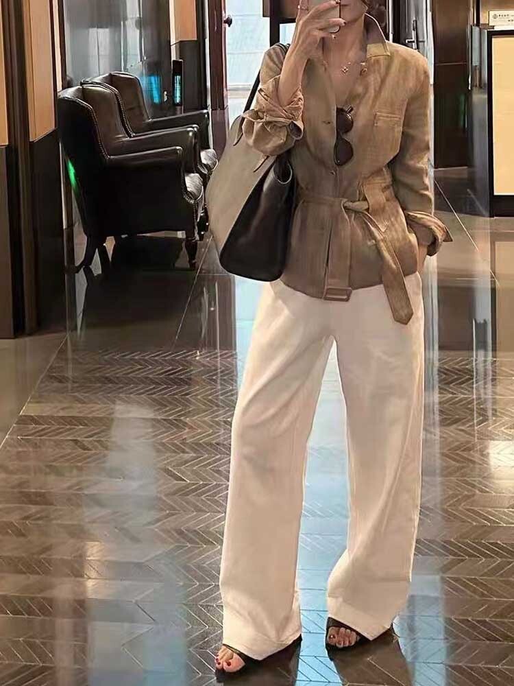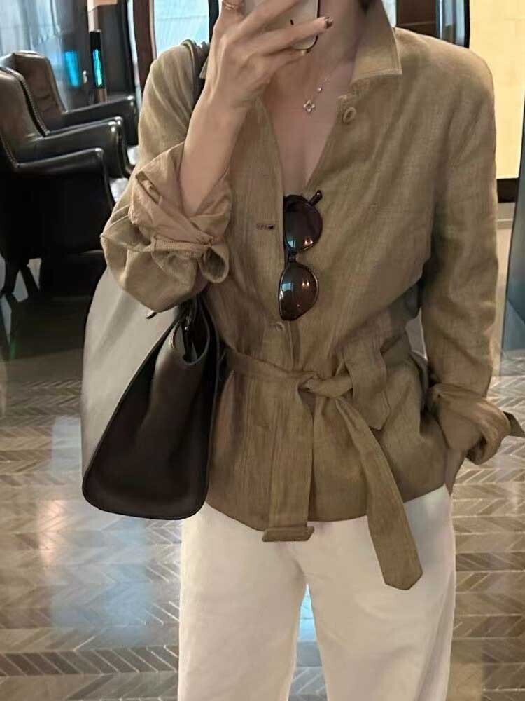 綁帶收腰 亞麻款版襯衫