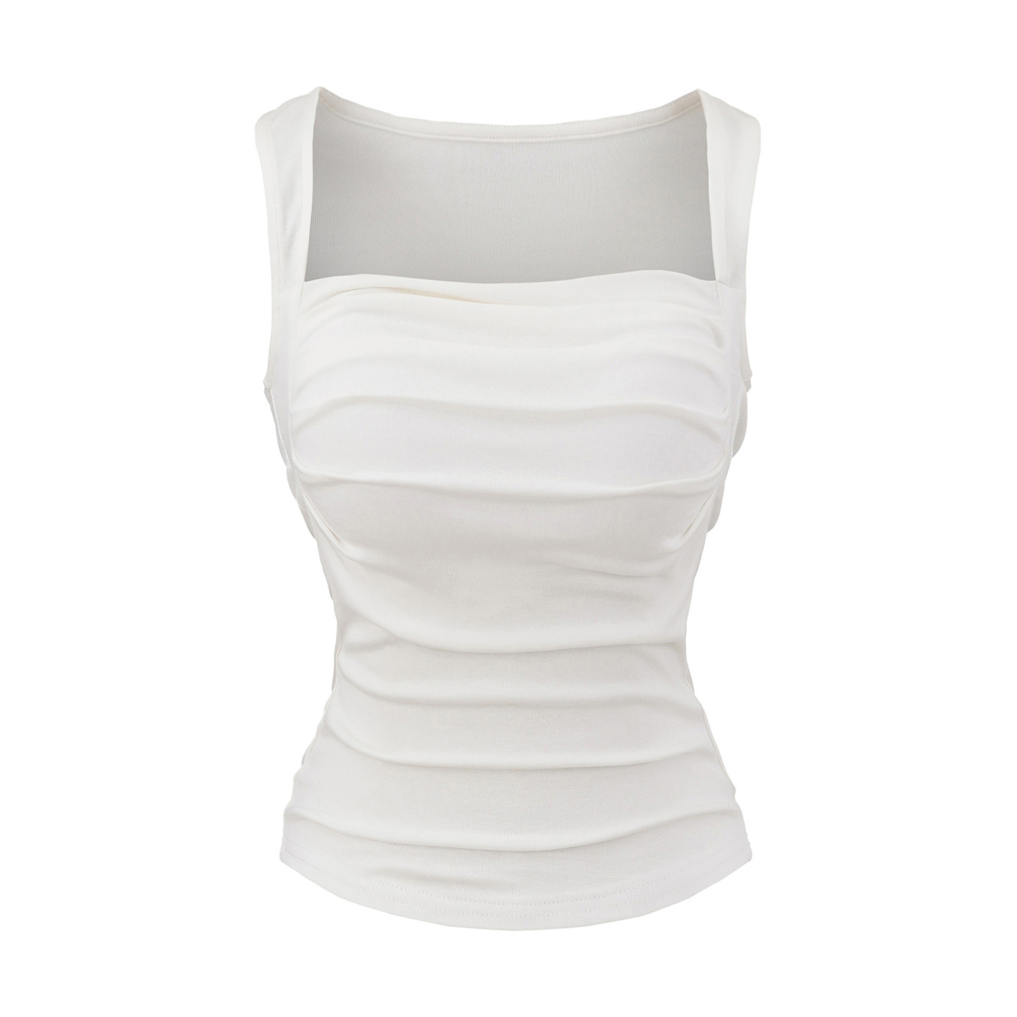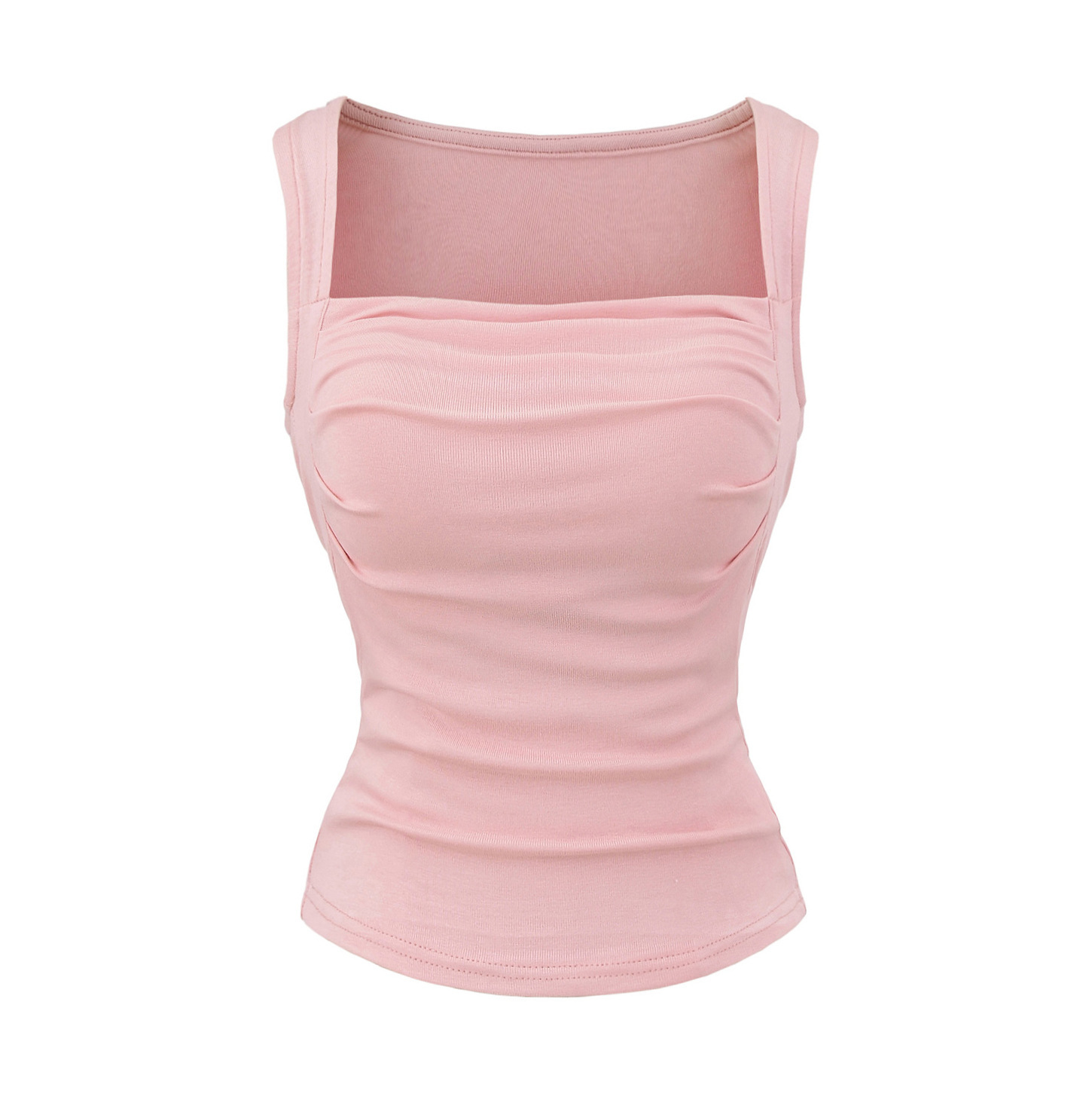 遮副乳方領 帶胸墊棉質上衣(多色)