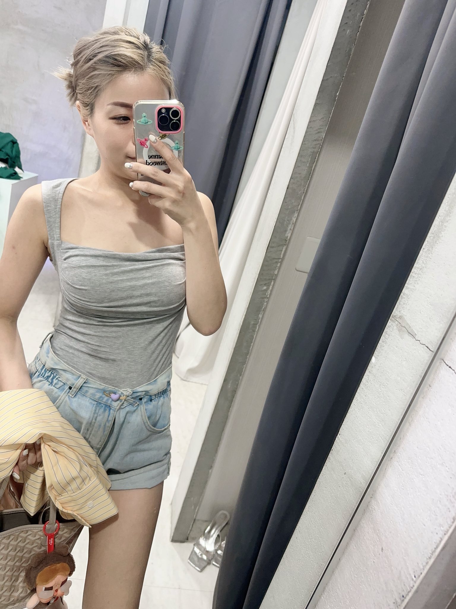 遮副乳方領 帶胸墊棉質上衣(粉/黃/杏/灰/深藍/白/黑)