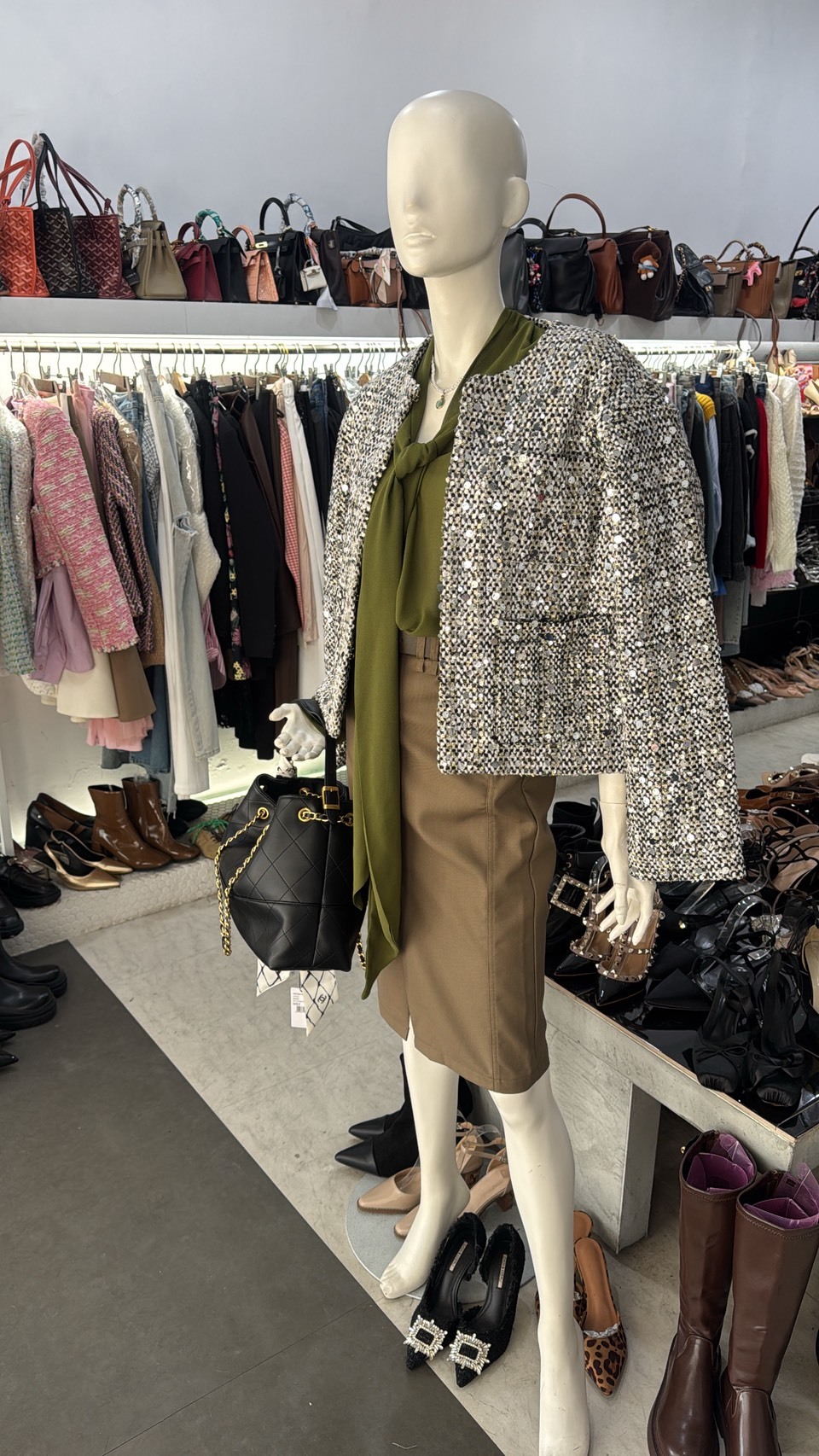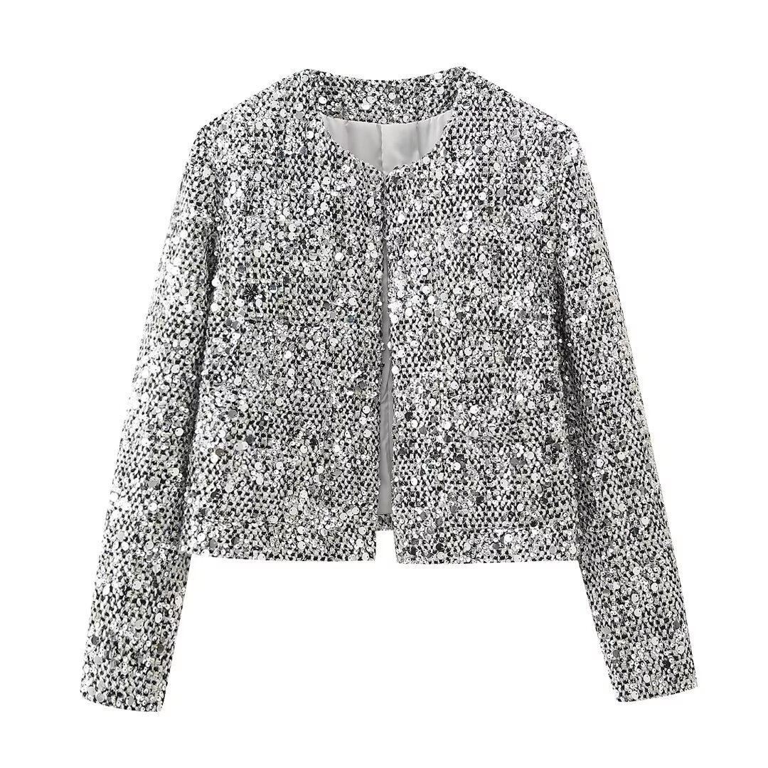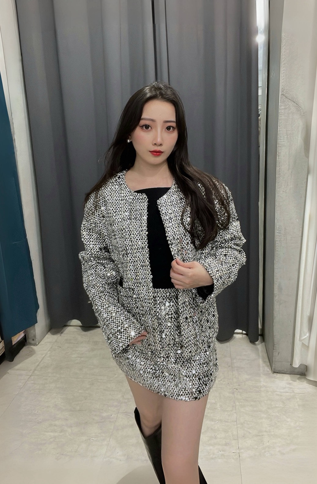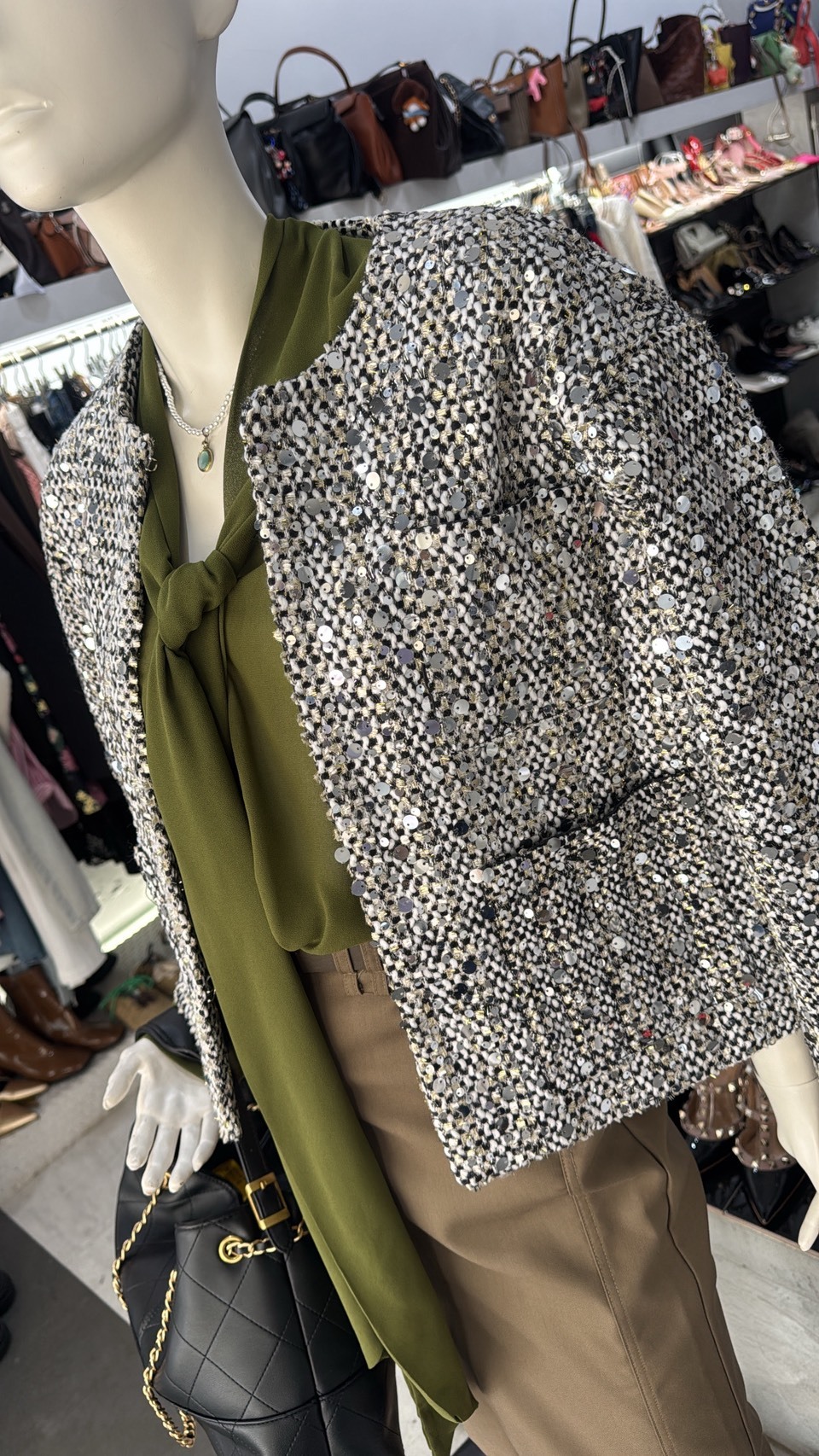GD既視感👑銀白高雅 粗花泥亮片外套