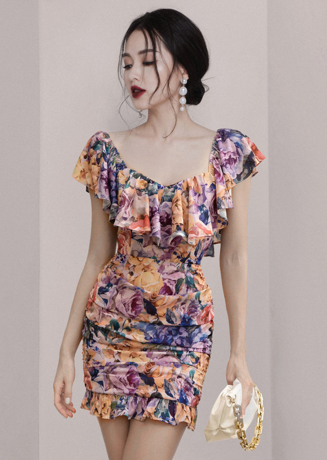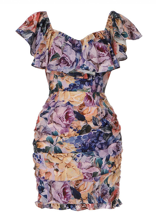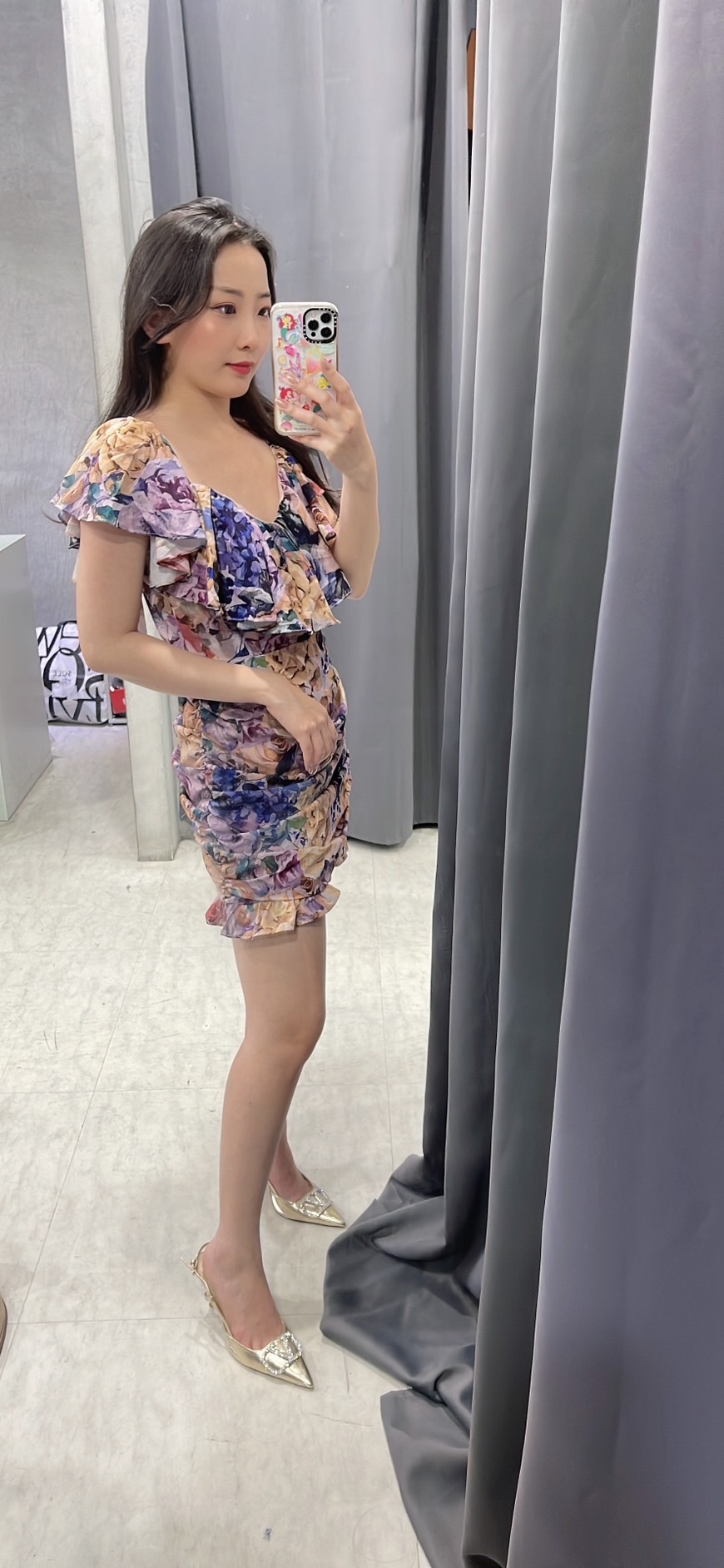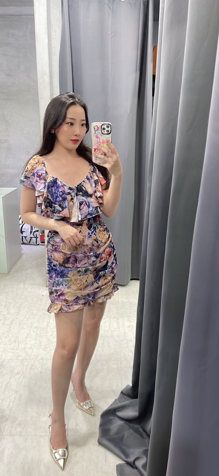 這件洋裝採用柔軟優質的面料,搭配精緻的復古印花圖案,展現溫柔的氣質。精心設計的荷葉邊領口和袖口,為整體造型添加了浪漫氣息。貼身的版型修飾身形,締造優雅迷人的線條。無論是於休閒場合或是隆重活動,這件洋裝都能為妳帶來時尚動人的風采。
