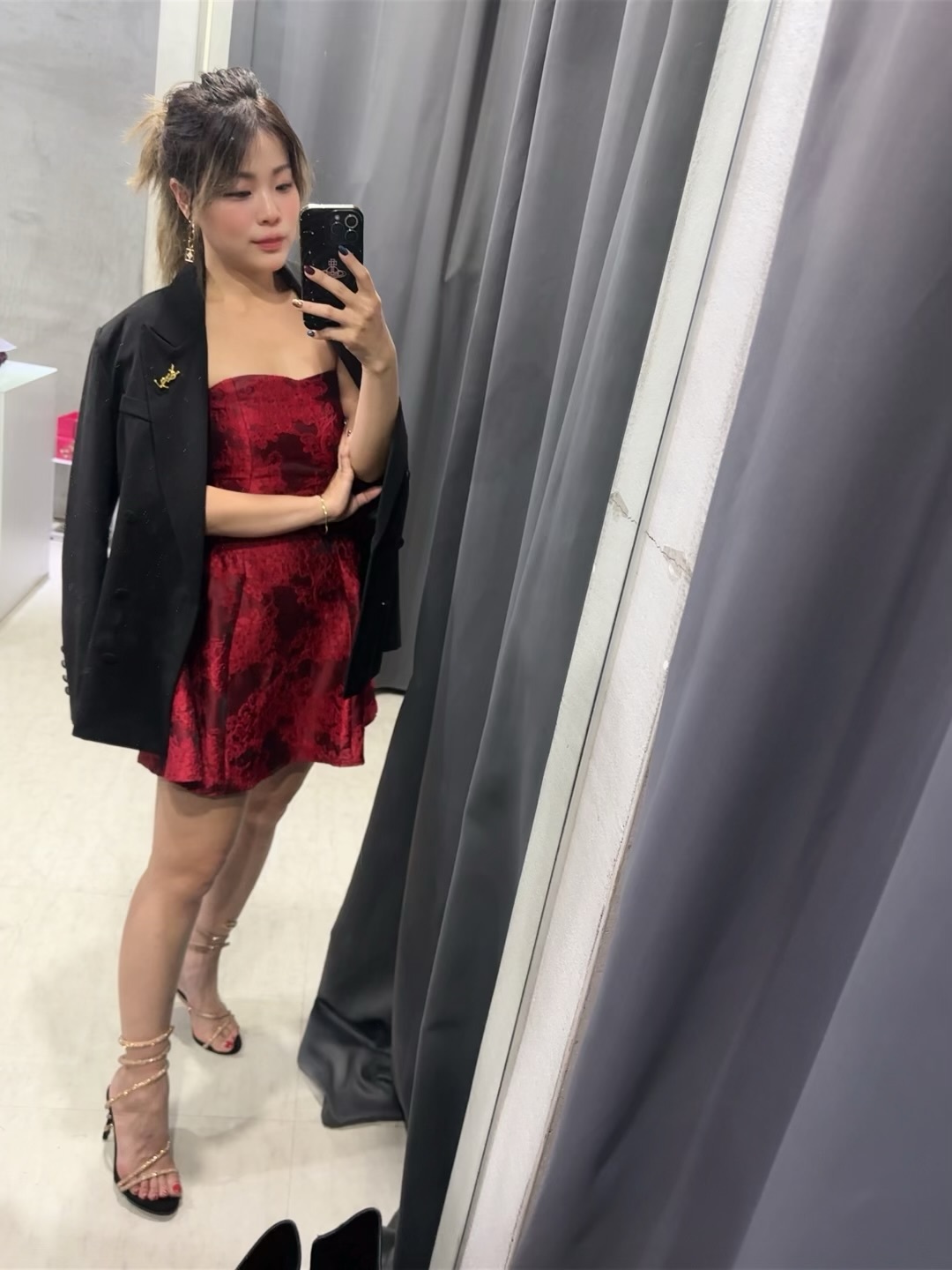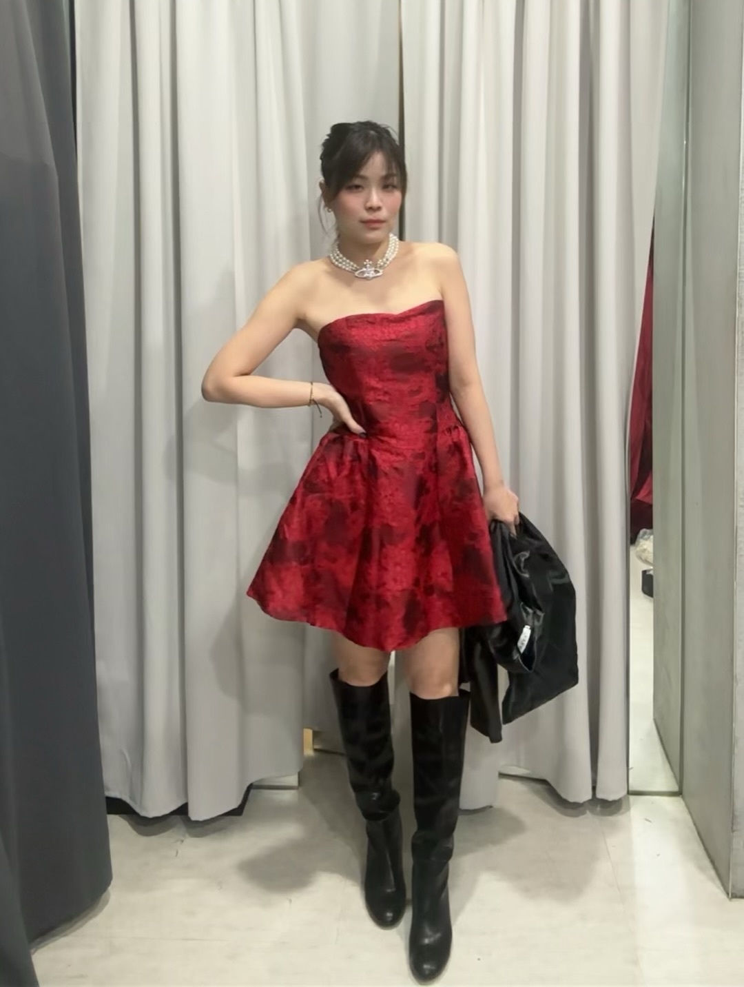 暈染刺繡 平口收腰小洋裝