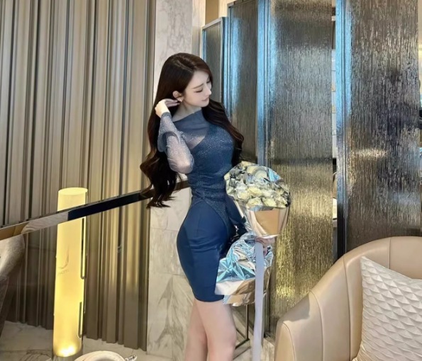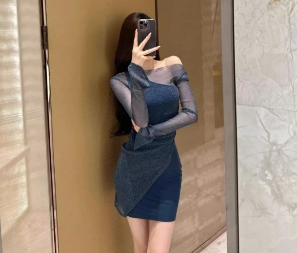 假2件網紗拼接 貼身小洋裝
