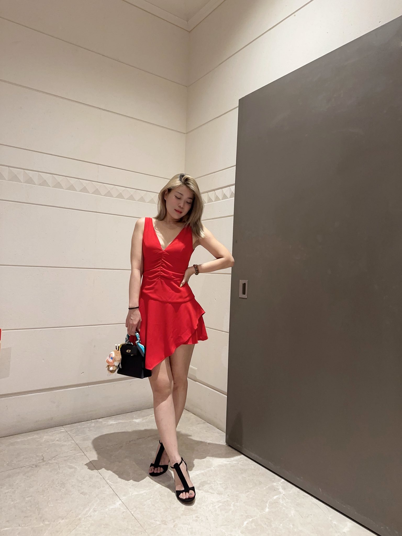 熟女性感 V領雪紡不規則小洋裝
