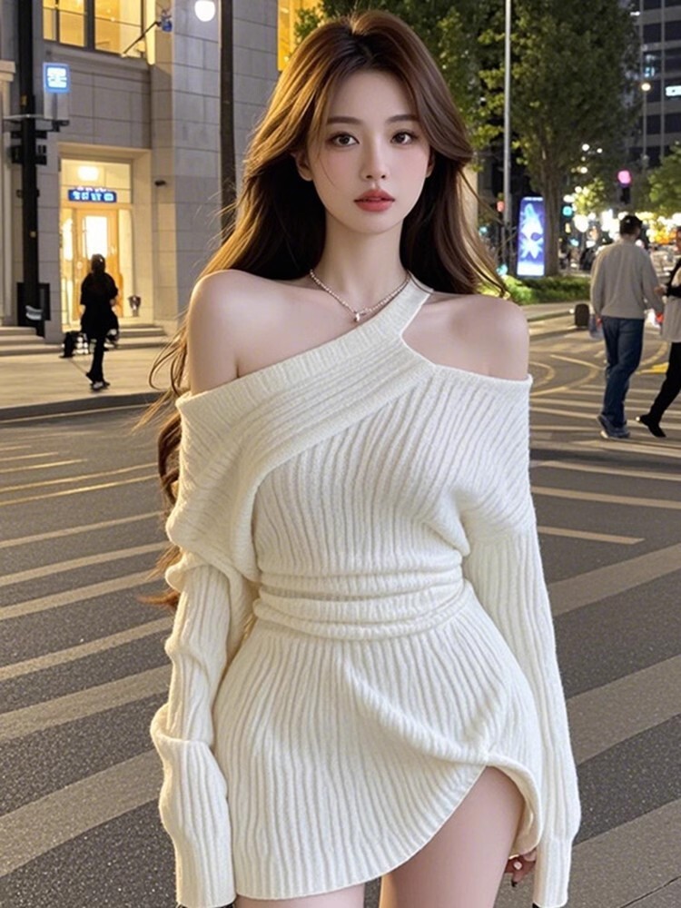 純慾性感 露肩針織洋裝