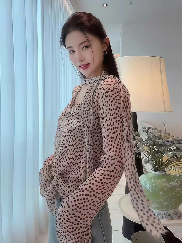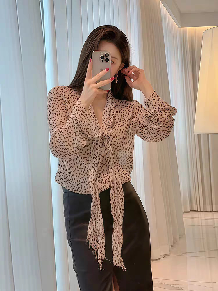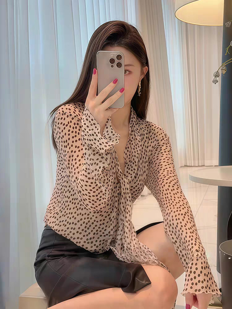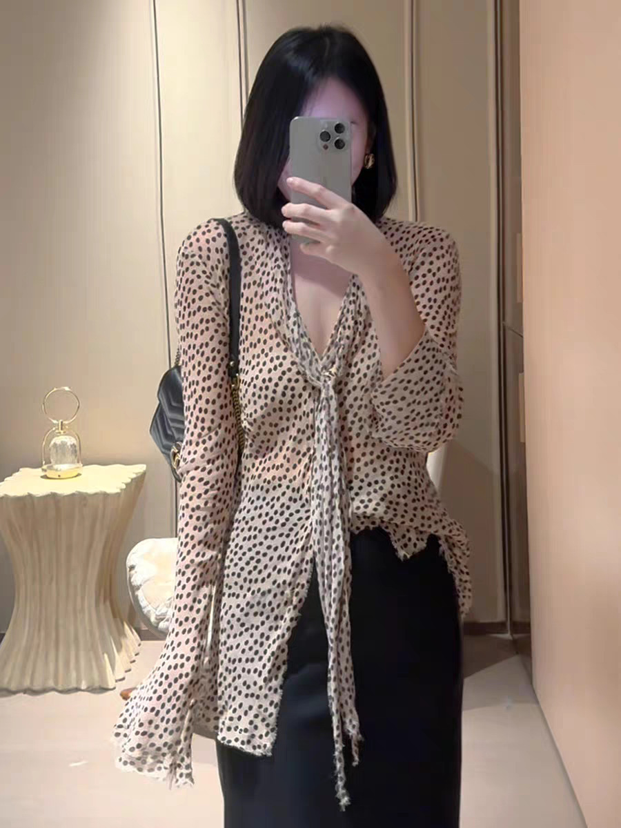 波點V領雪紡上衣