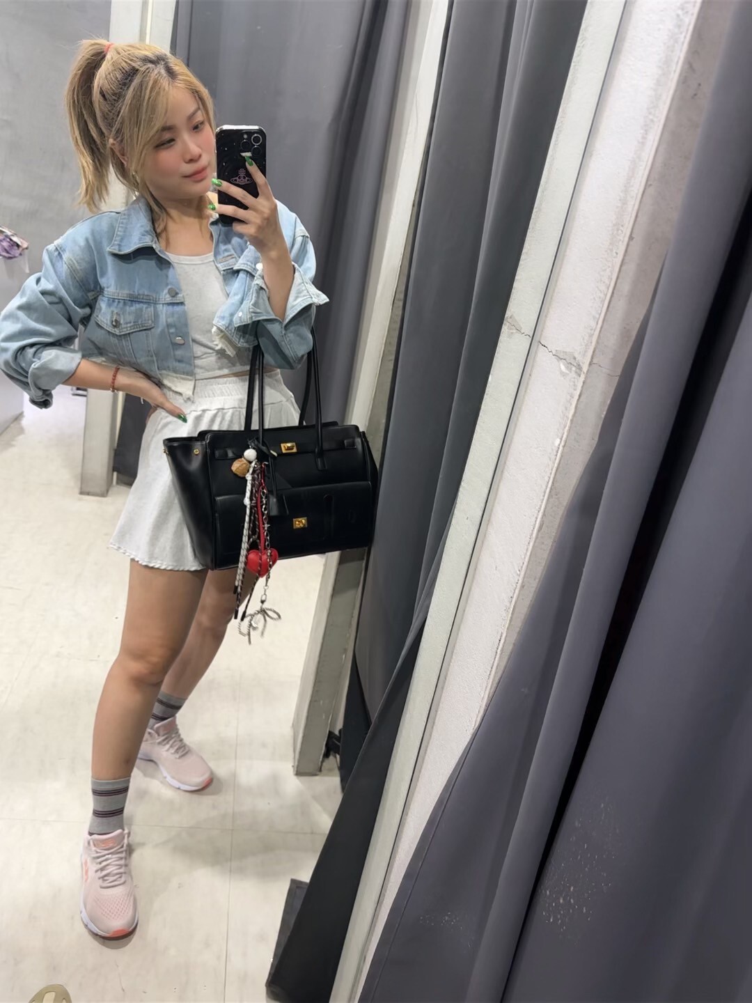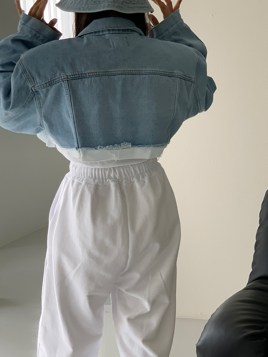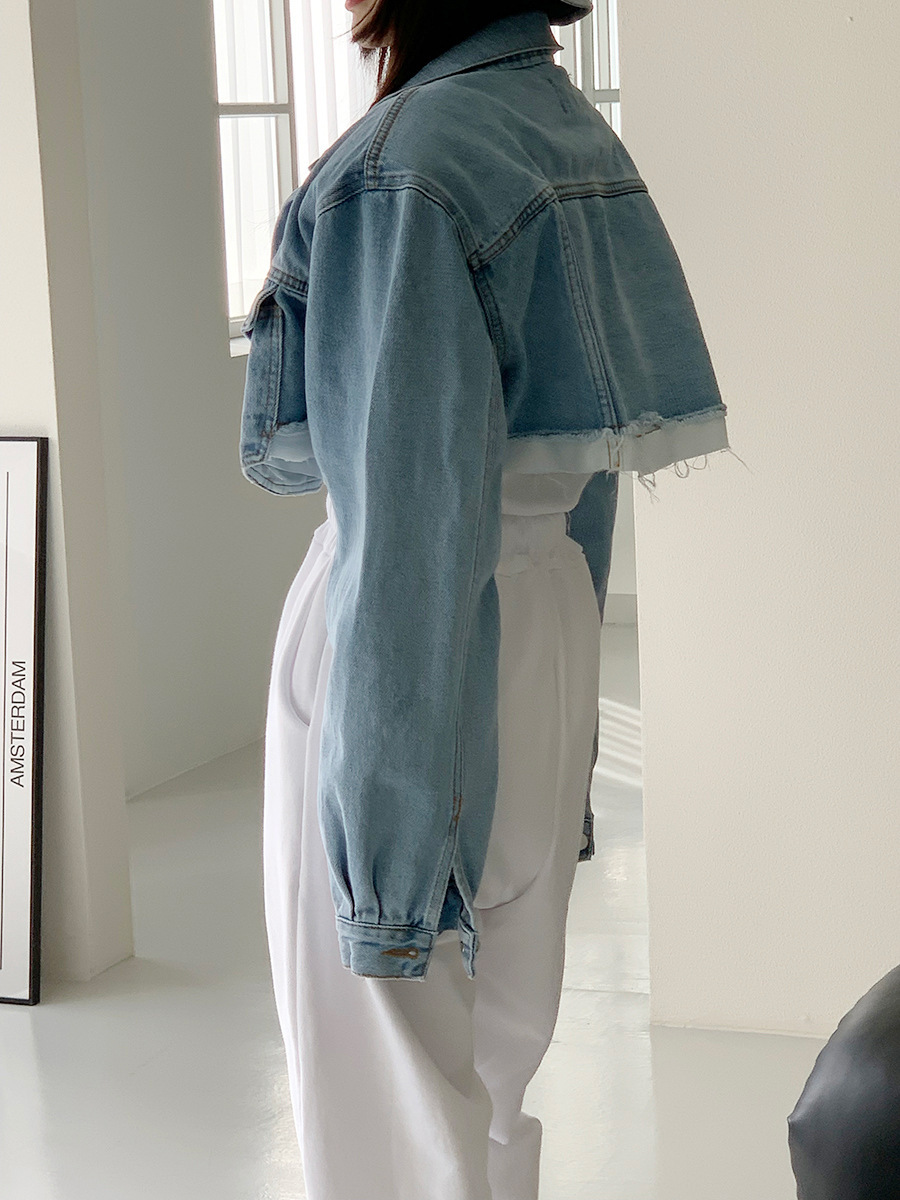 短版假2件牛仔外套