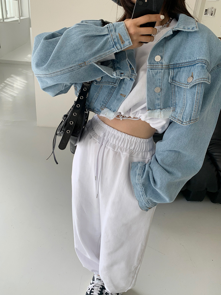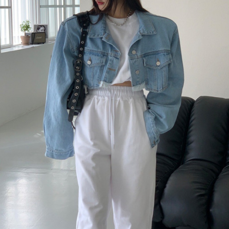 這款短版牛仔外套瀰漫著復古時尚氣息。