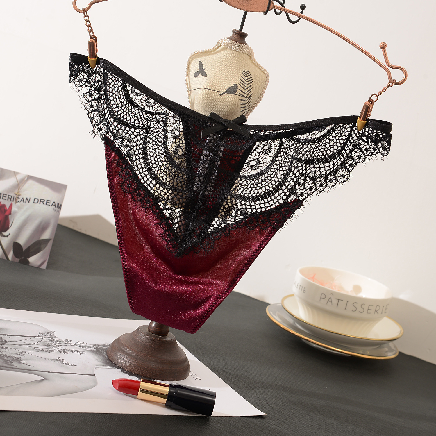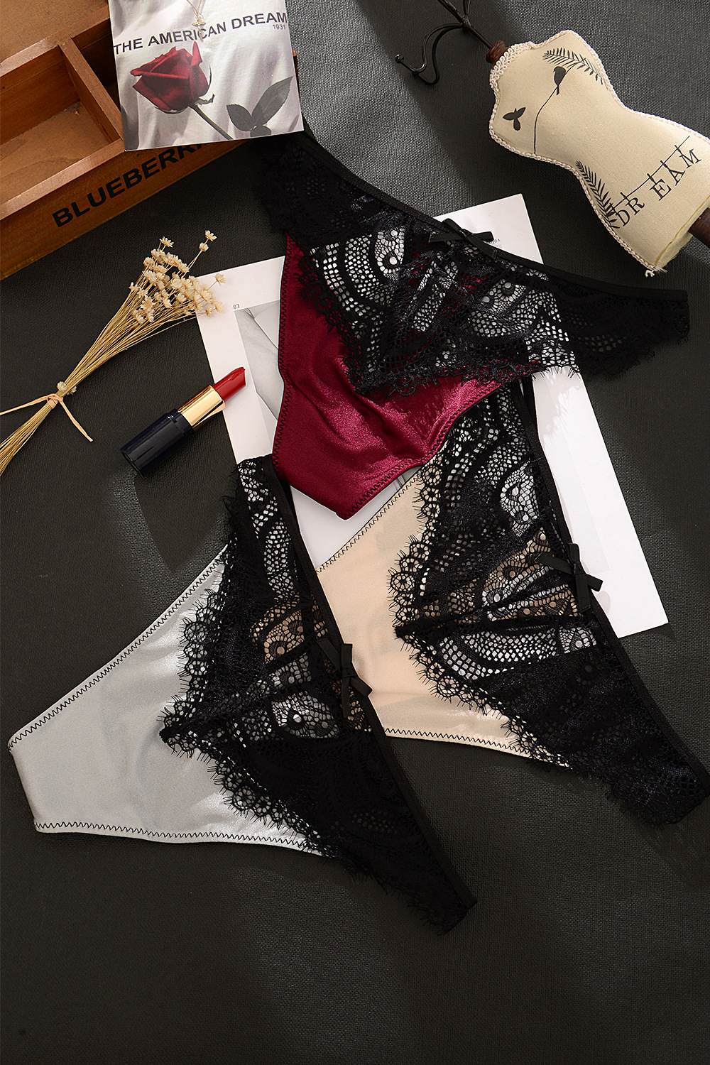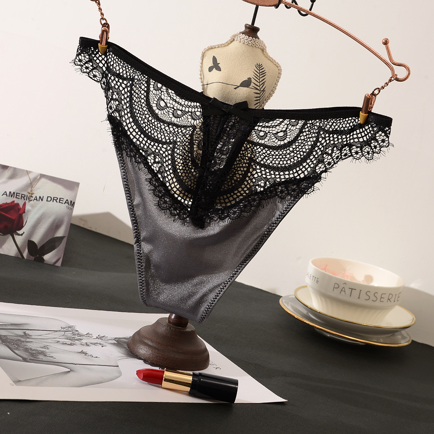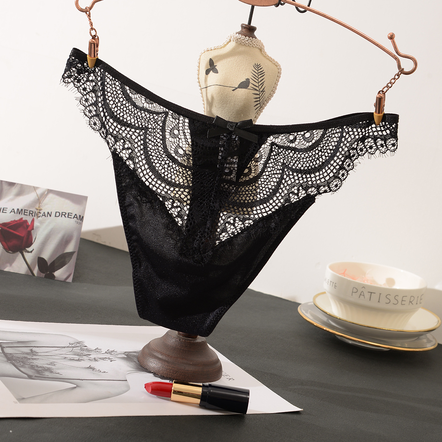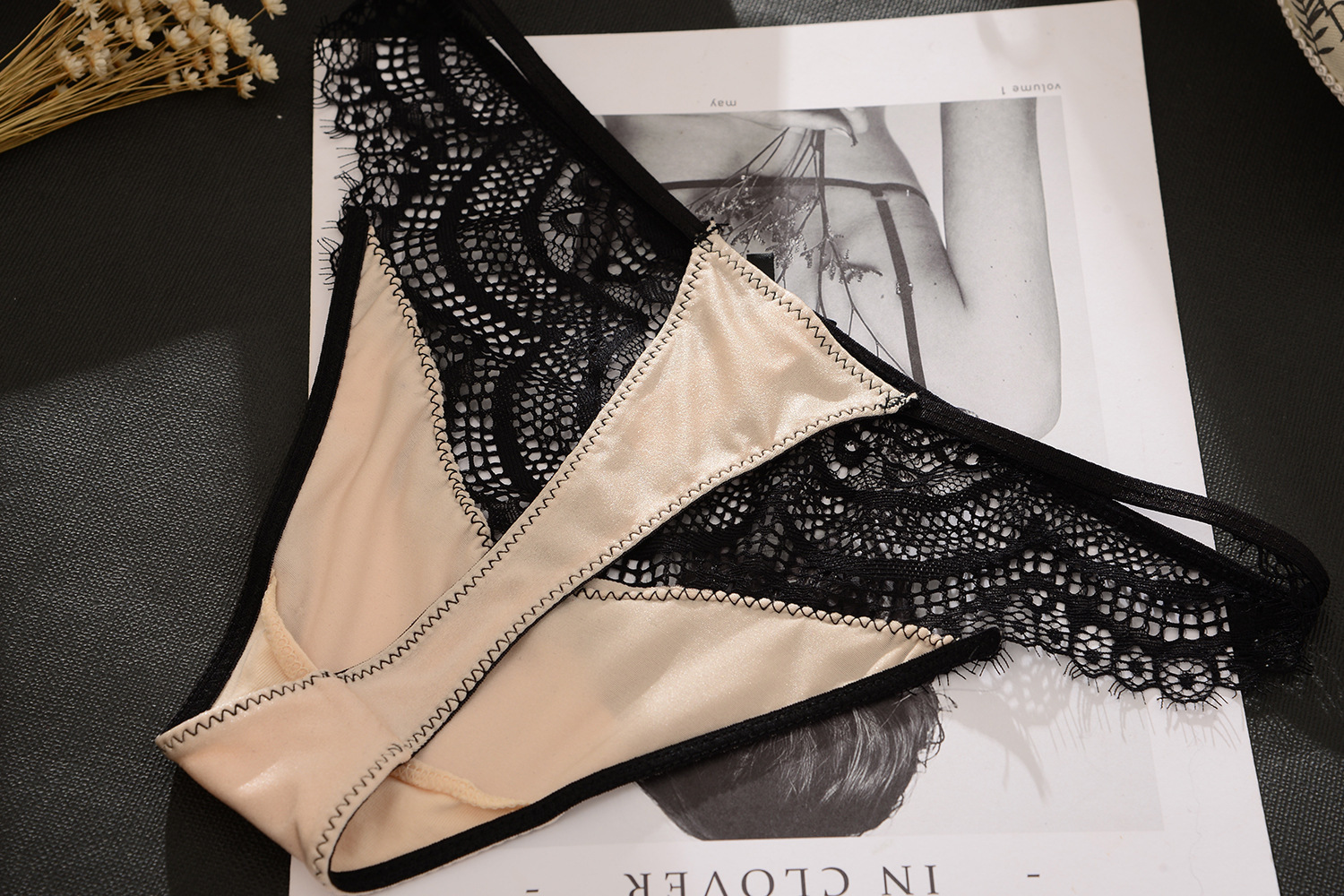睫毛蕾絲 冰絲拼接丁字褲