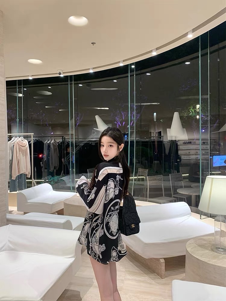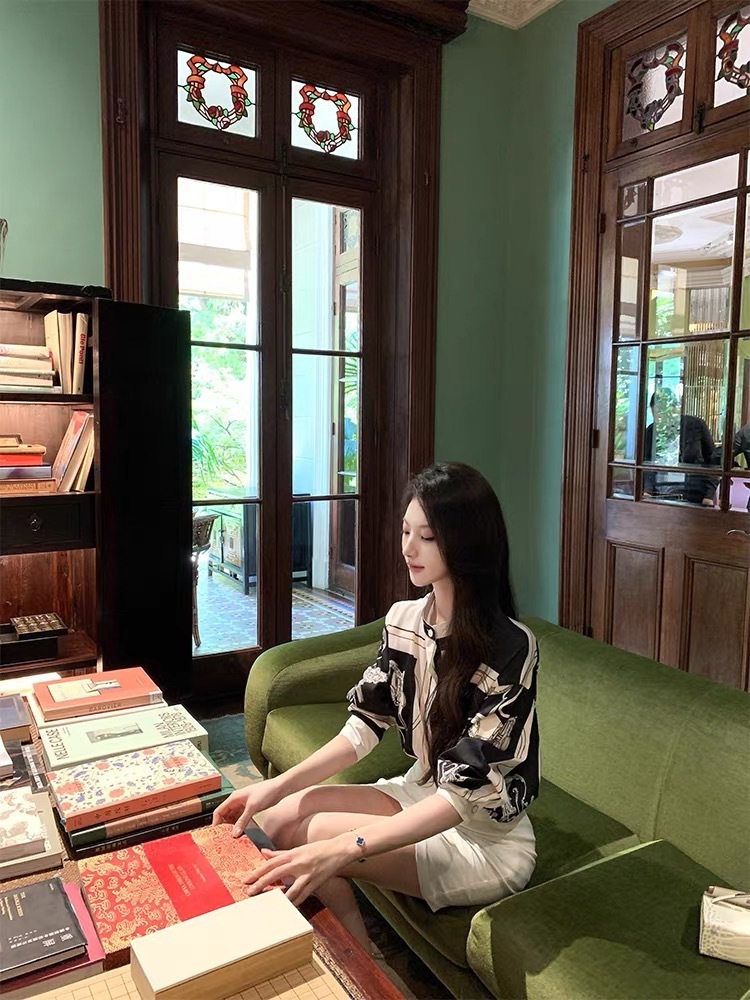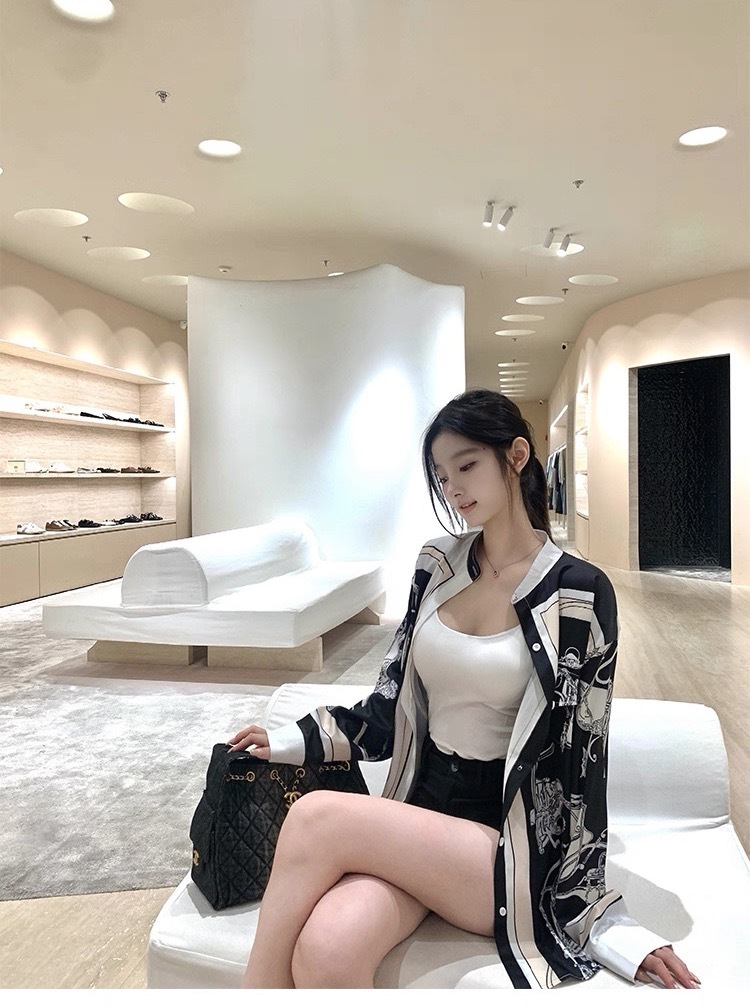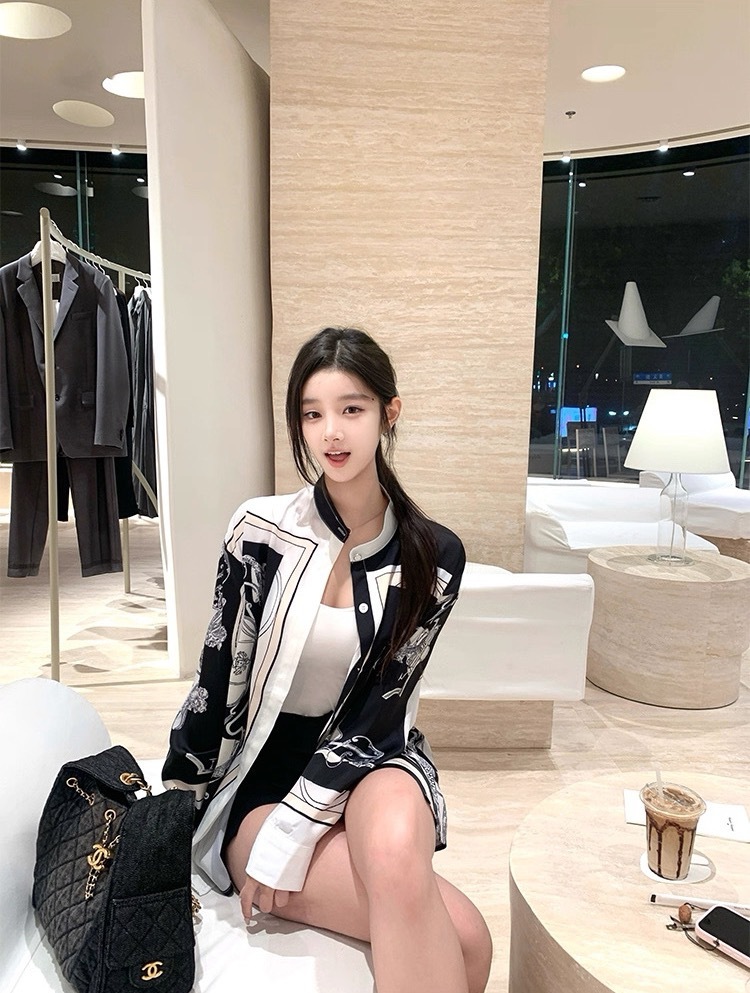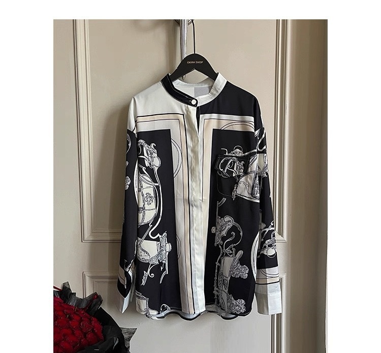 H牌印花 綢緞立領襯衫