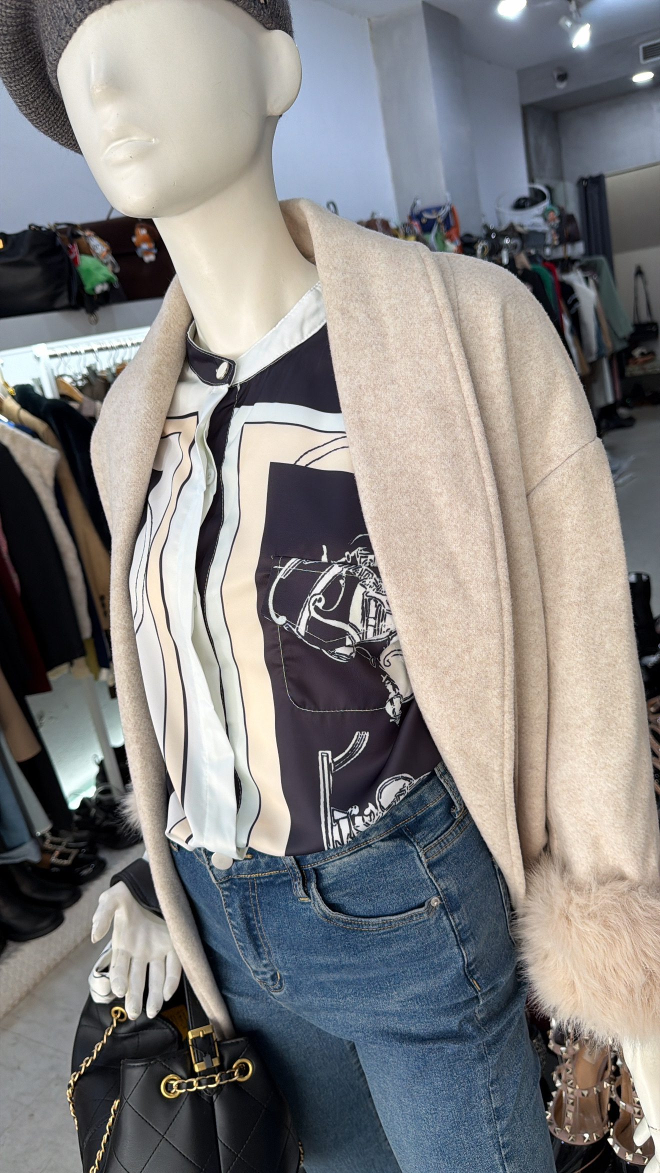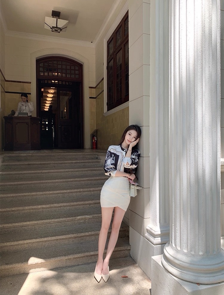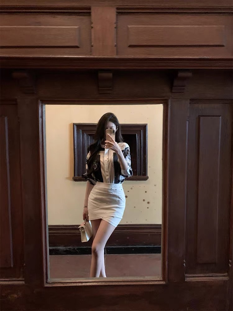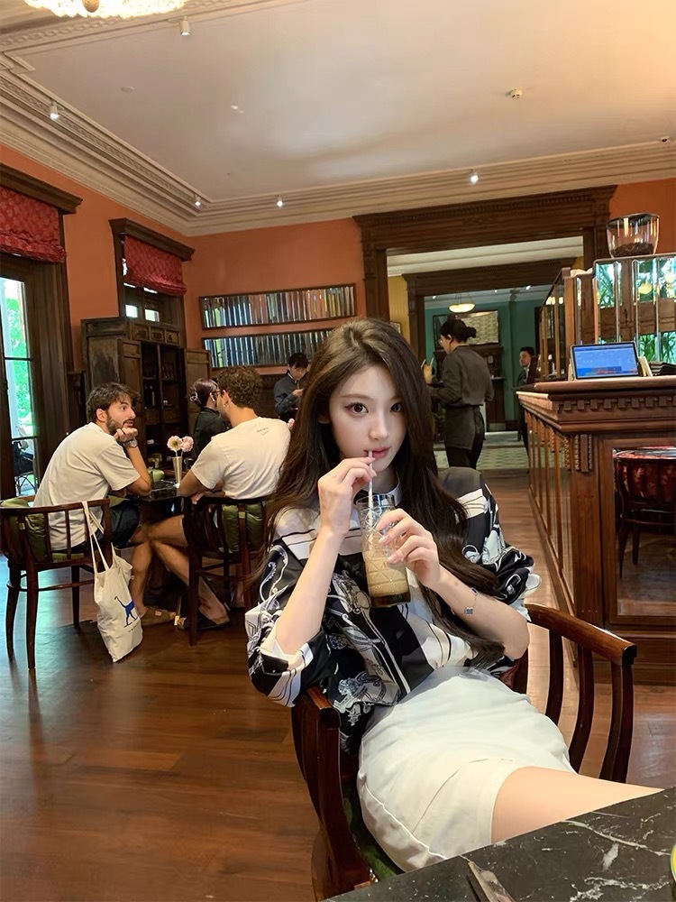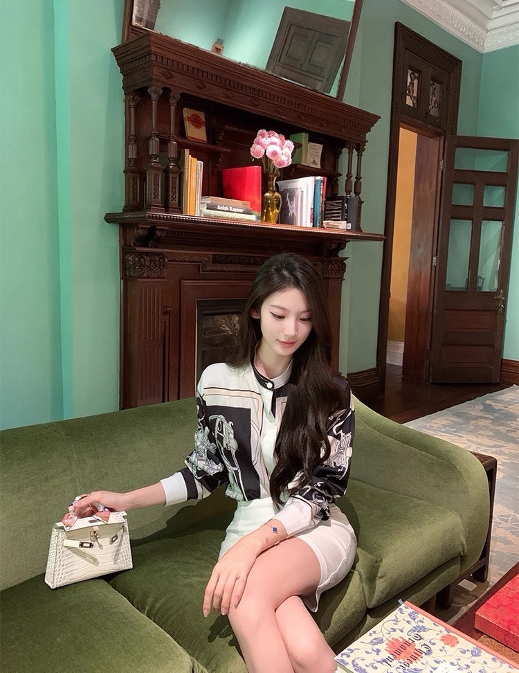 H牌印花 綢緞立領襯衫