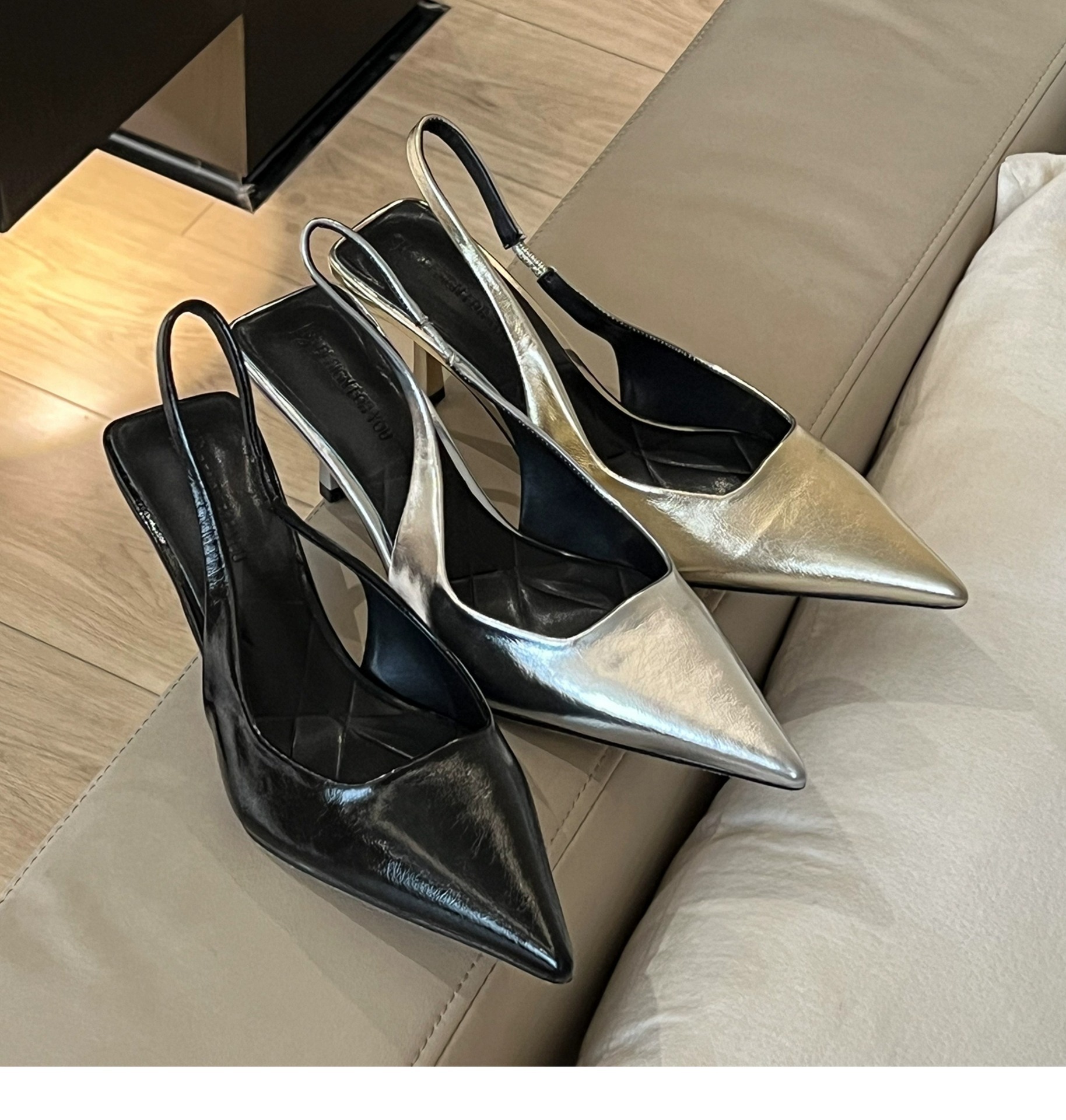 高級感拉滿 金屬感尖頭裸跟跟鞋(35-40)(金/銀/黑)