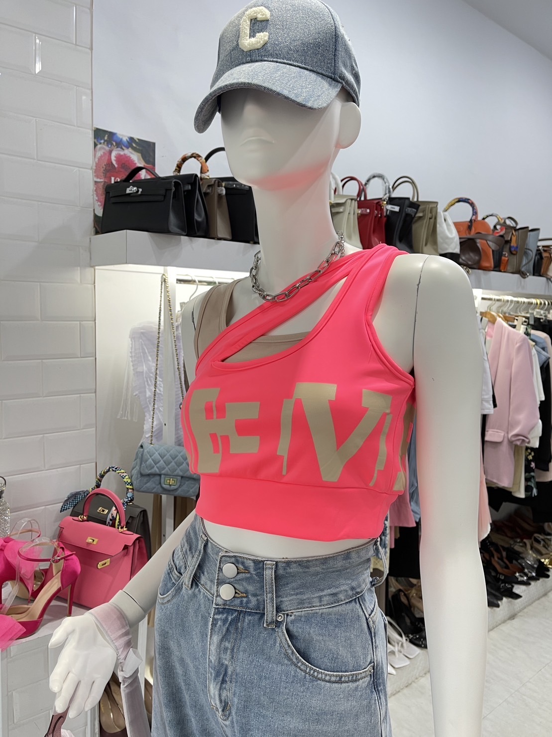 鮮艷搶眼的桃紅色短版上衣,採用舒適的棉質面料,搭配大膽醒目的英字印花設計,為整體造型增添年輕活力感。款式設計簡單大方,剪裁修身,適合搭配多種下著。這件短版上衣是夏日或休閒場合的不二之選,能為妳的造型增添趣味與個性。