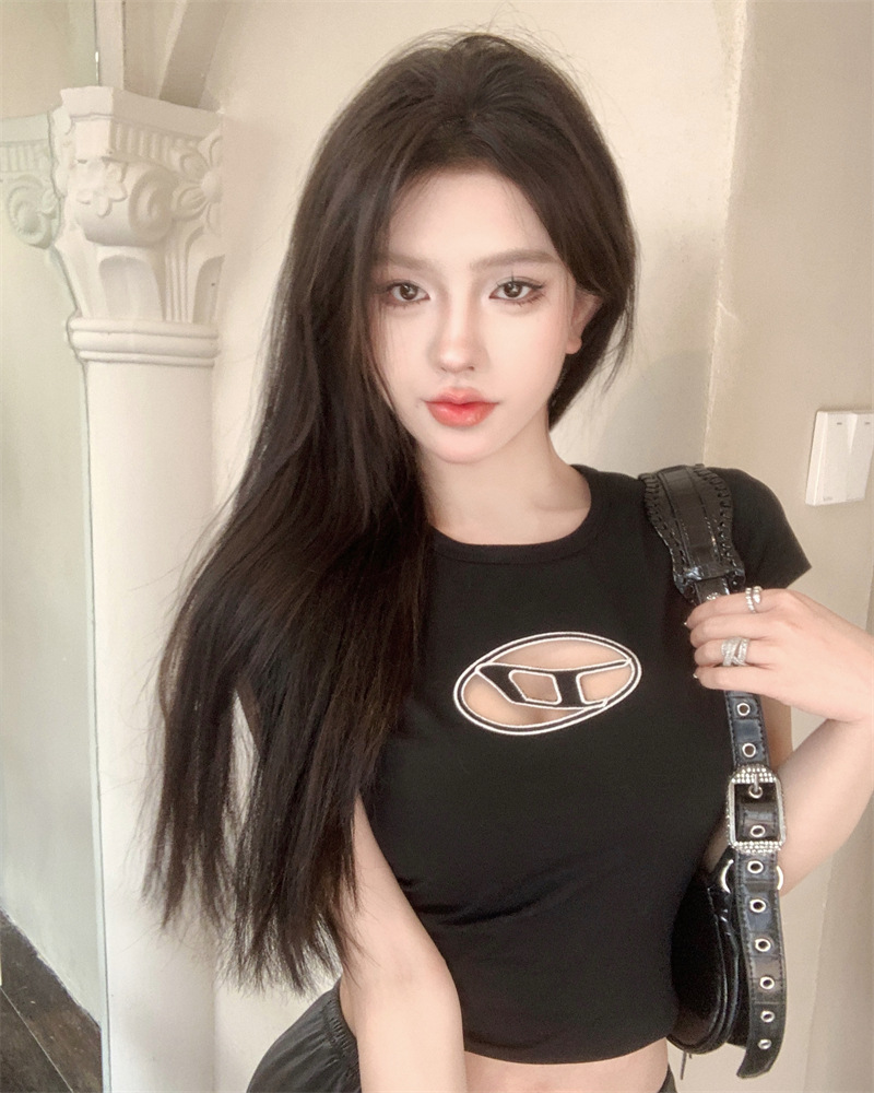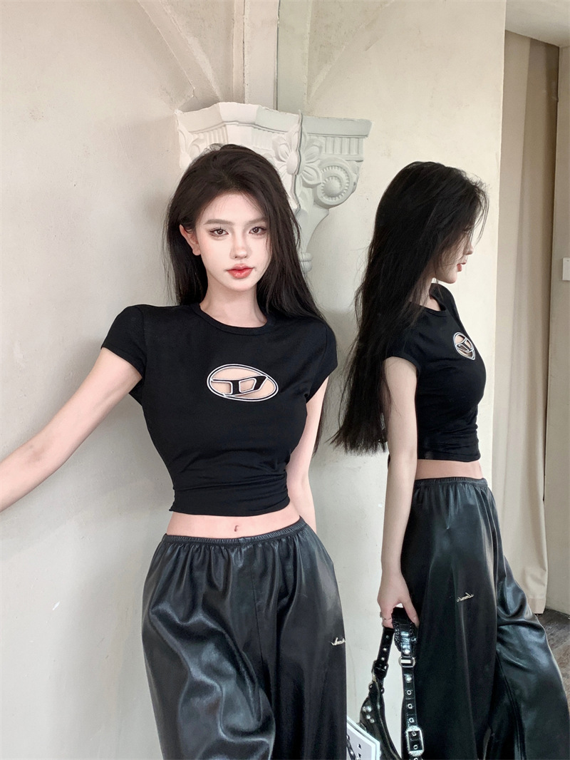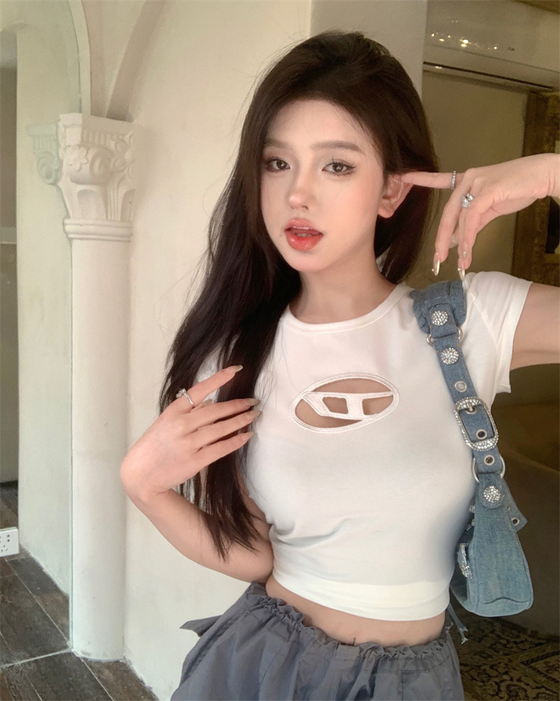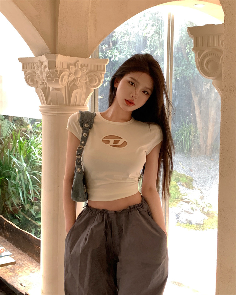 立體刺繡 簍空棉質短T(粉/白/黑)