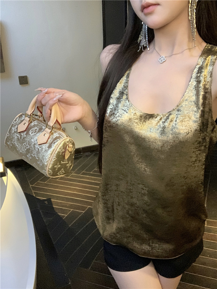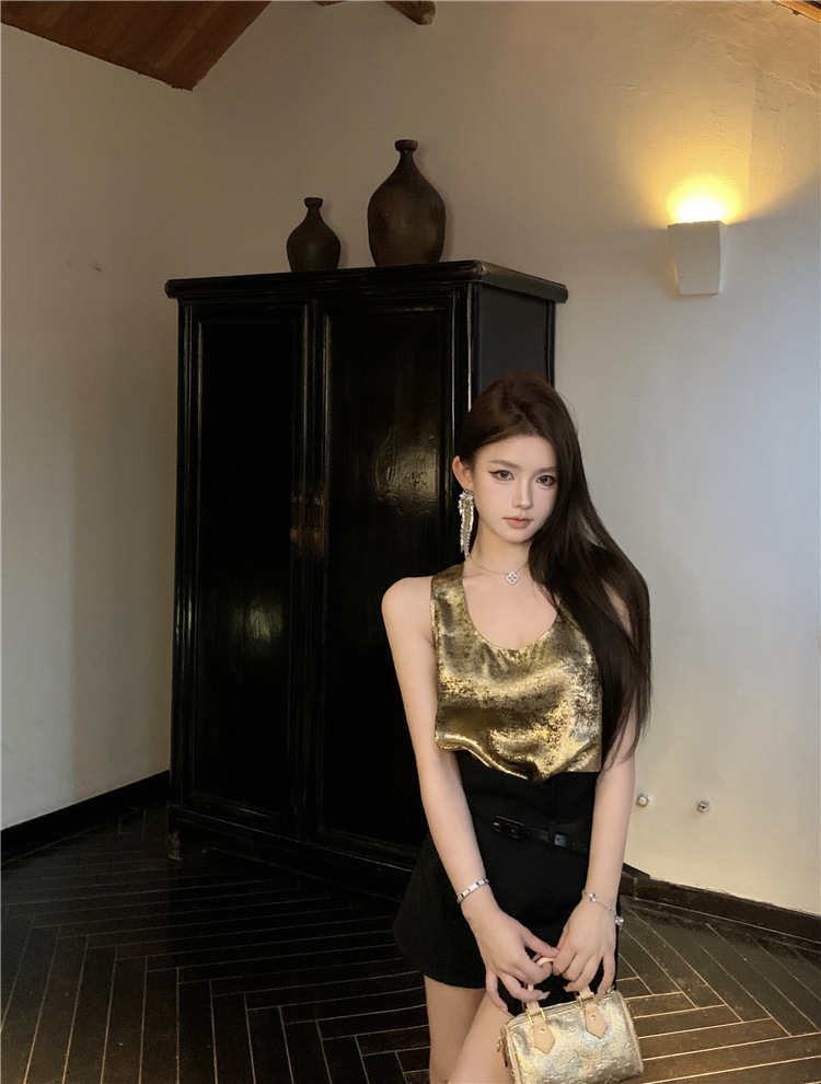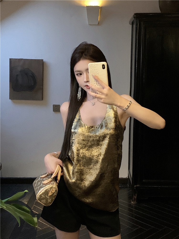 大U領綢緞上衣展現優雅內斂的氣質,收腰剪裁修飾身形。高腰設計的短褲搭配上衣營造出時尚俐落的曲線比例。絲質面料質感逼人,飽和金色配色散發高雅奢華的韻味。此套搭配在商務場合或party都能展現個人魅力。