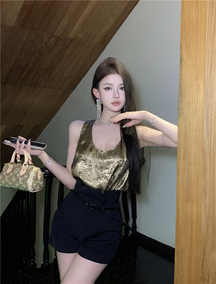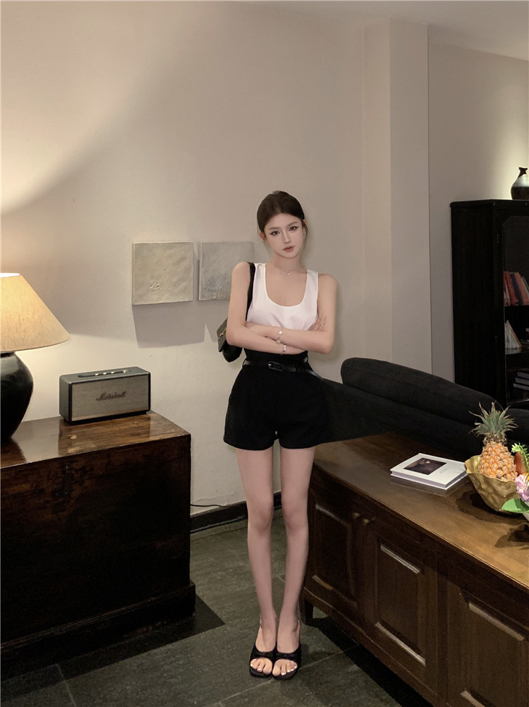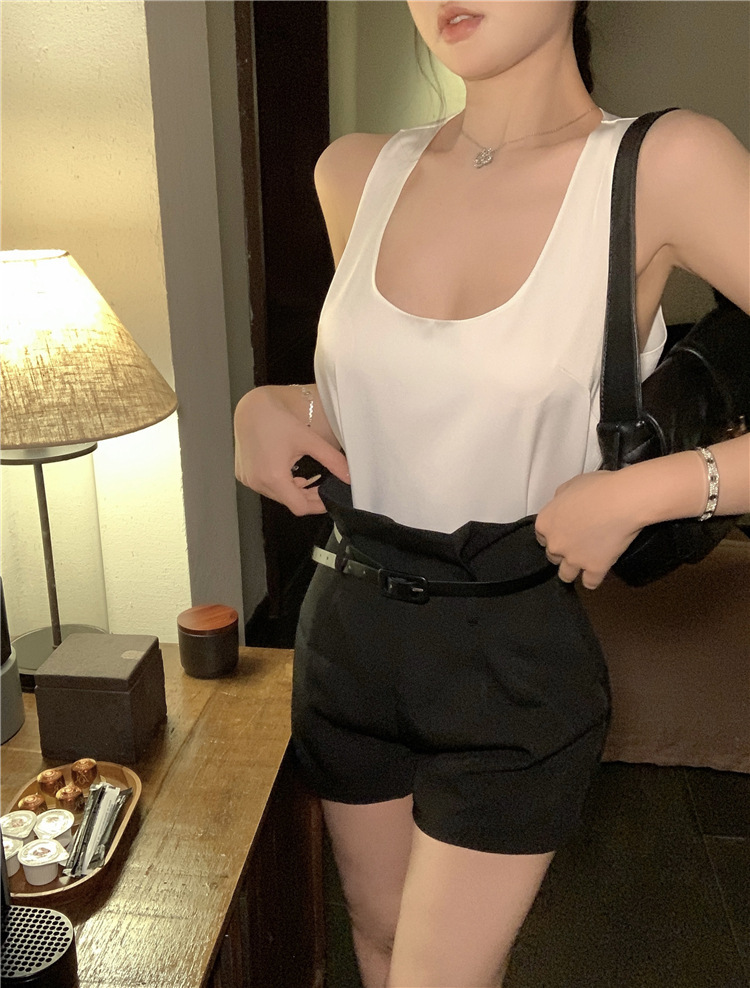 簡約大U領設計增添優雅氣質,綢緞質地呈現高端質感。短褲腰身高挺,修身剪裁展現女性曲線。此款式優雅時髦,適合各種場合佩戴。
