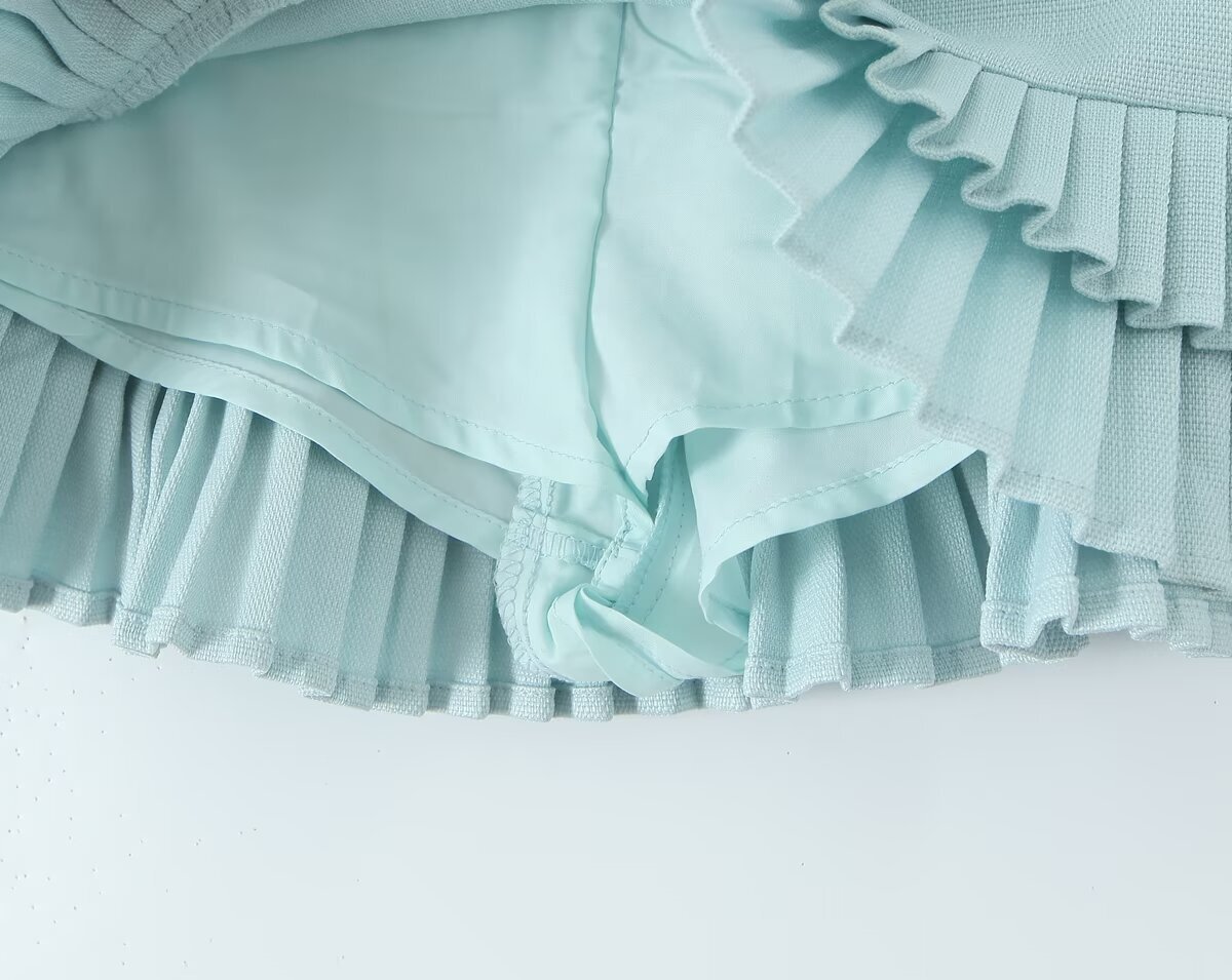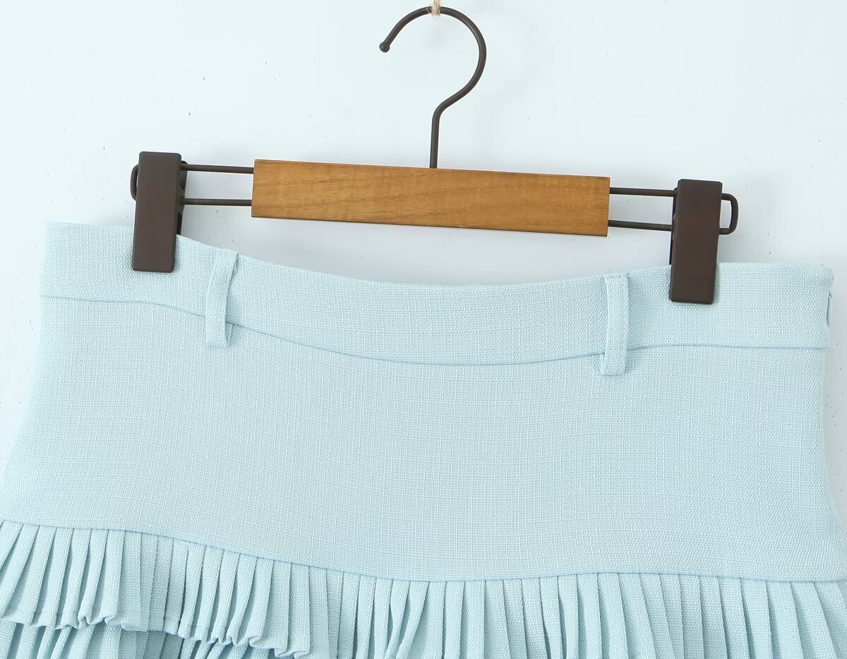 條紋polo衫+ 低腰百褶褲裙