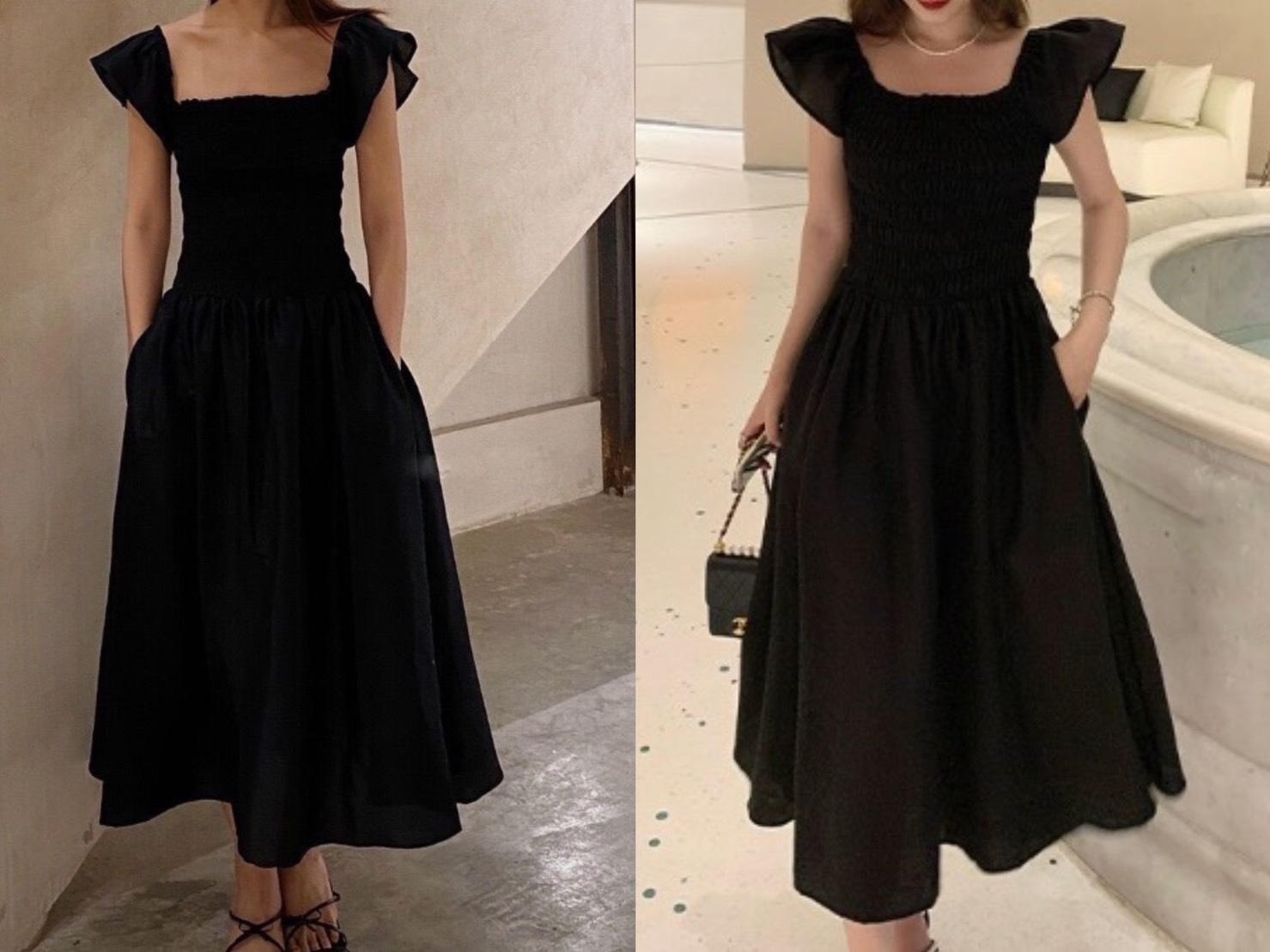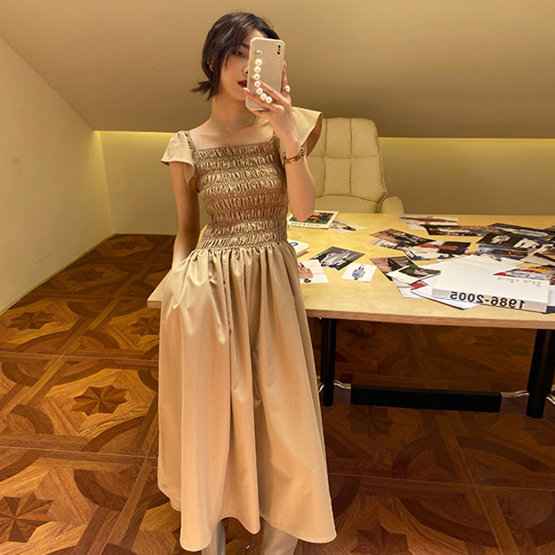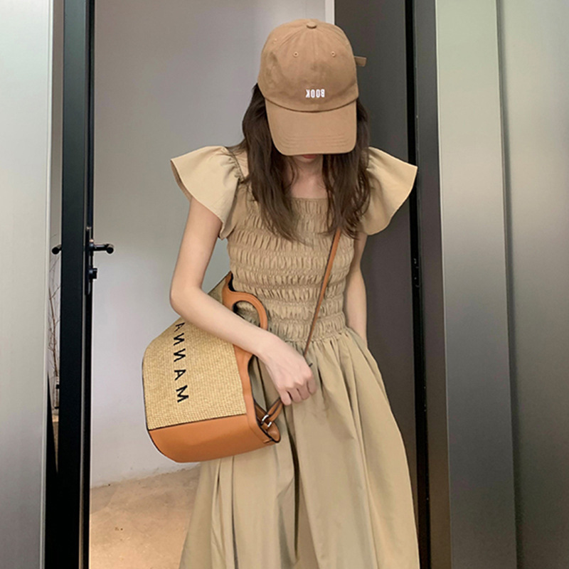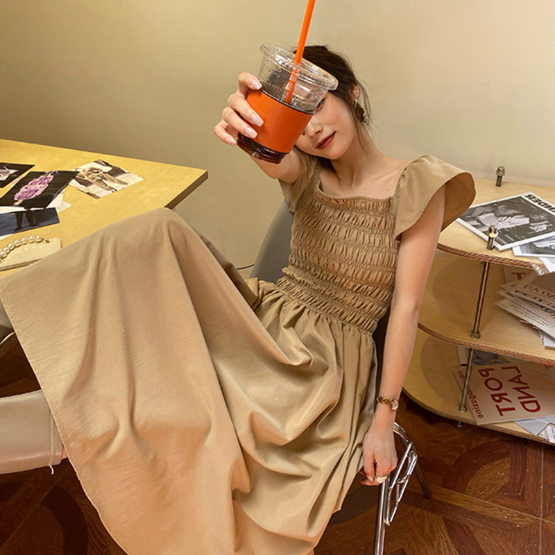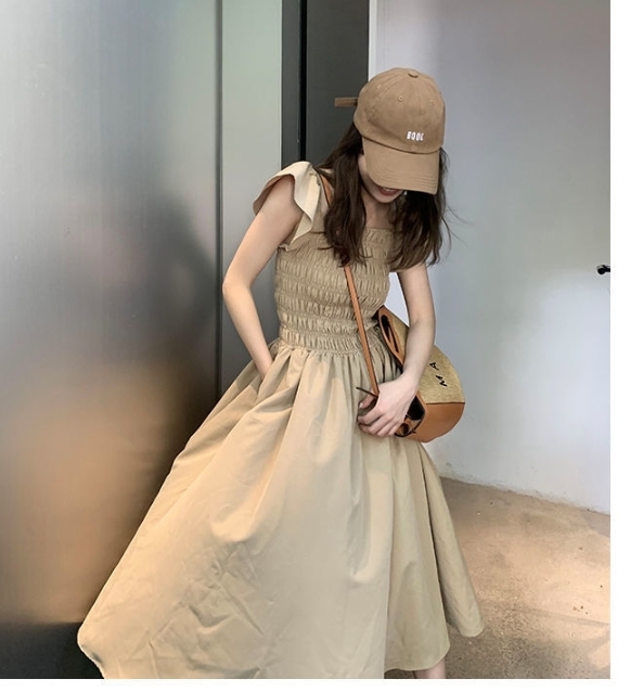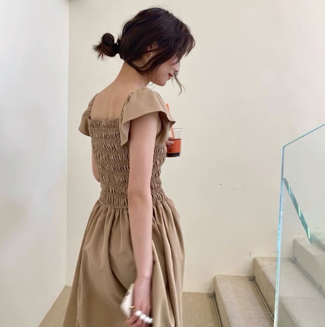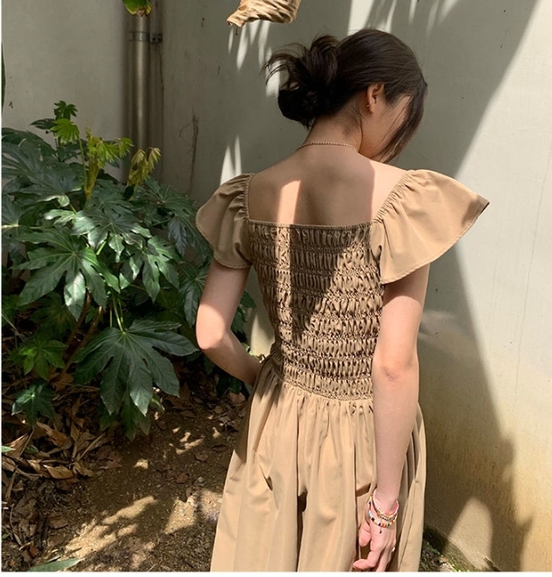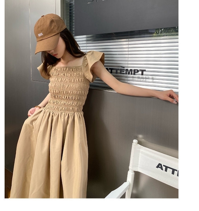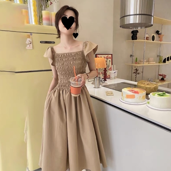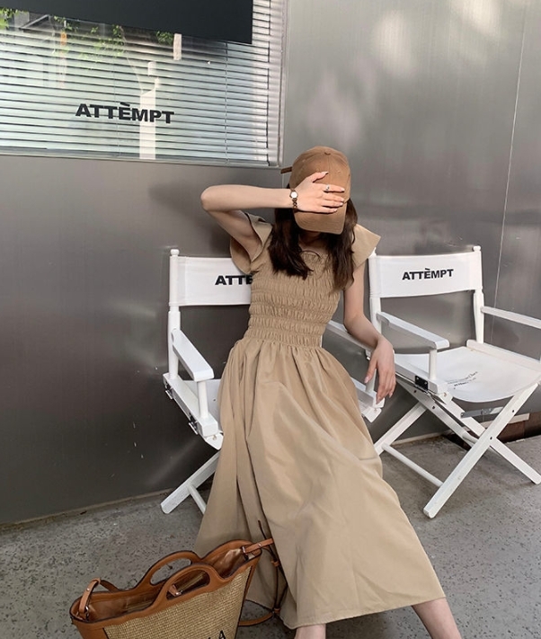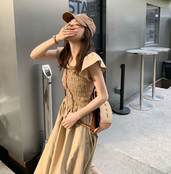 飛袖顯瘦 休閒洋裝 (卡其/黑/灰粉 )