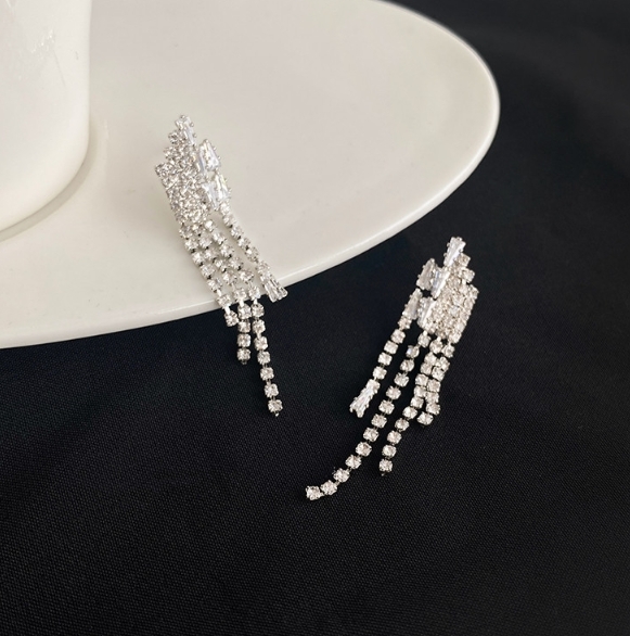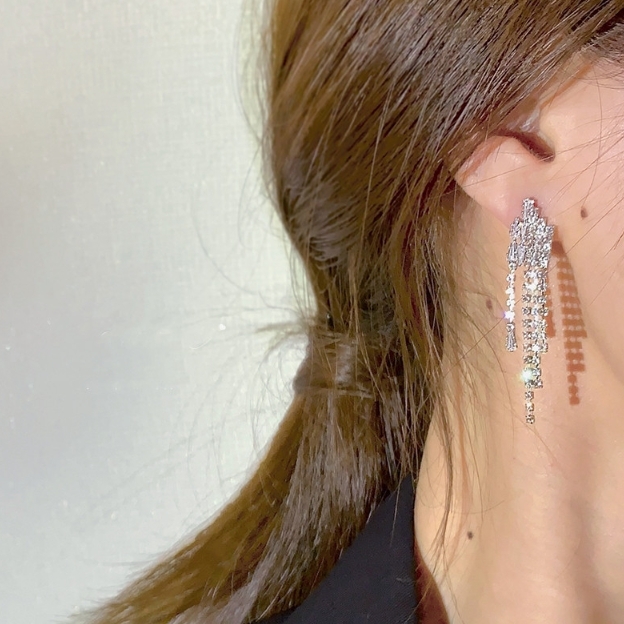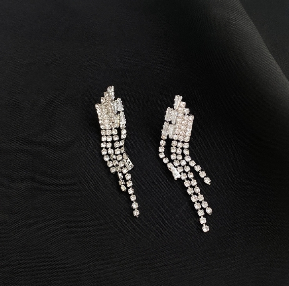 水鑽流蘇 奢華耳針(925銀針)