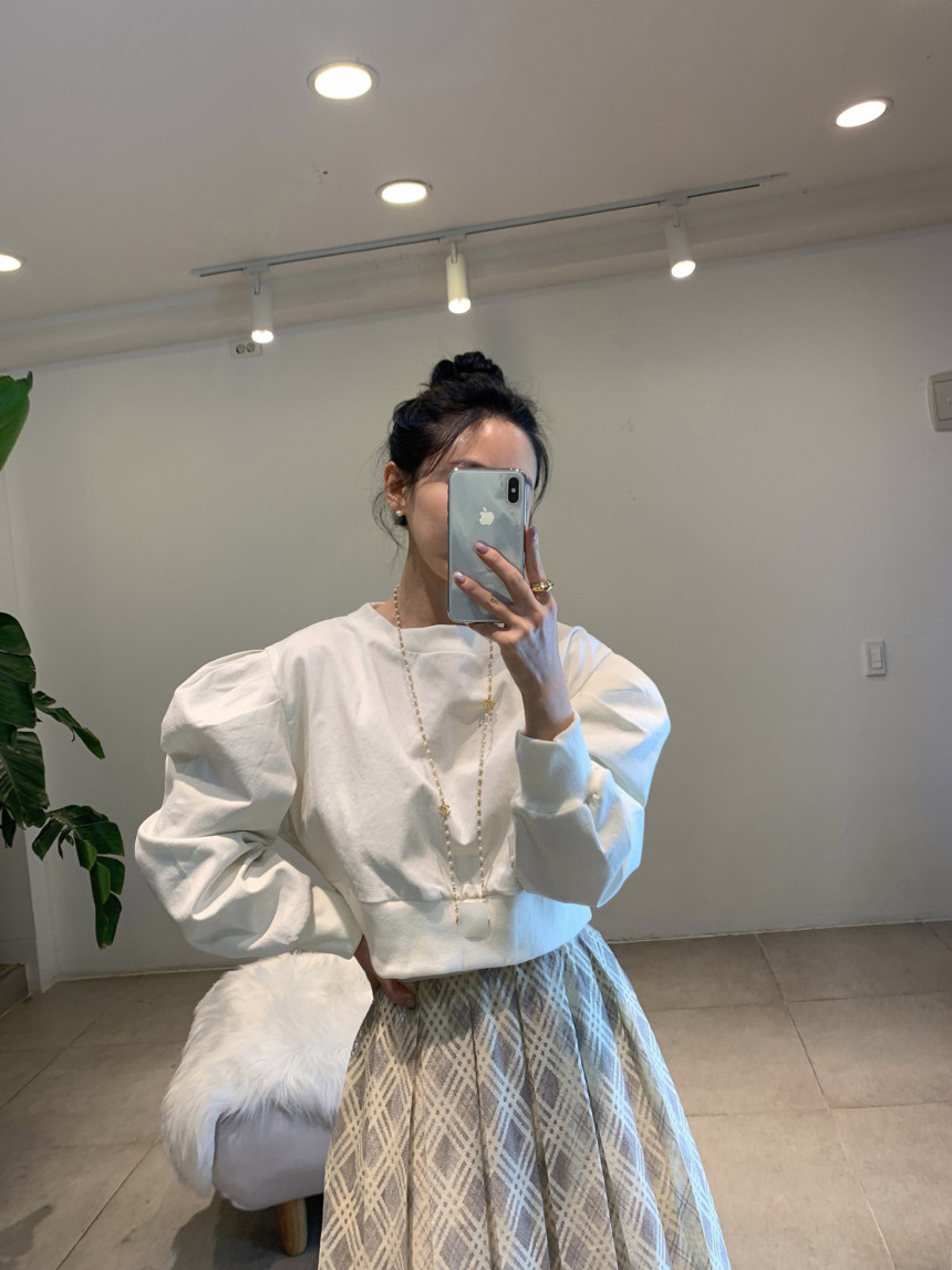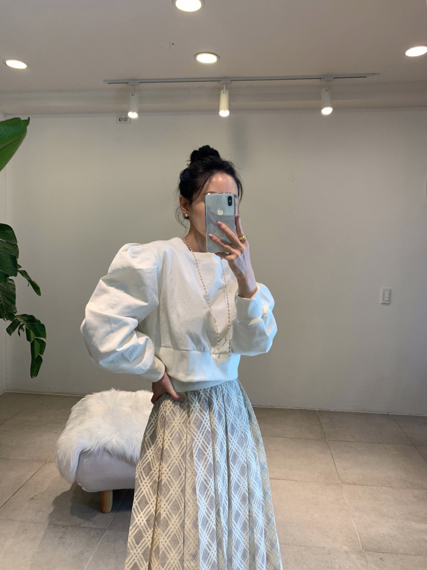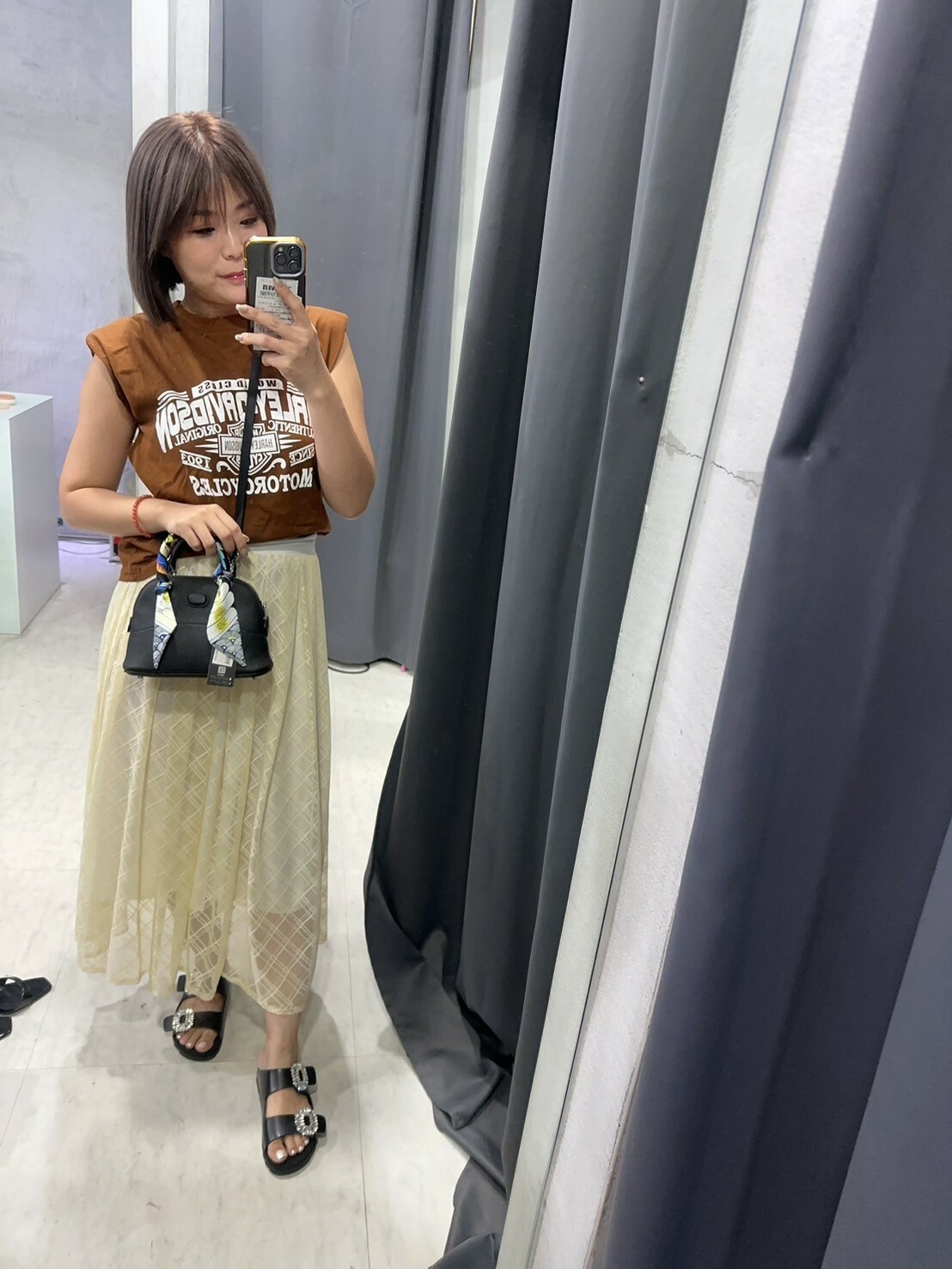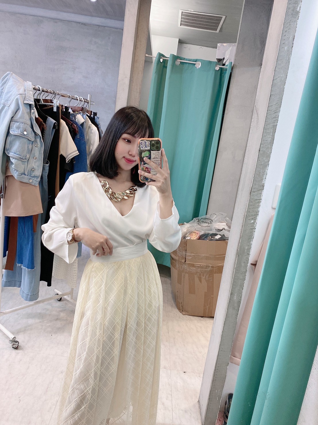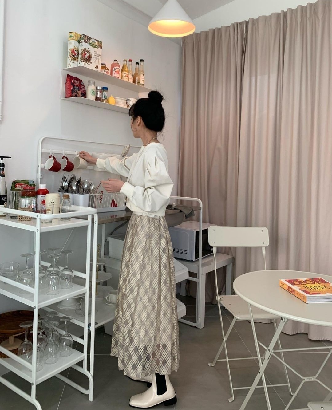 特殊面料 壓褶格紋網紗裙 (深藍/米杏)