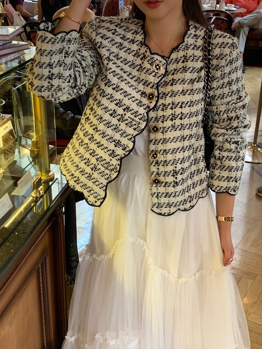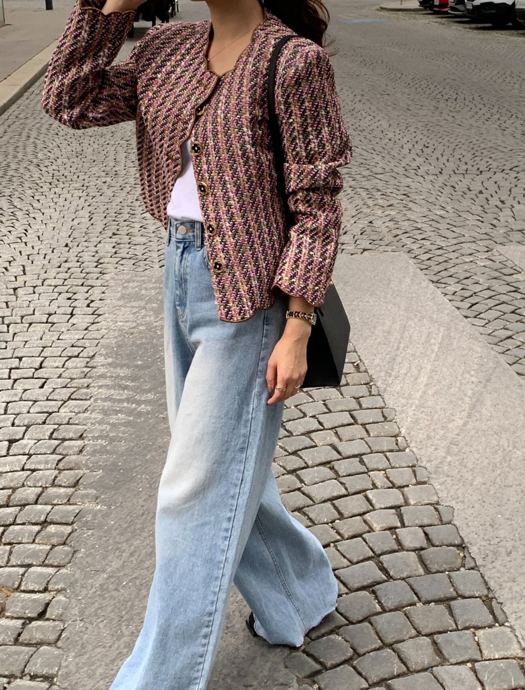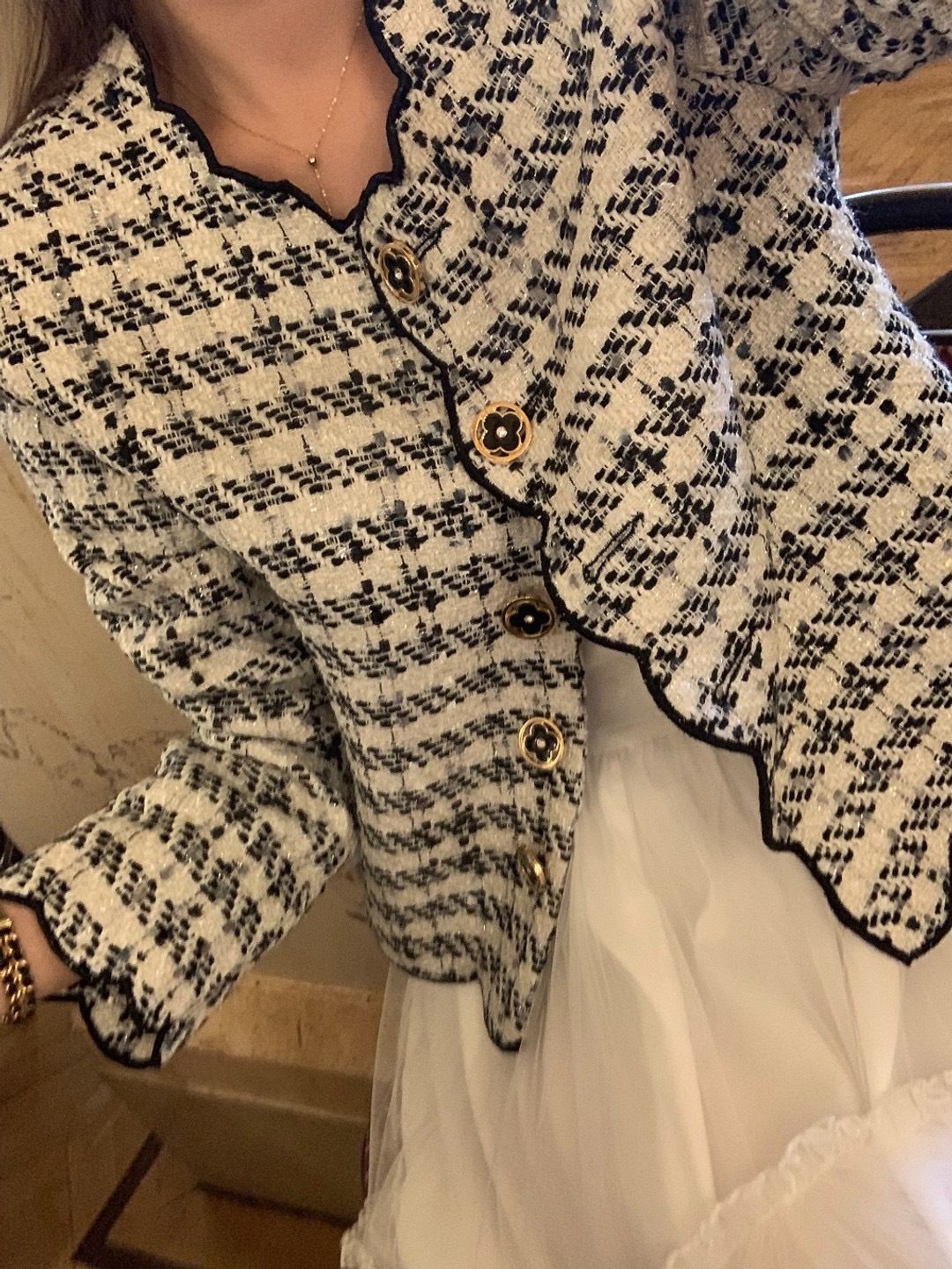 韓國東大門 波浪收邊粗花泥外套(紅/白)