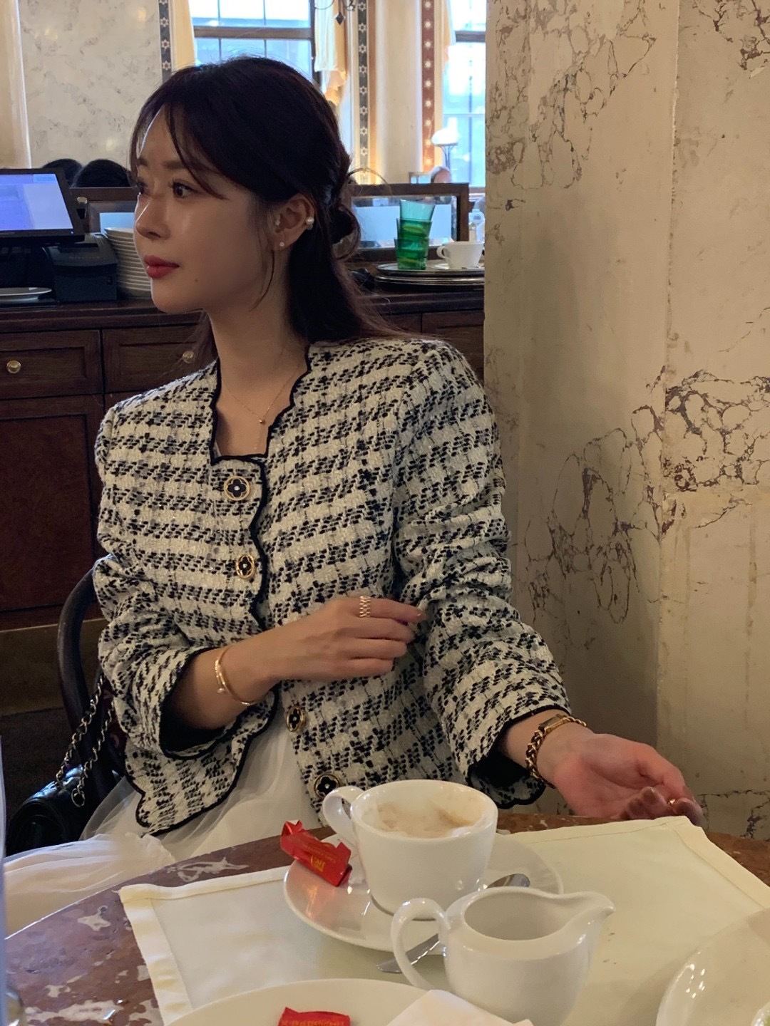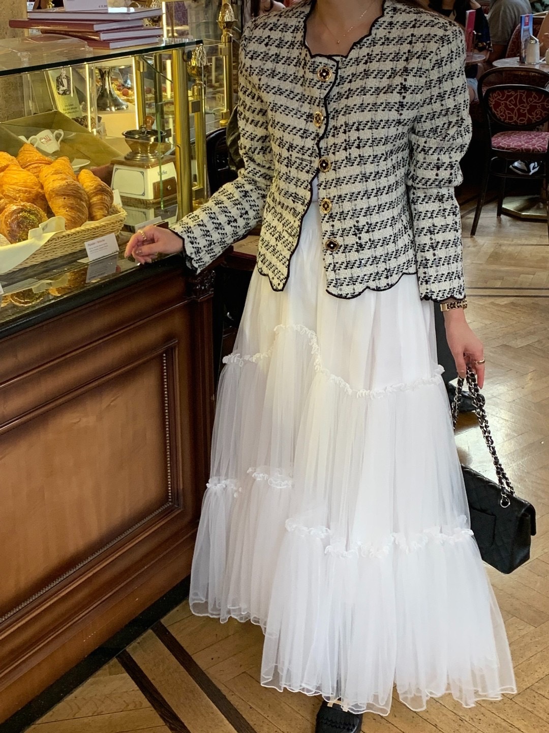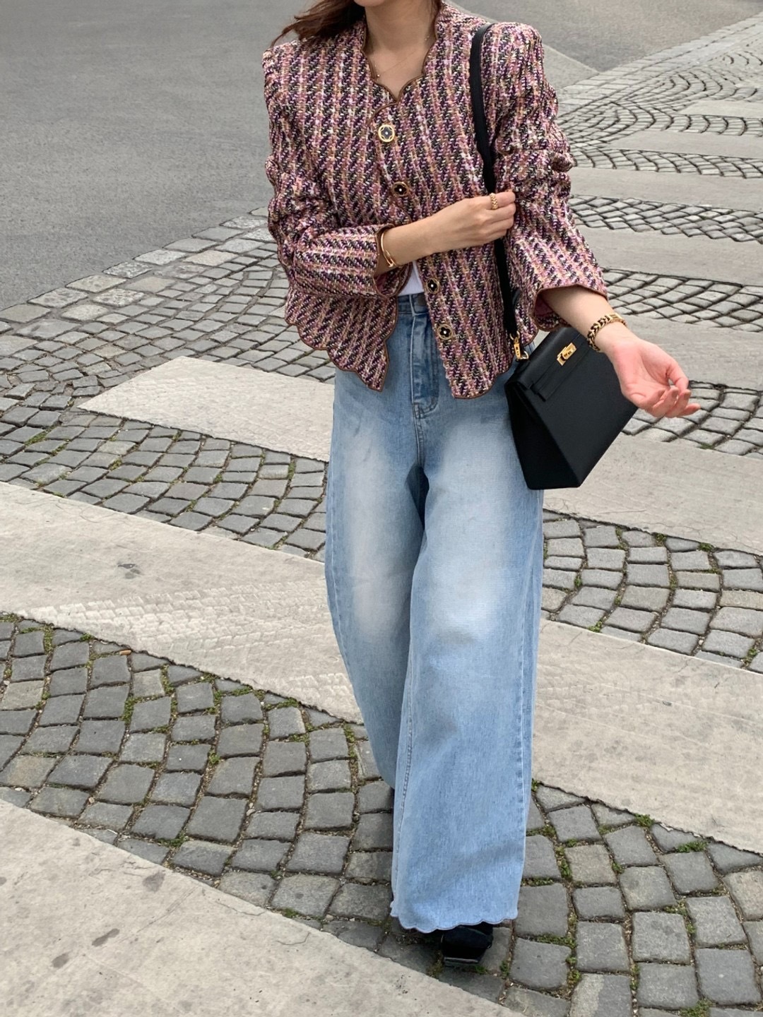 韓國東大門 波浪收邊粗花泥外套(紅/白)