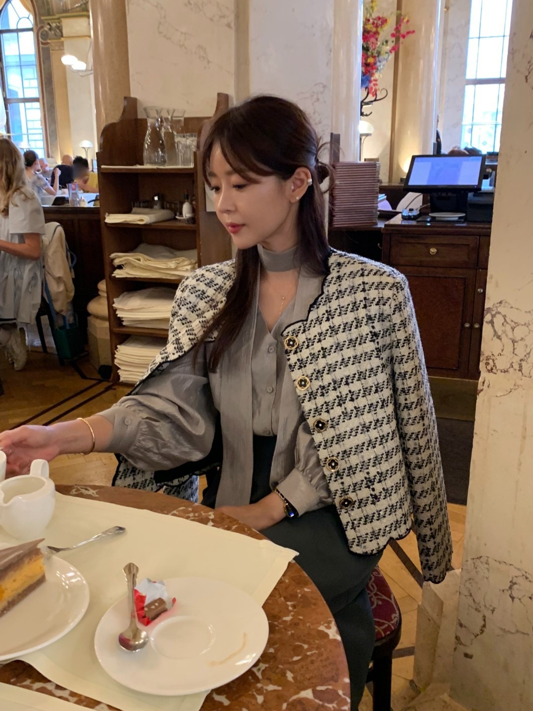 • 前片裝飾性扣環,增添小巧精緻的時髦元素。