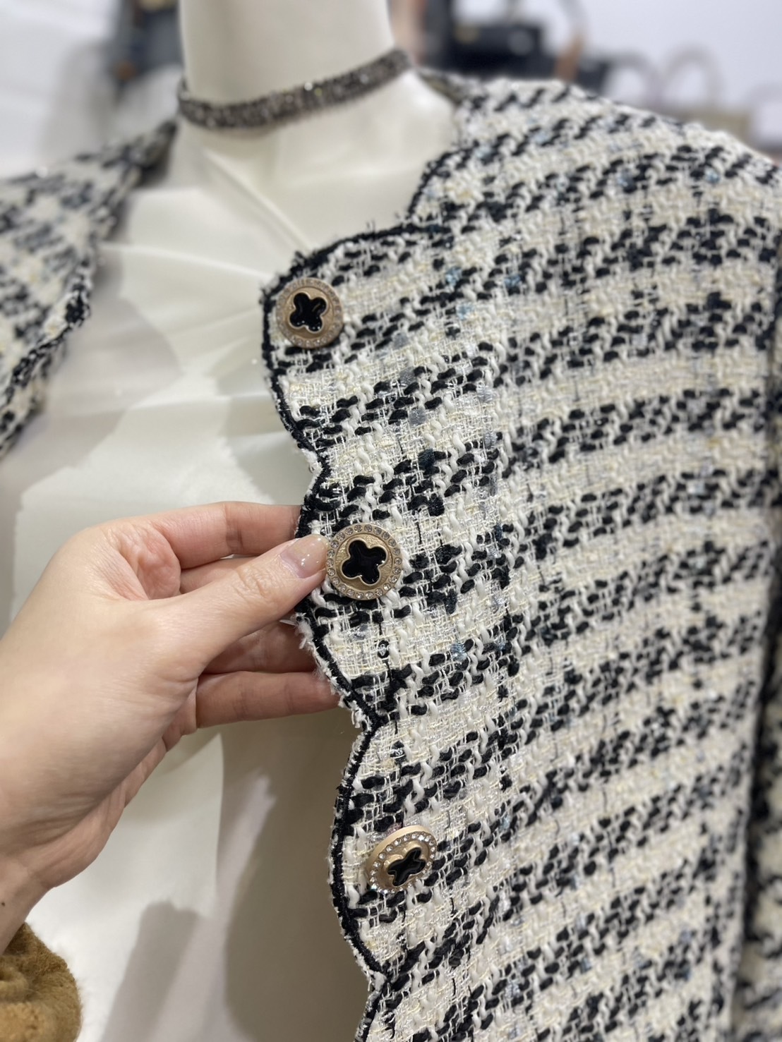 • 精選厚實的花泥材質,打造時尚又保暖的外套單品。