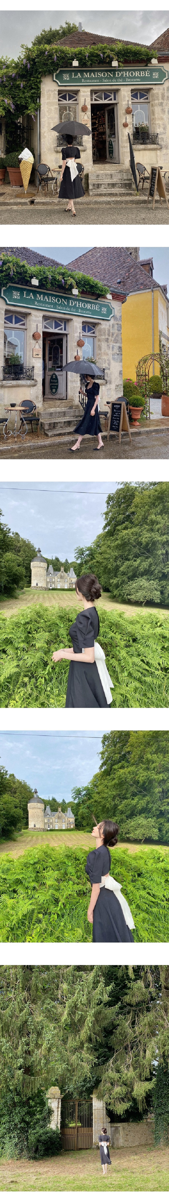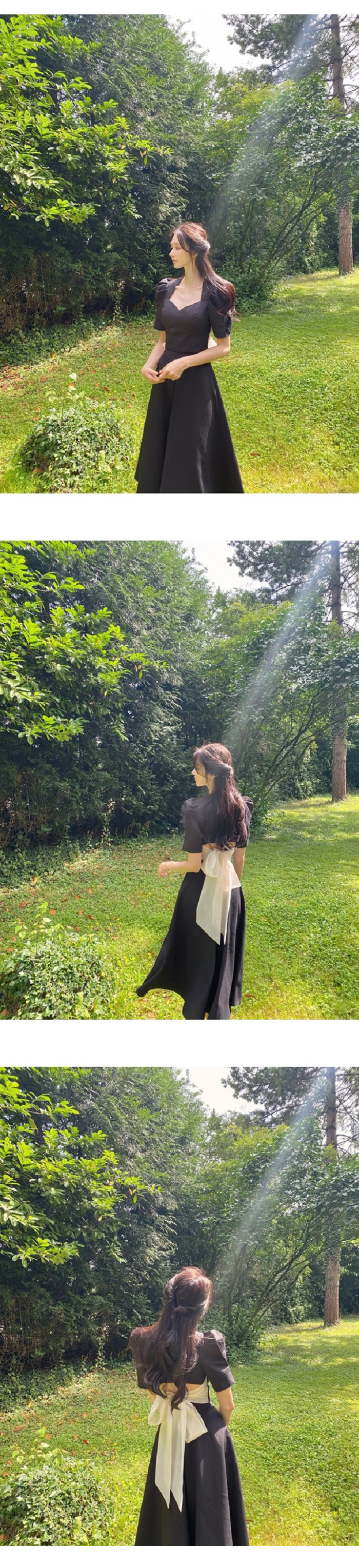 愛心領蝴蝶結上衣+高腰裙(2件組)
