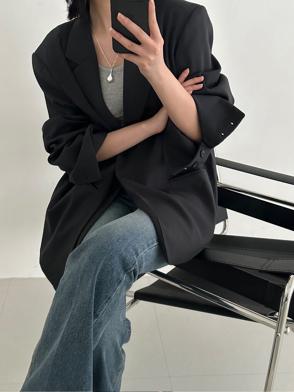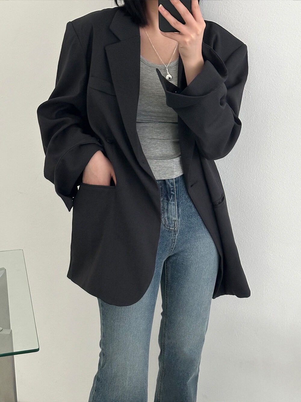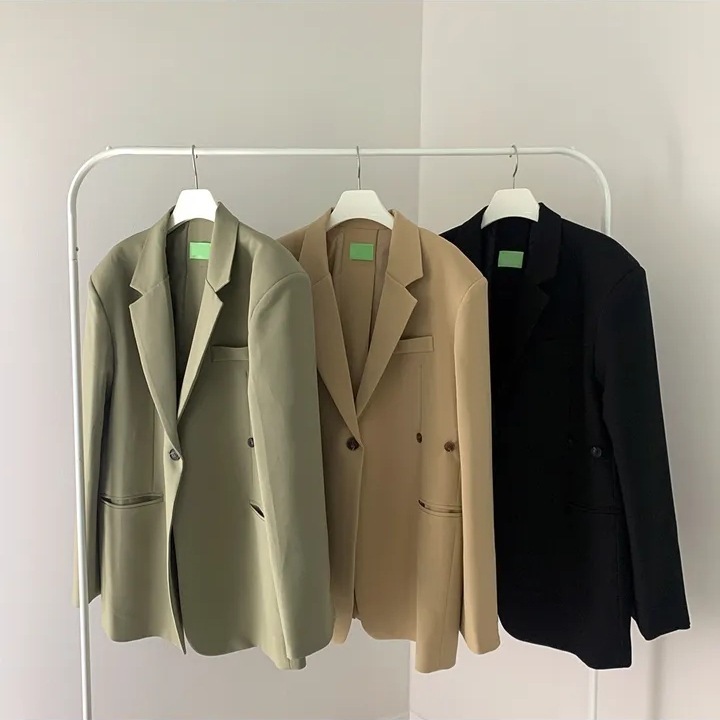 鬆弛感 寬版西裝外套(黑/卡其/綠)