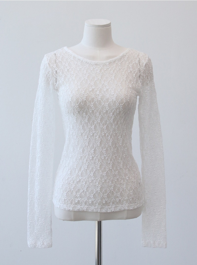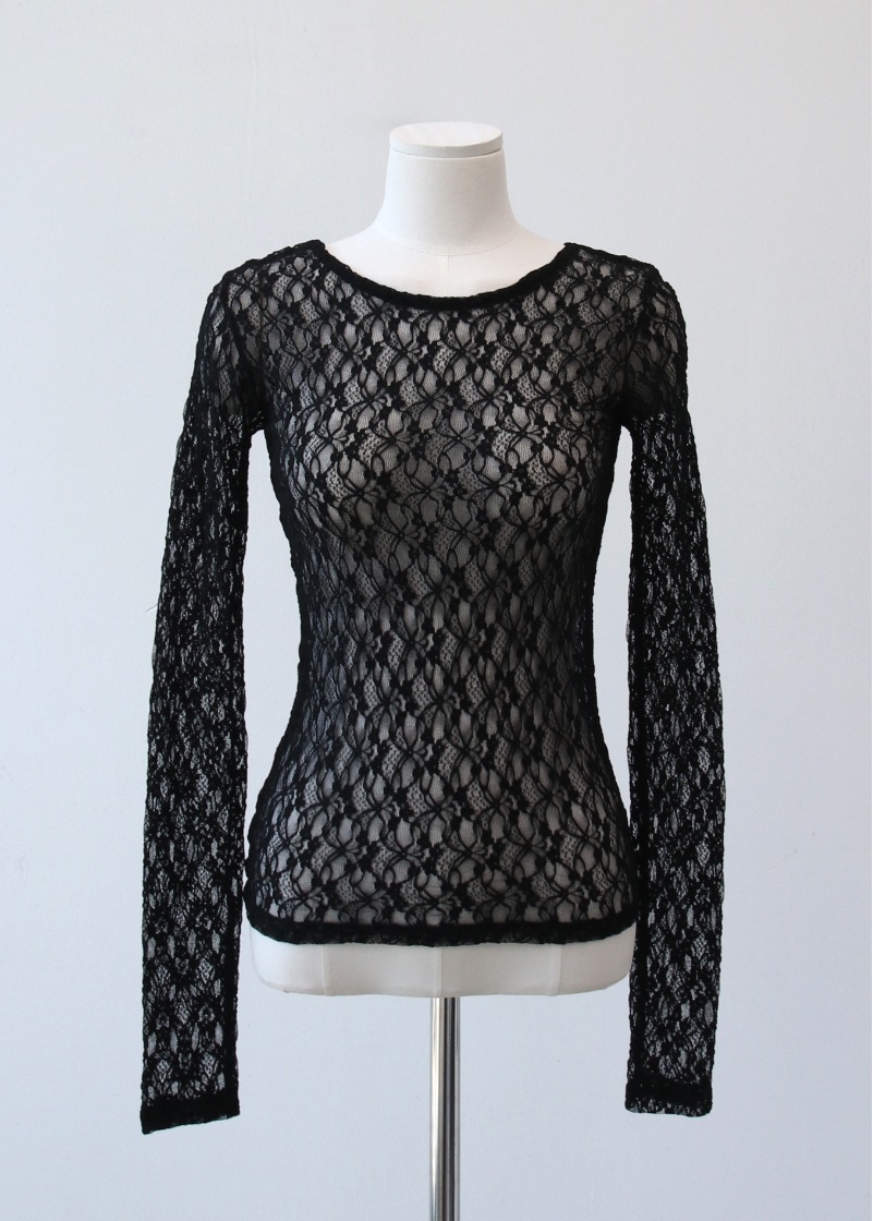 纖柔的泡泡花朵蕾絲織紋為這件上衣添加了動人的細節。飽和的黑色或白色選擇能輕易搭配出不同風格。修身剪裁讓肢體線條更加優雅。