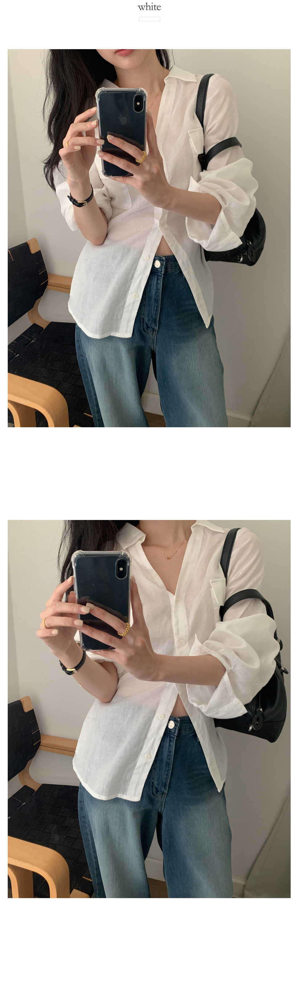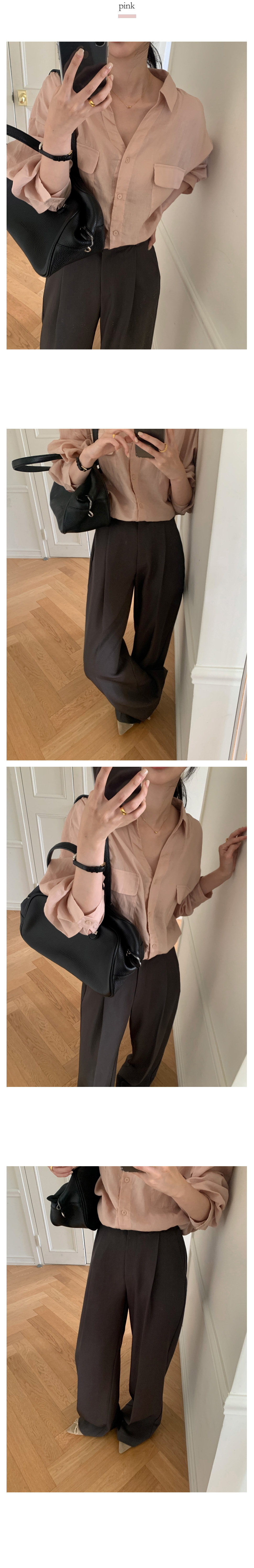 V領雙口袋 休閒襯衫(粉/白/深藍)