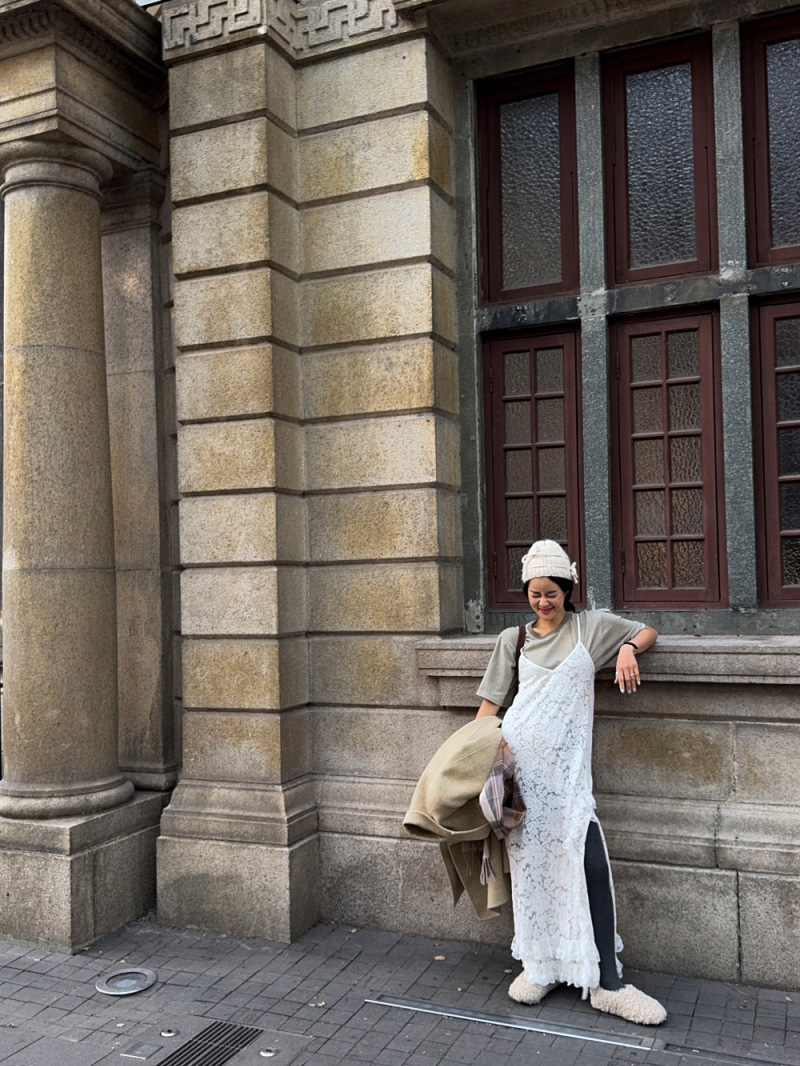 韓國正流行 側開衩蕾絲外搭洋裝(黑/白)