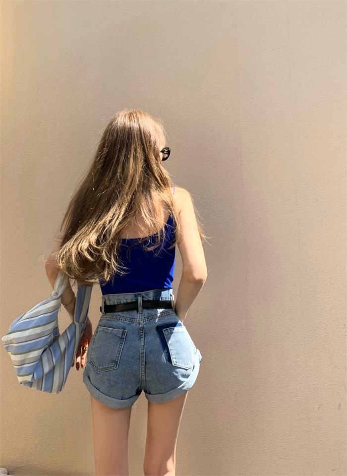 柔軟舒適的牛仔面料,帶來清涼舒適的穿著體驗。高腰剪裁,能突出纖細腰線,展現迷人曲線。
