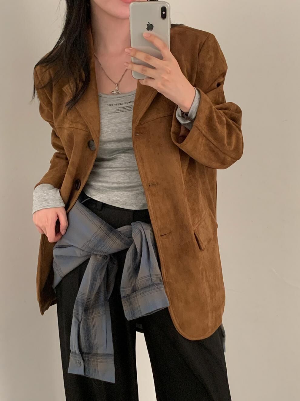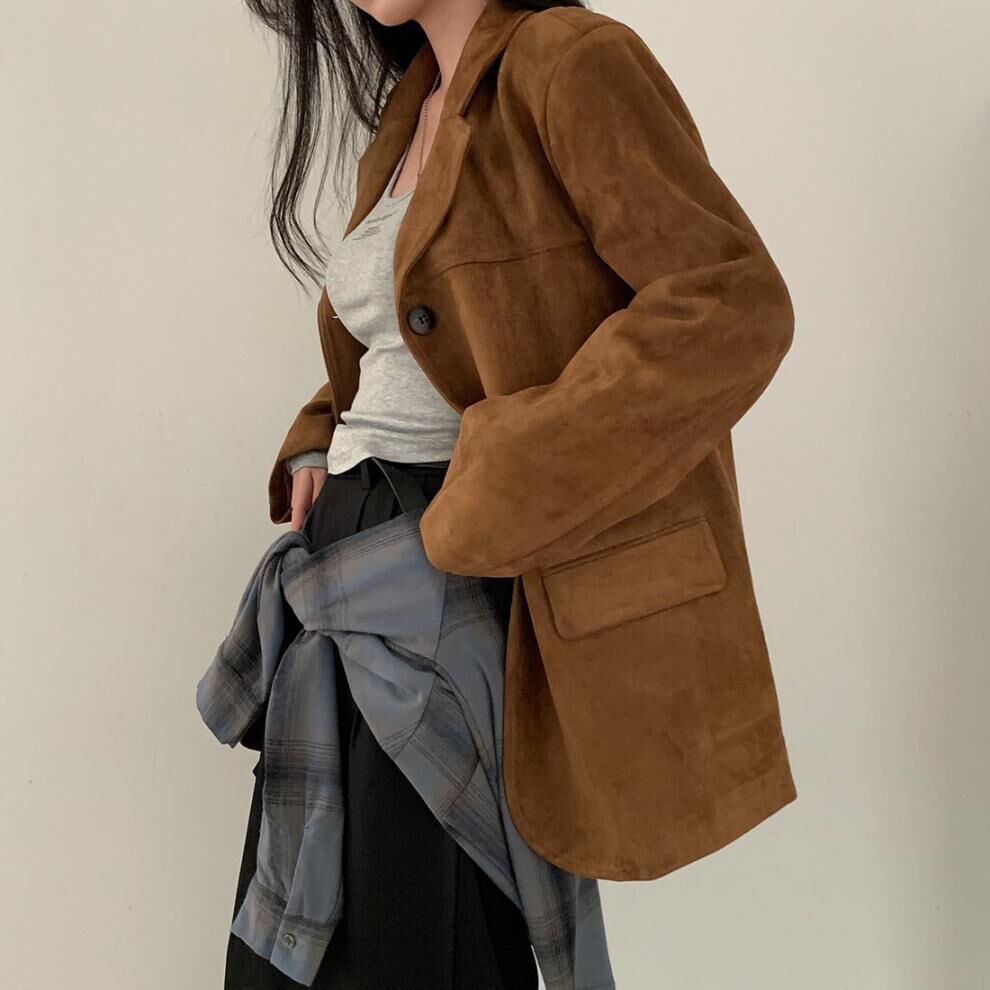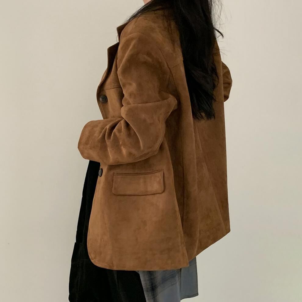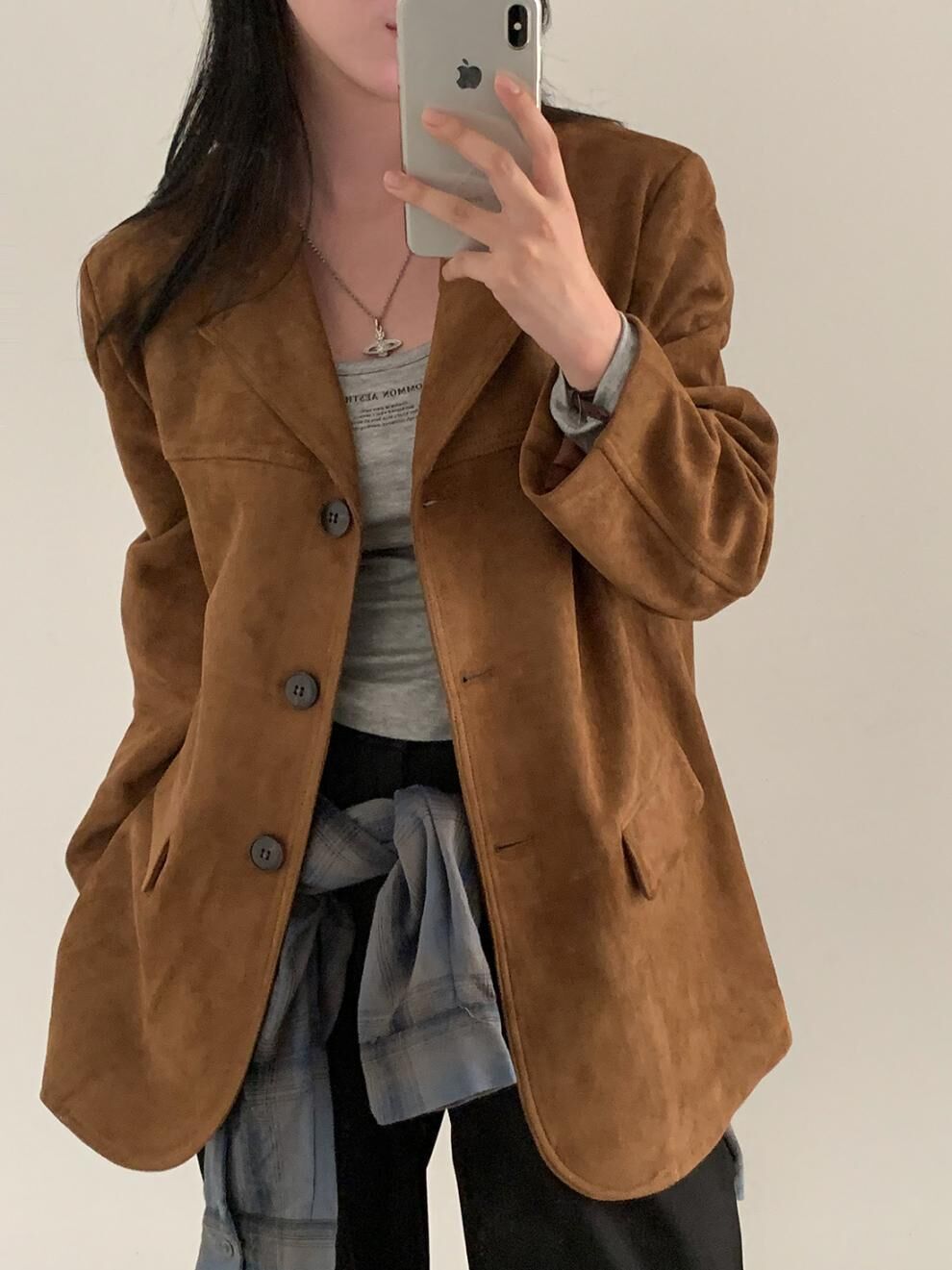 今年必備! 麂皮長版西裝外套(焦糖/卡其)