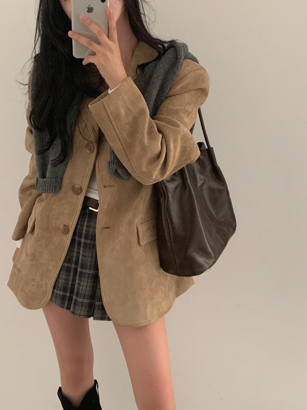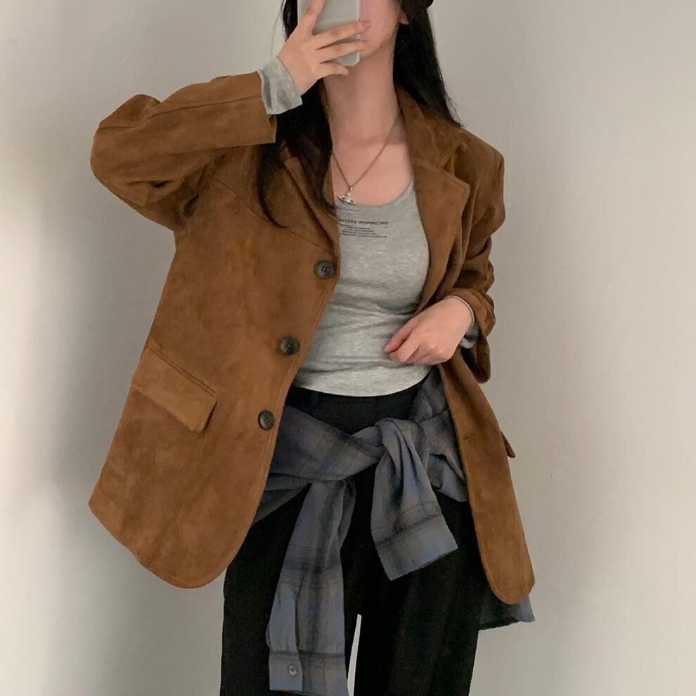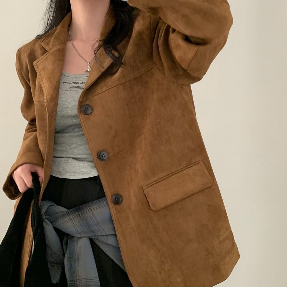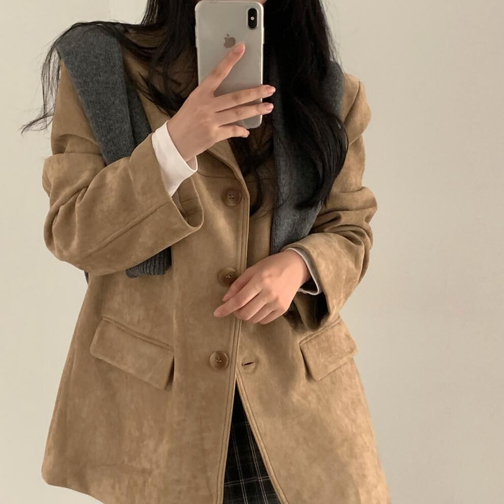 今年必備! 麂皮長版西裝外套(焦糖/卡其)