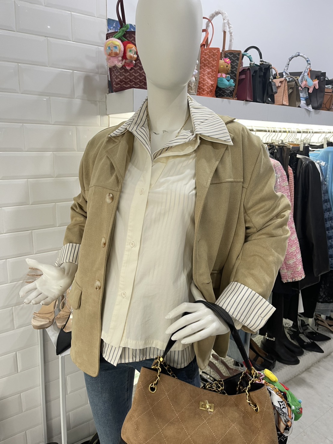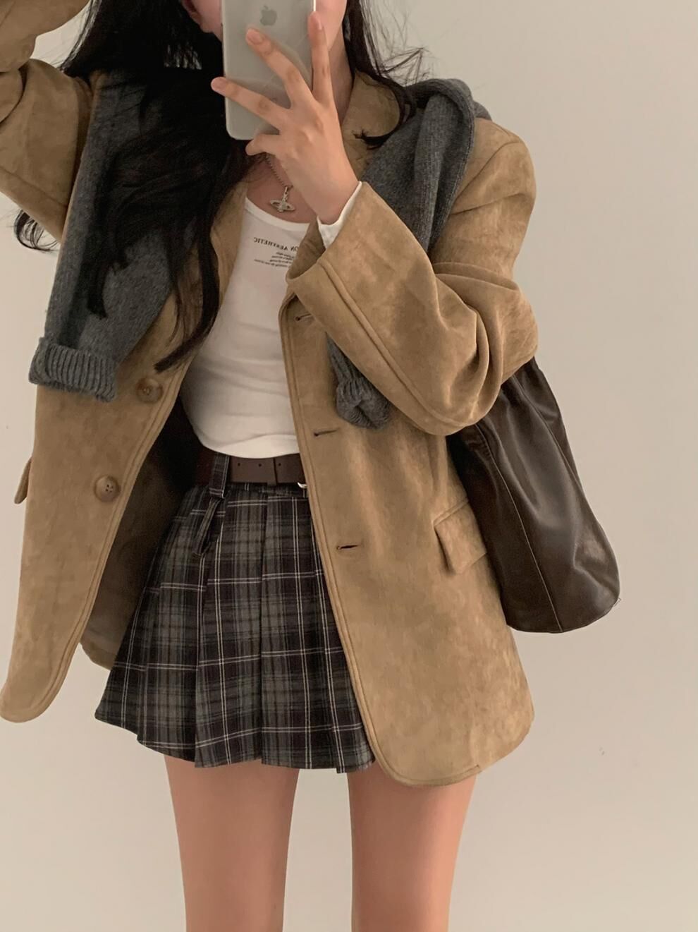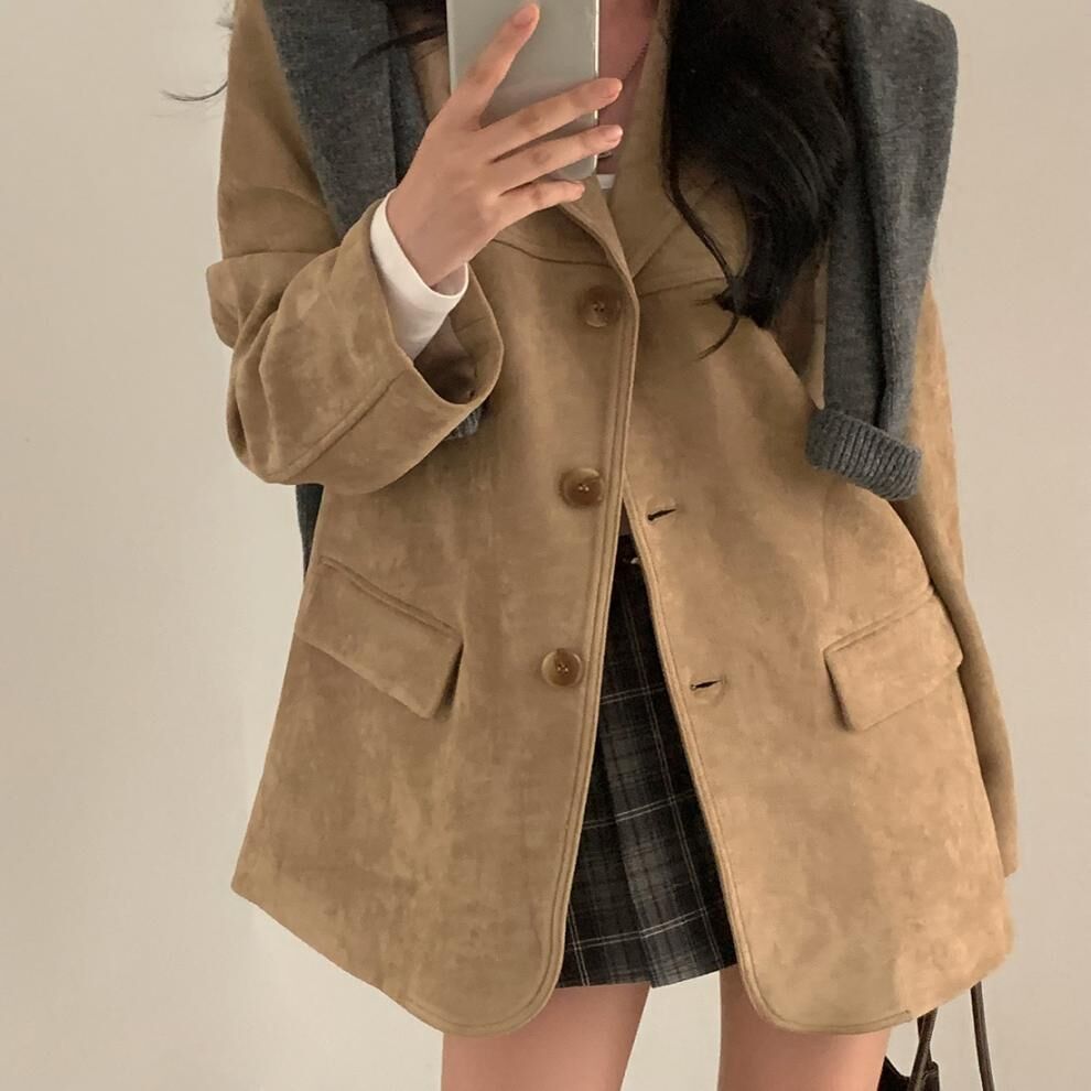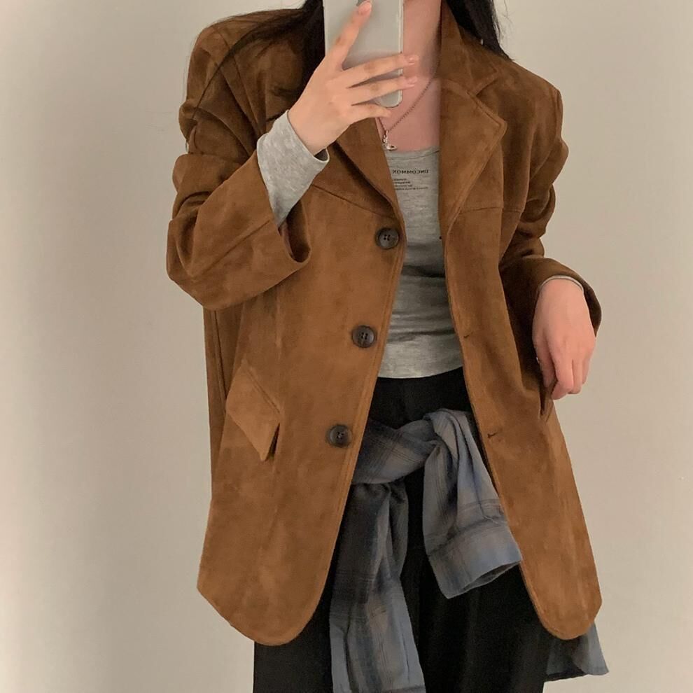 今年必備! 麂皮長版西裝外套(焦糖/卡其)