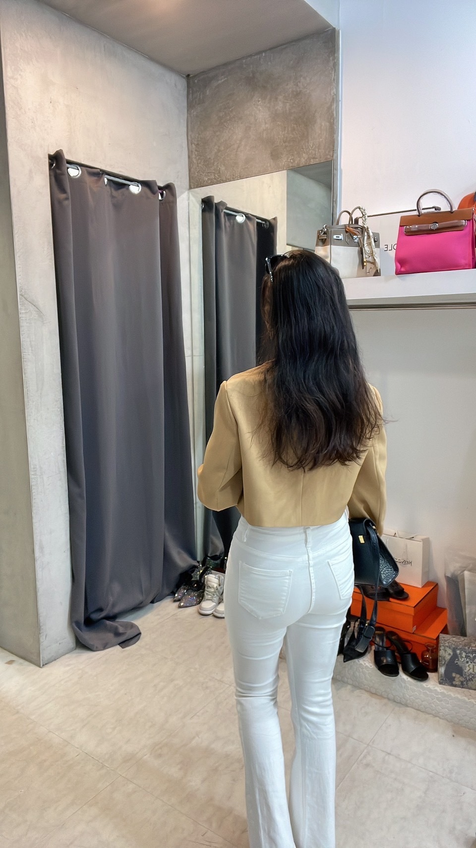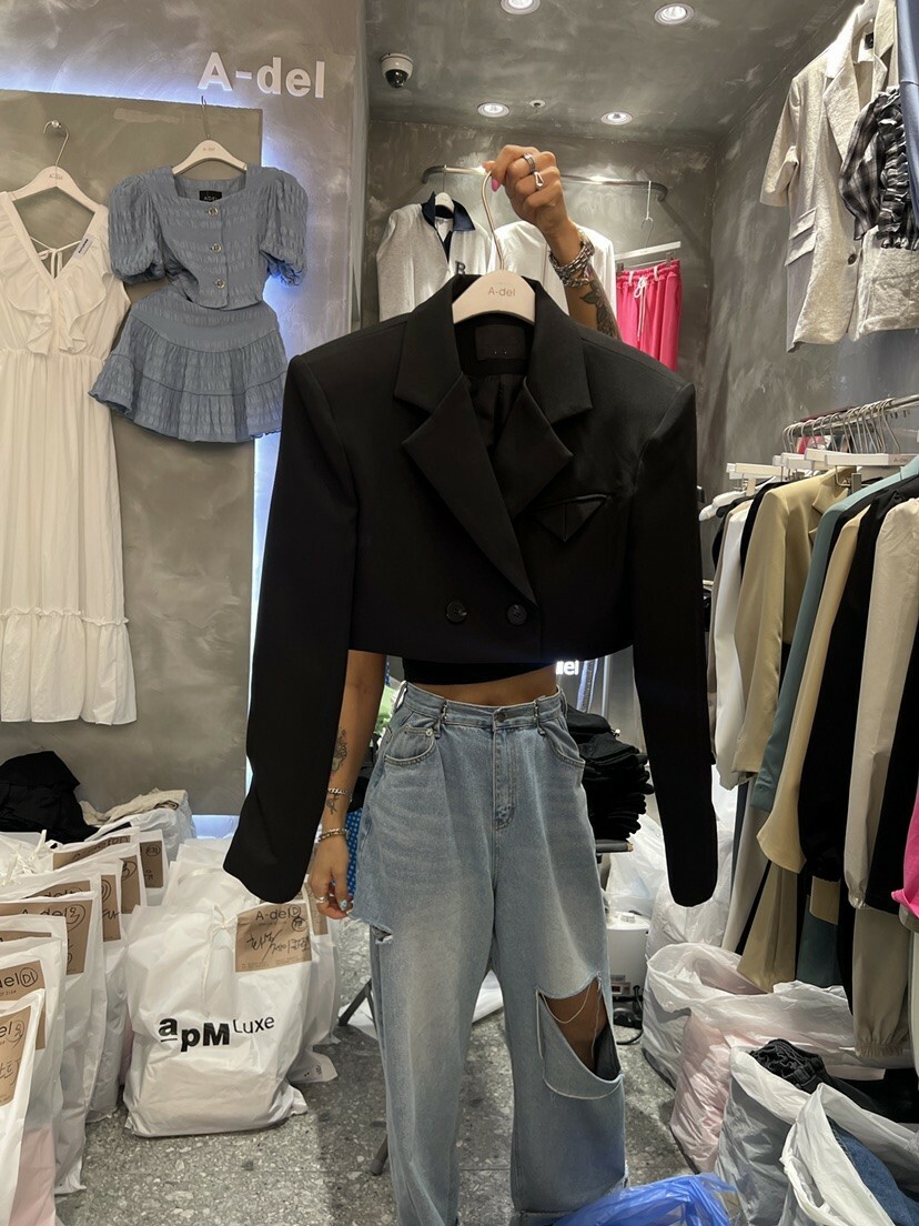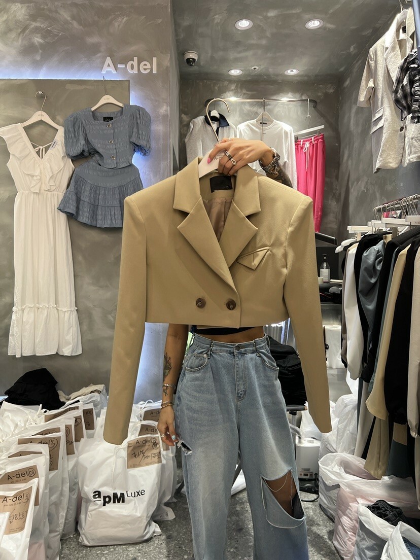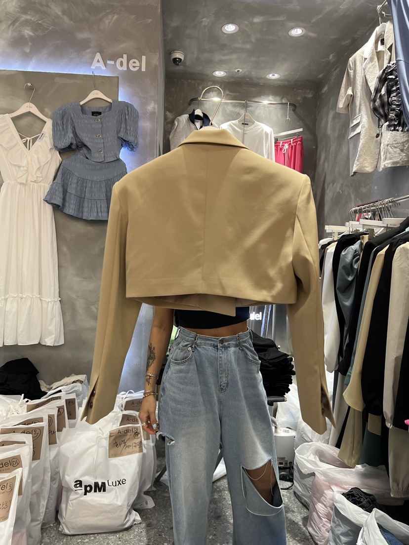 這款短版西裝外套兼具時髦與俐落的特質,適合多種場合穿搭。