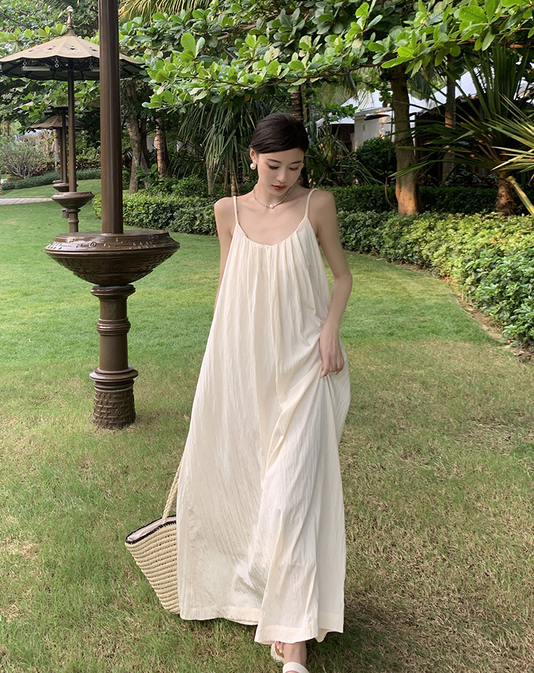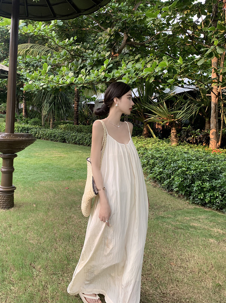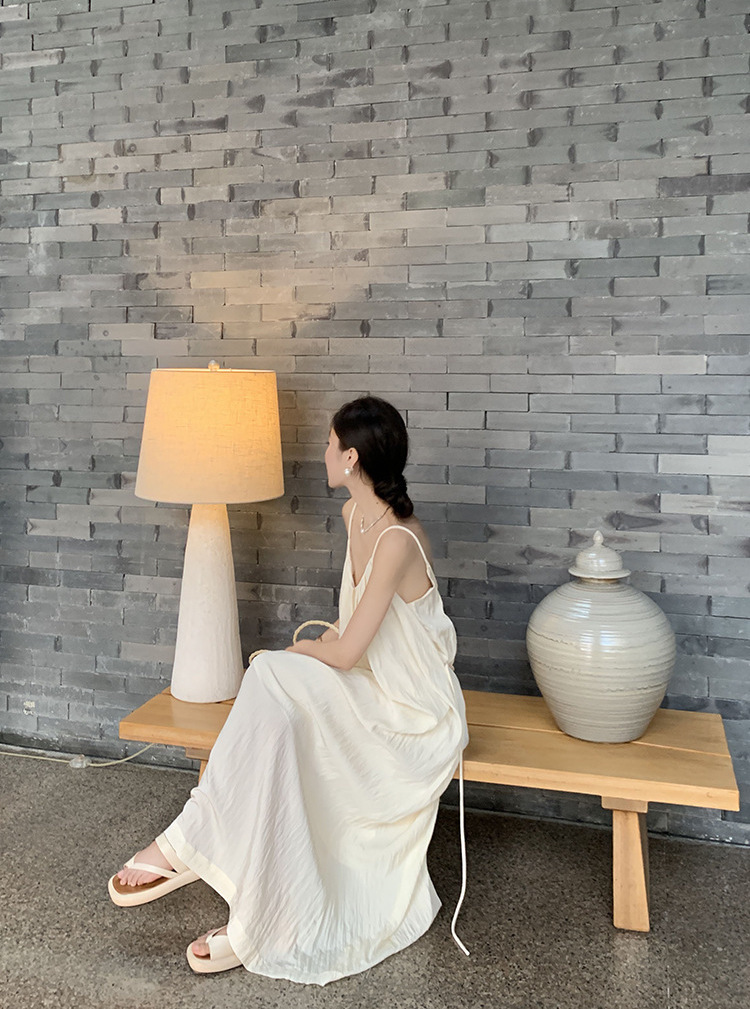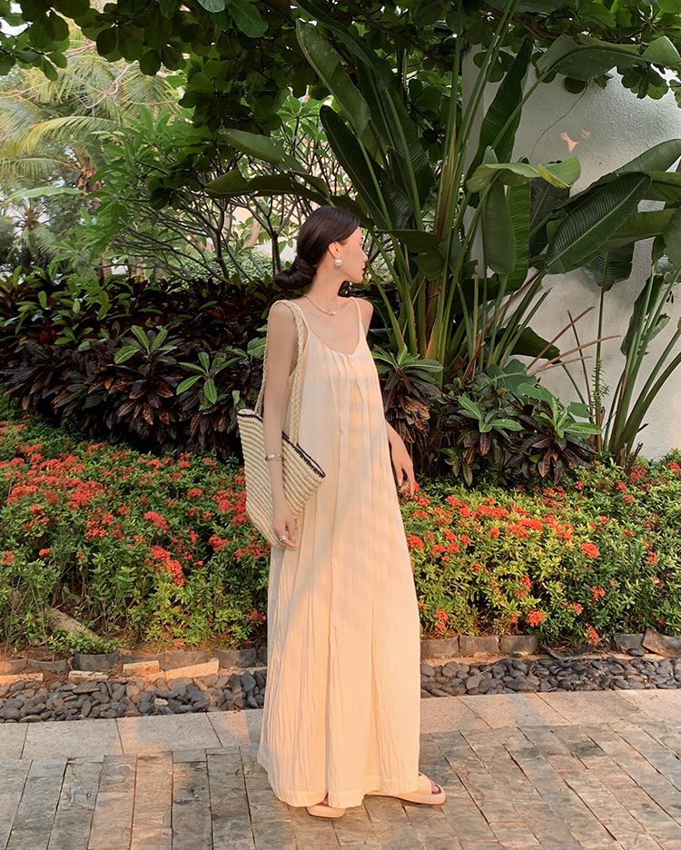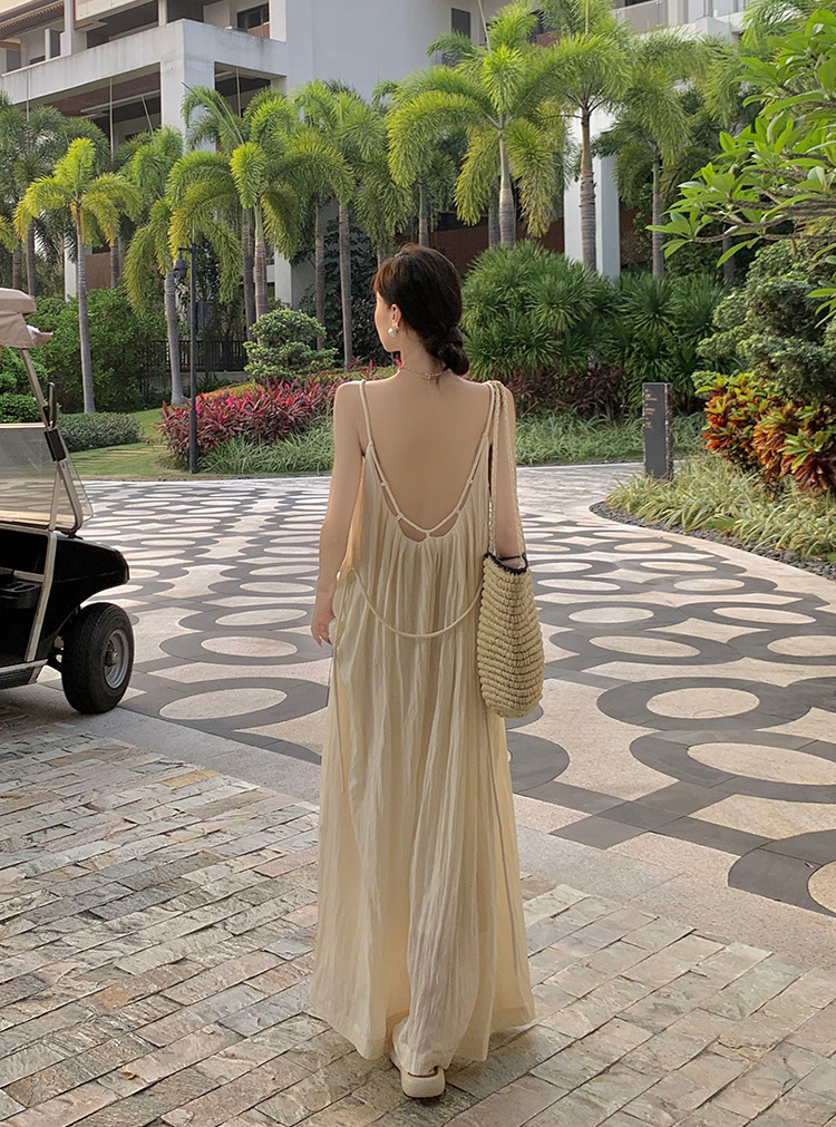 這件精緻優雅的渡假長洋採用優質柔軟面料,設計大膽性感的深V領口與開放式背部,營造出放鬆舒適的度假氛圍。垂墜感優美的剪裁,展現女性曼妙曲線,適合搭配簡約配飾,在沙灘或綠意盎然的戶外場景中散發迷人氣質。
